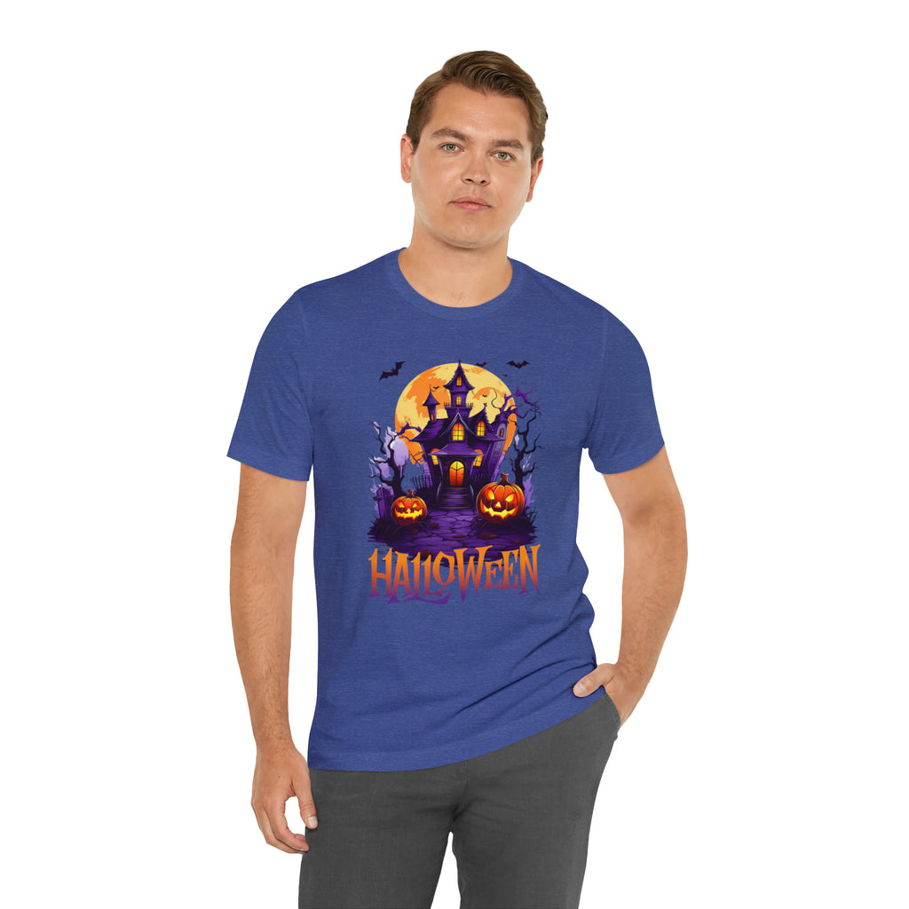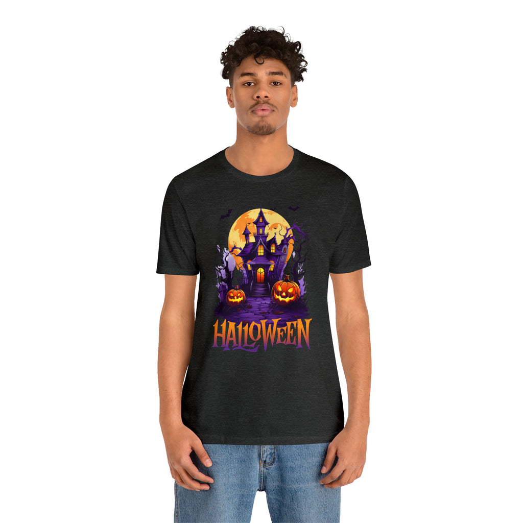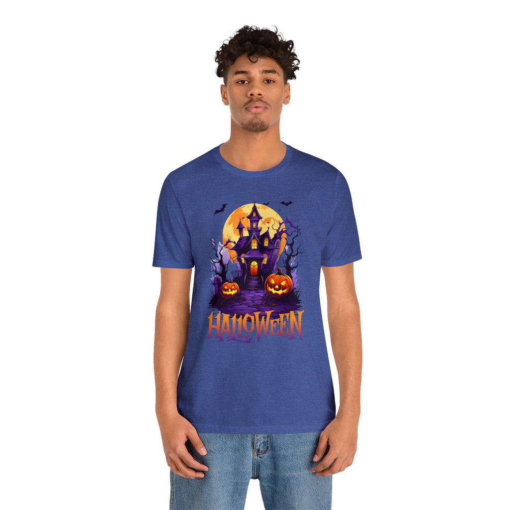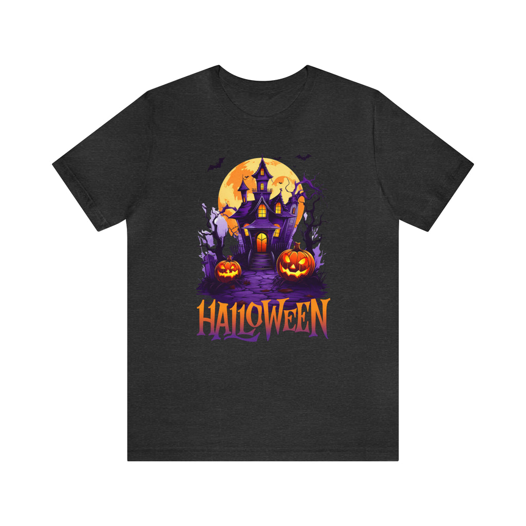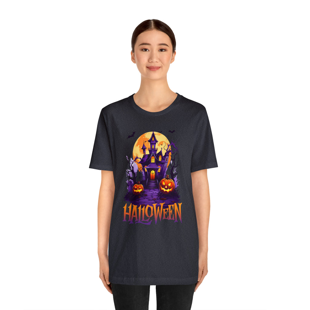 Halloween Haunted House T-Shirt | Scary House with Bats Tee | Bella Canvas 3001Unisex | Spooky Short Sleeve Tshirt