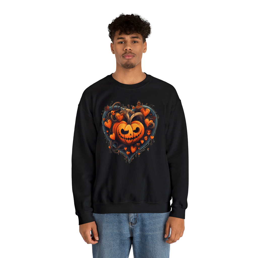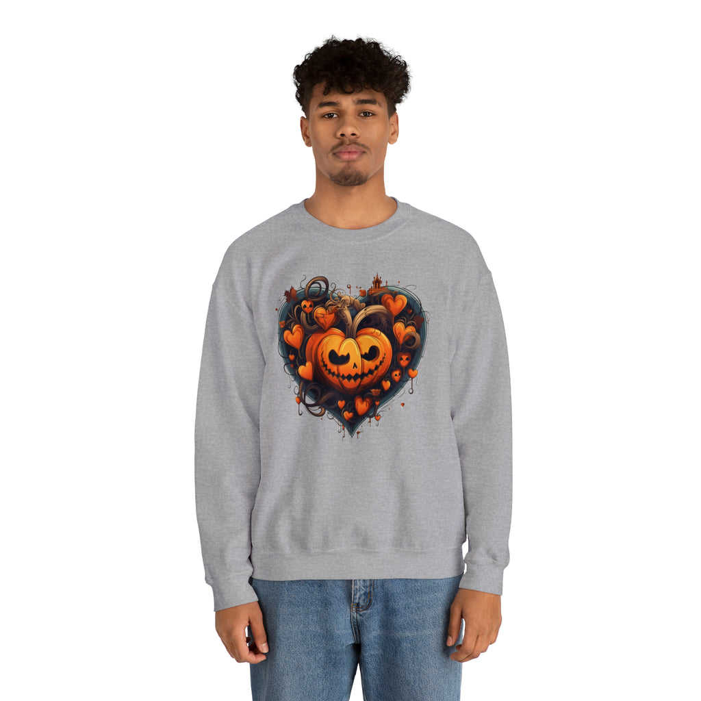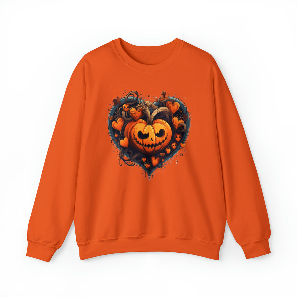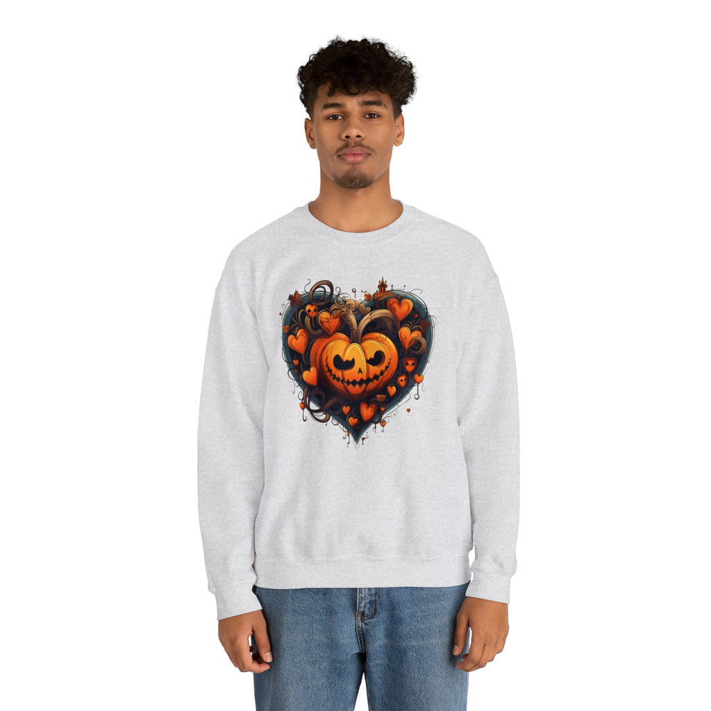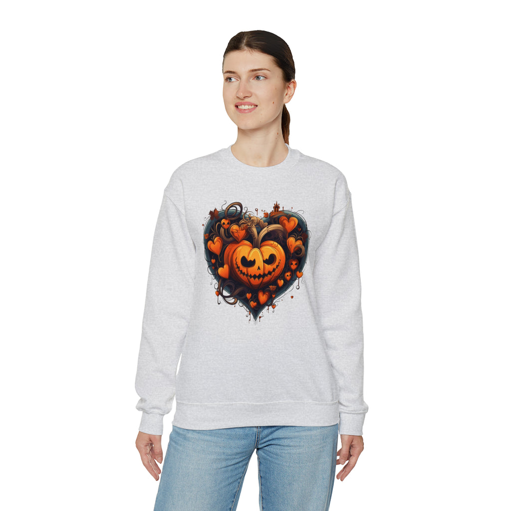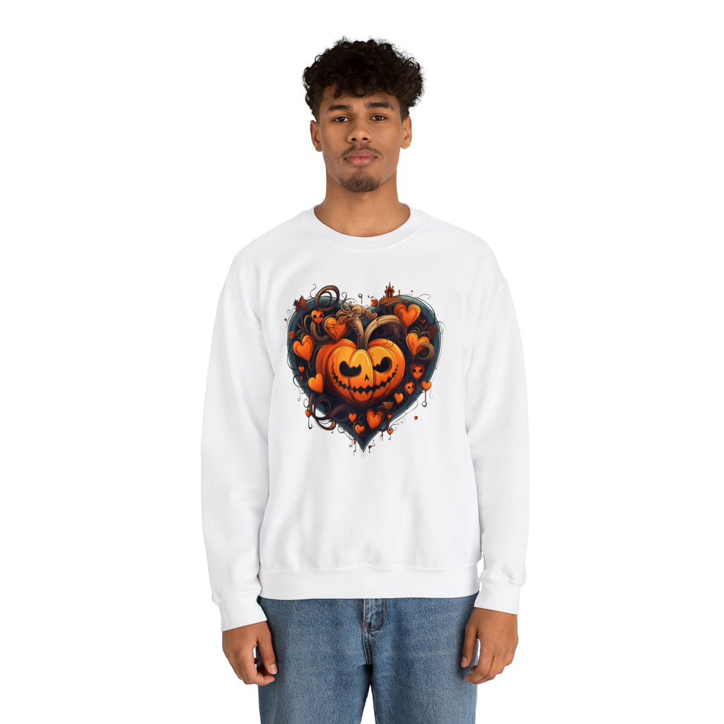 Halloween Heart Pumpkin Sweatshirt, Haunted Ghost Pullover, Creepy Halloween Crewneck Sweatshirt, Unisex Heavy Blend Sweatshirt