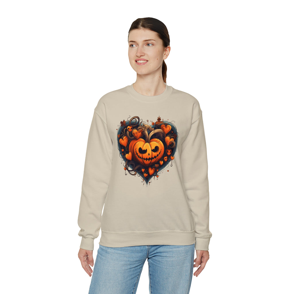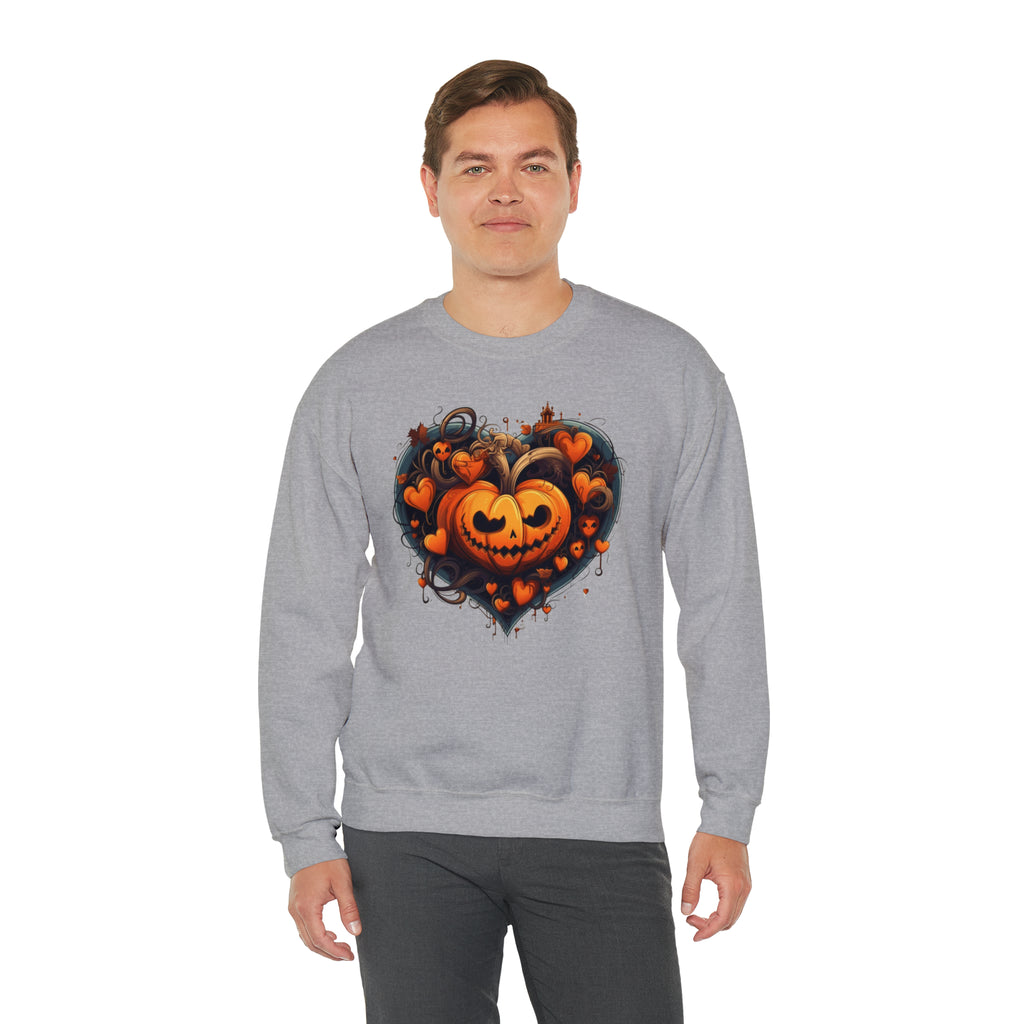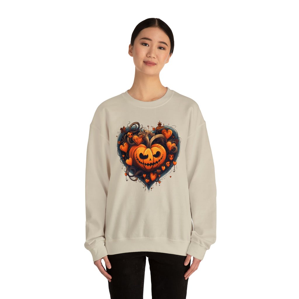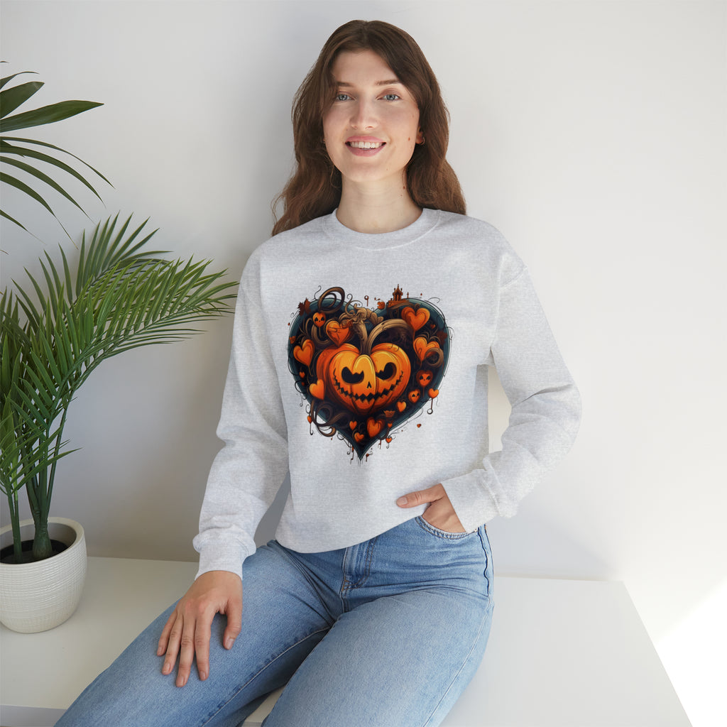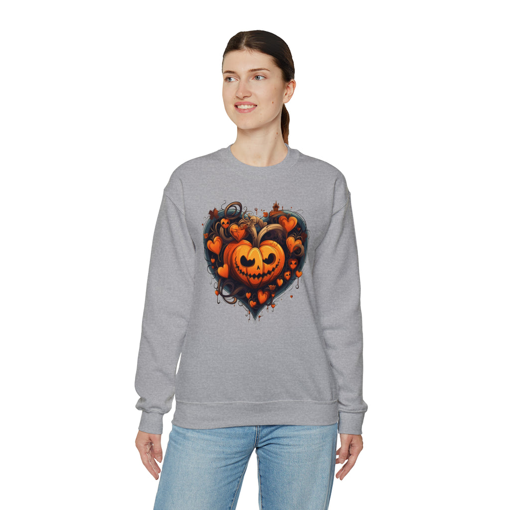 Halloween Heart Pumpkin Sweatshirt, Haunted Ghost Pullover, Creepy Halloween Crewneck Sweatshirt, Unisex Heavy Blend Sweatshirt