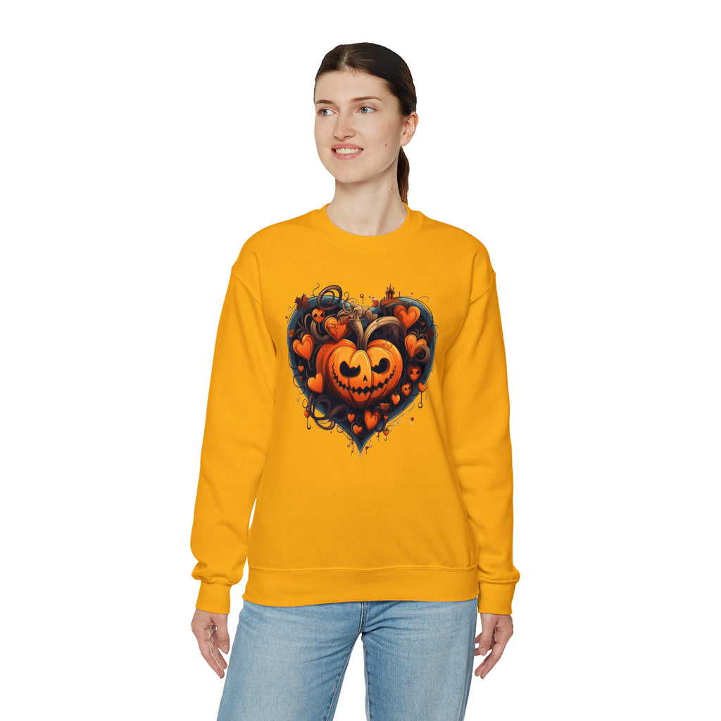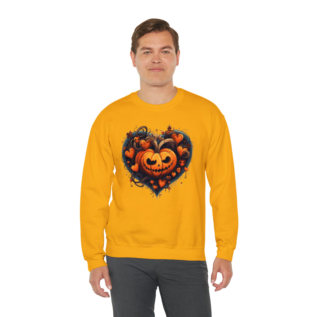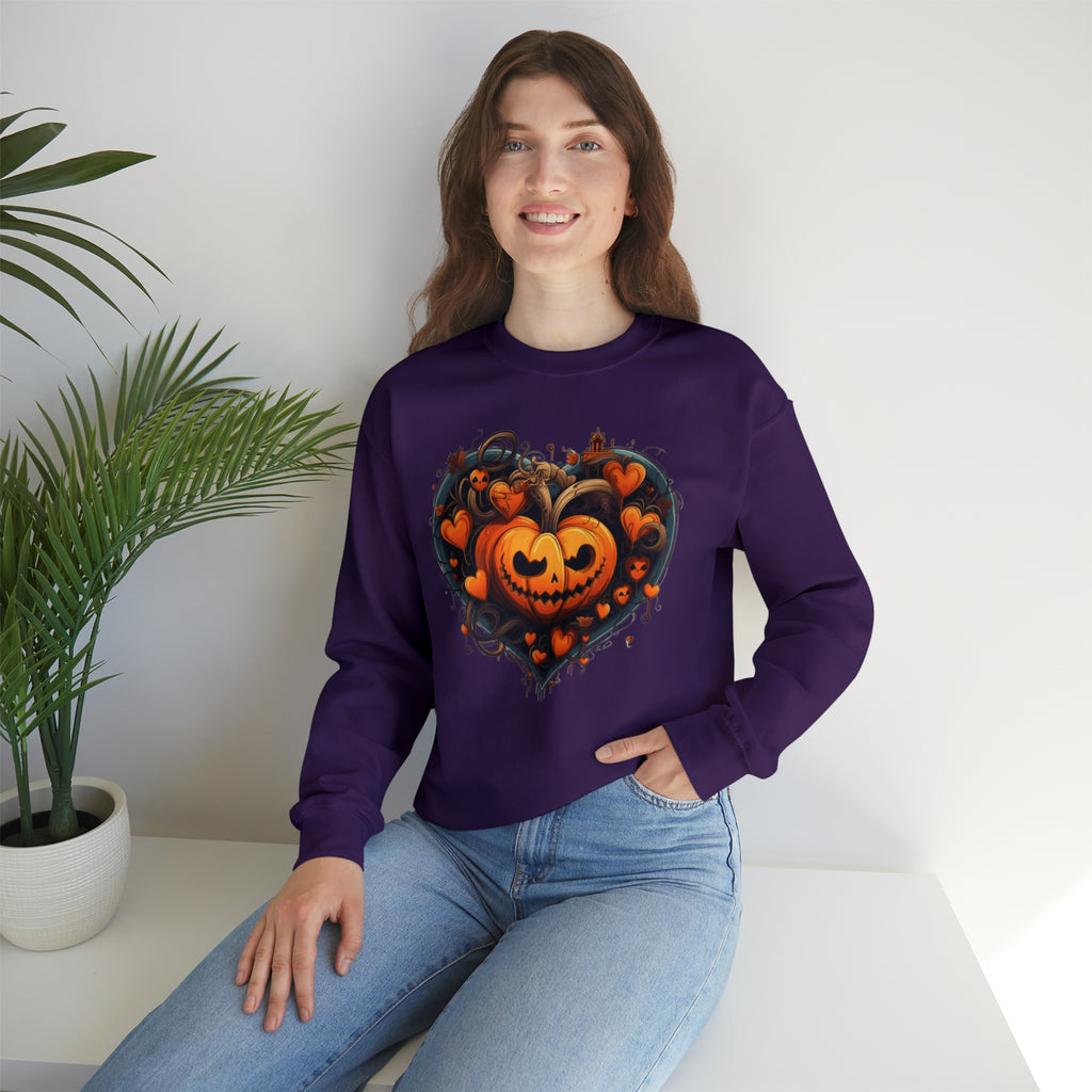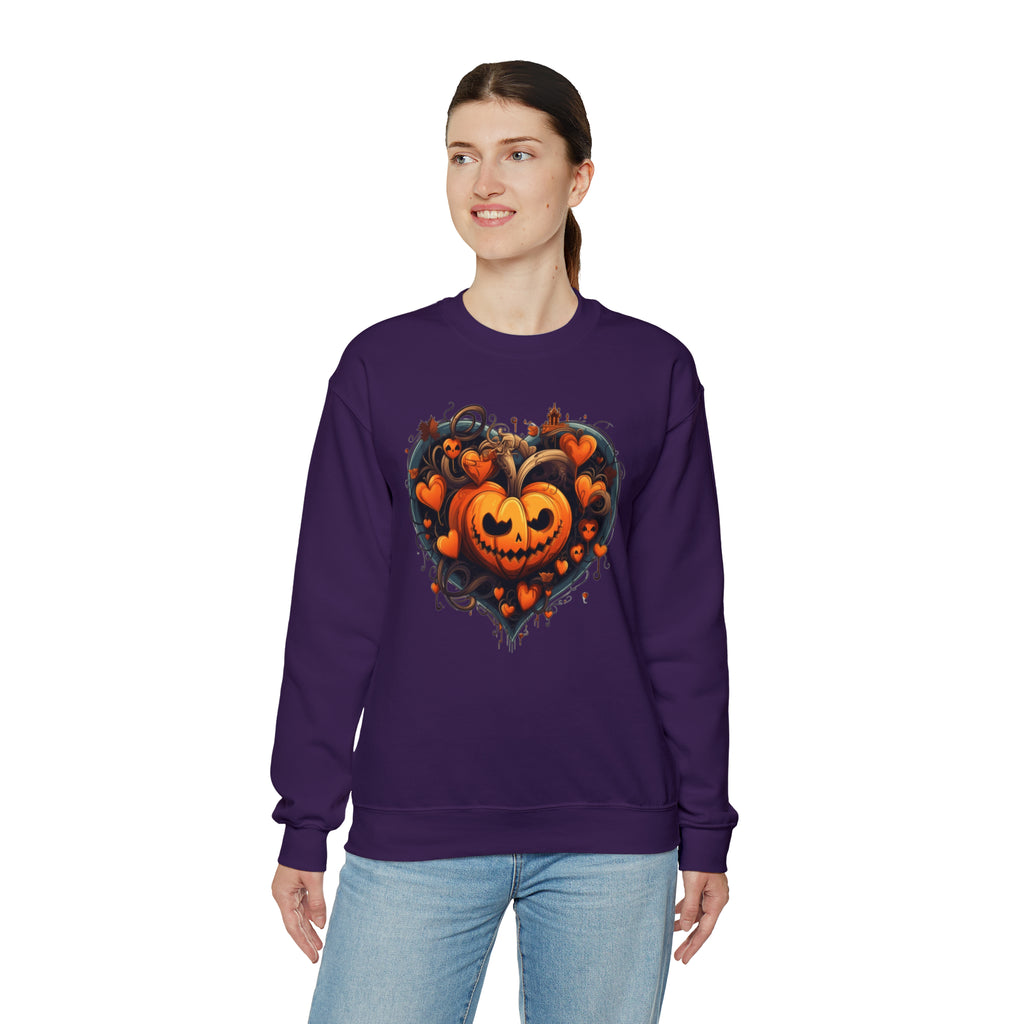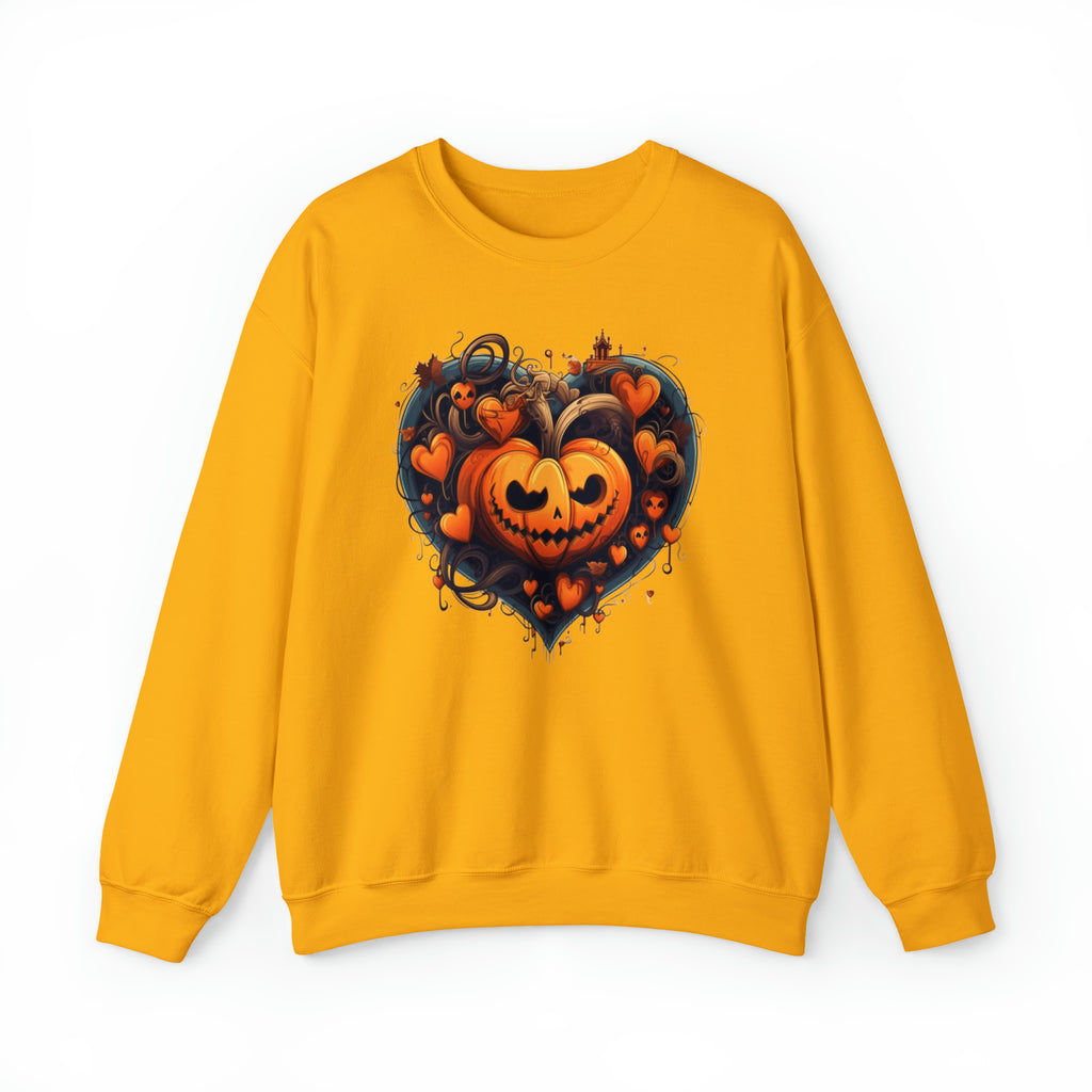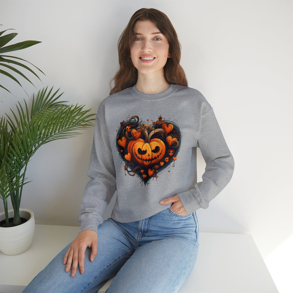 Halloween Heart Pumpkin Sweatshirt, Haunted Ghost Pullover, Creepy Halloween Crewneck Sweatshirt, Unisex Heavy Blend Sweatshirt