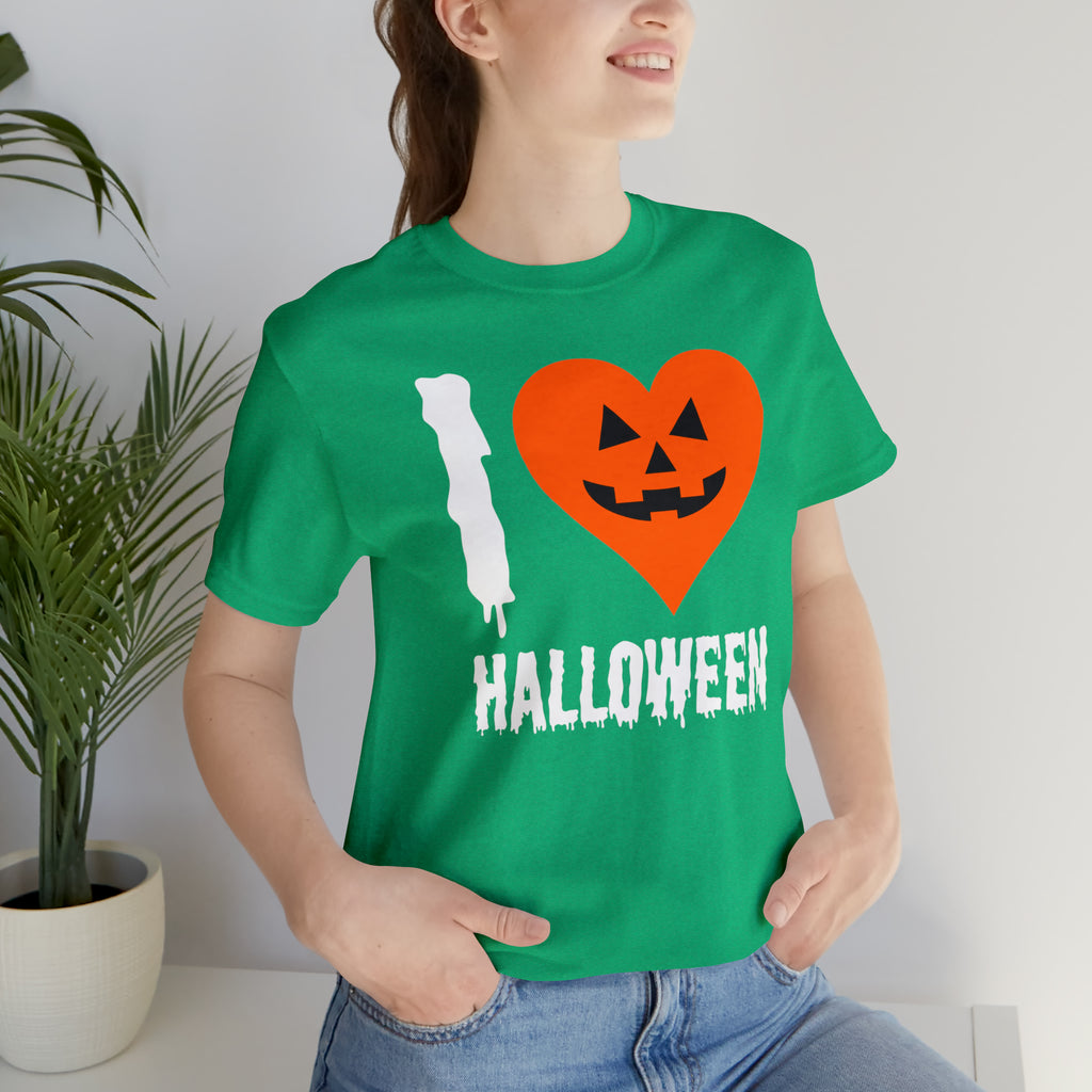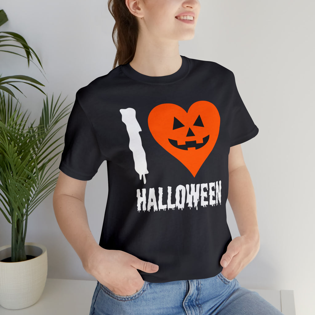 I Love Halloween T-Shirt | Scary Jack-O-Lantern Tee | Bella Canvas 3001Unisex | Funny Short Sleeve Tshirt