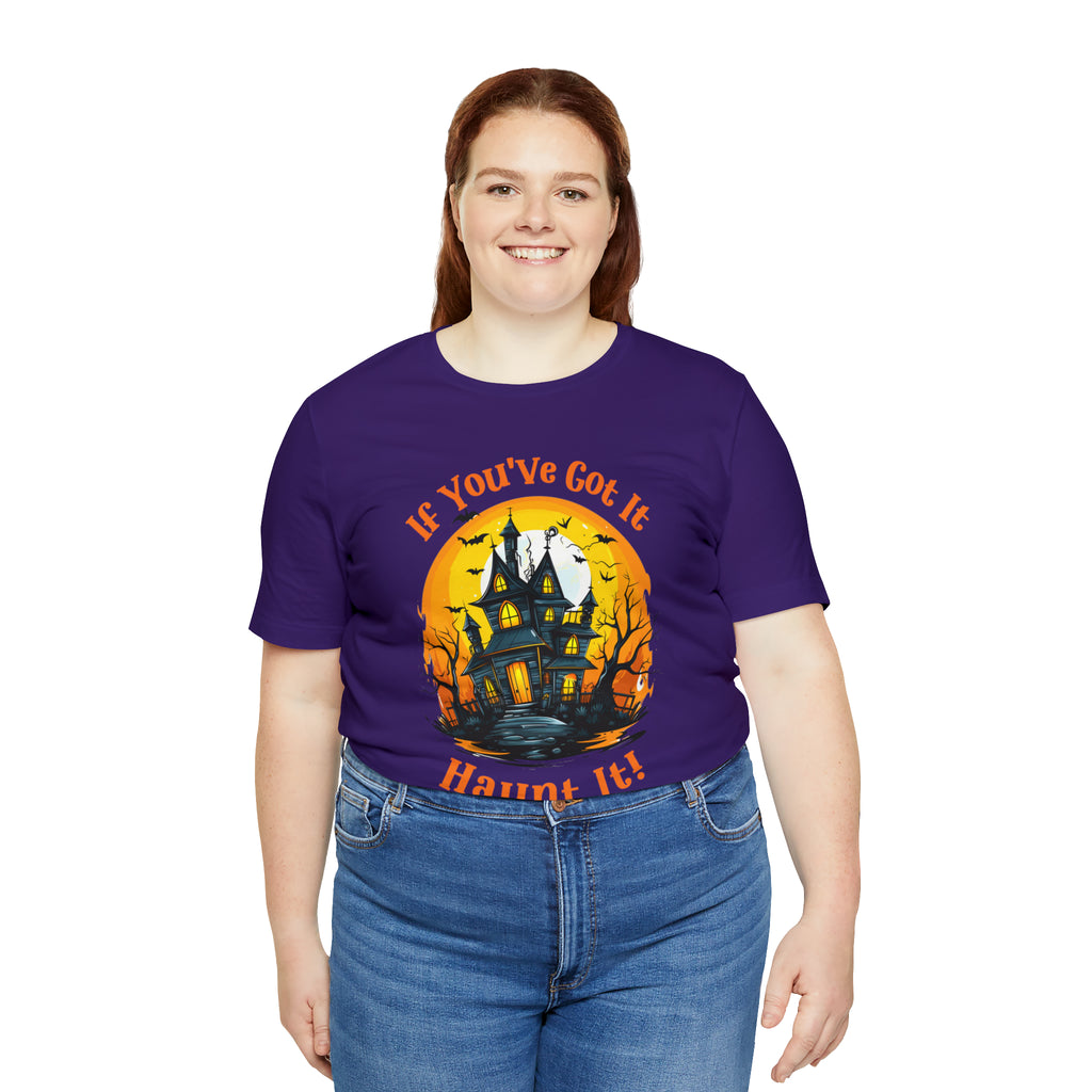 🏚️ Our "If You've Got It Haunt It" design showcases a spooky haunted house, exuding an eerie aura that perfectly captures the spirit of Halloween. This tee is sure to turn heads and evoke Halloween excitement wherever you go!