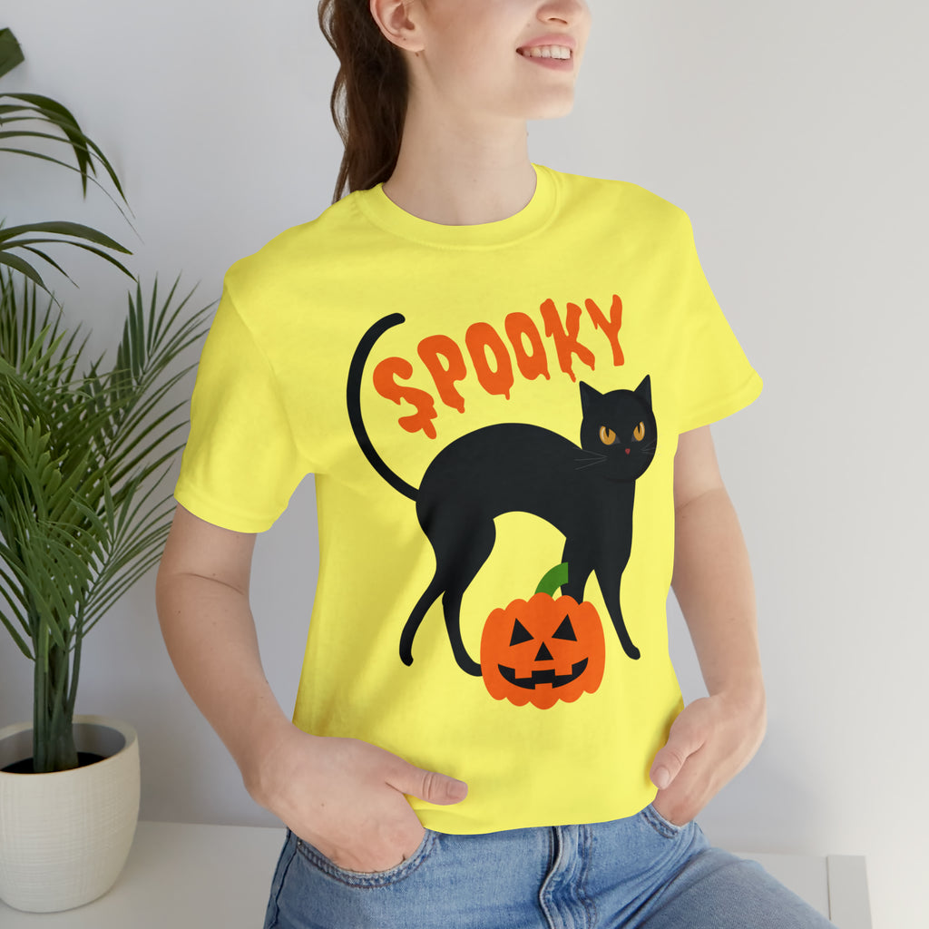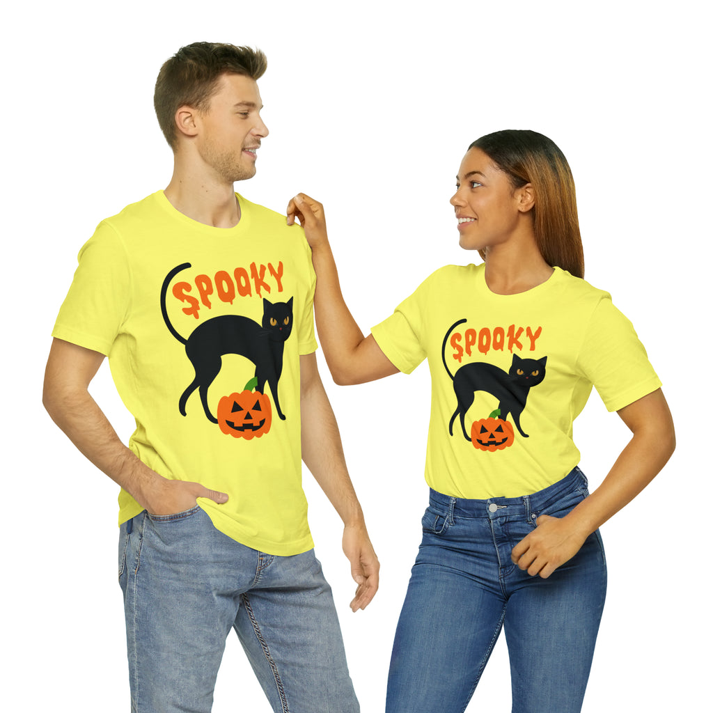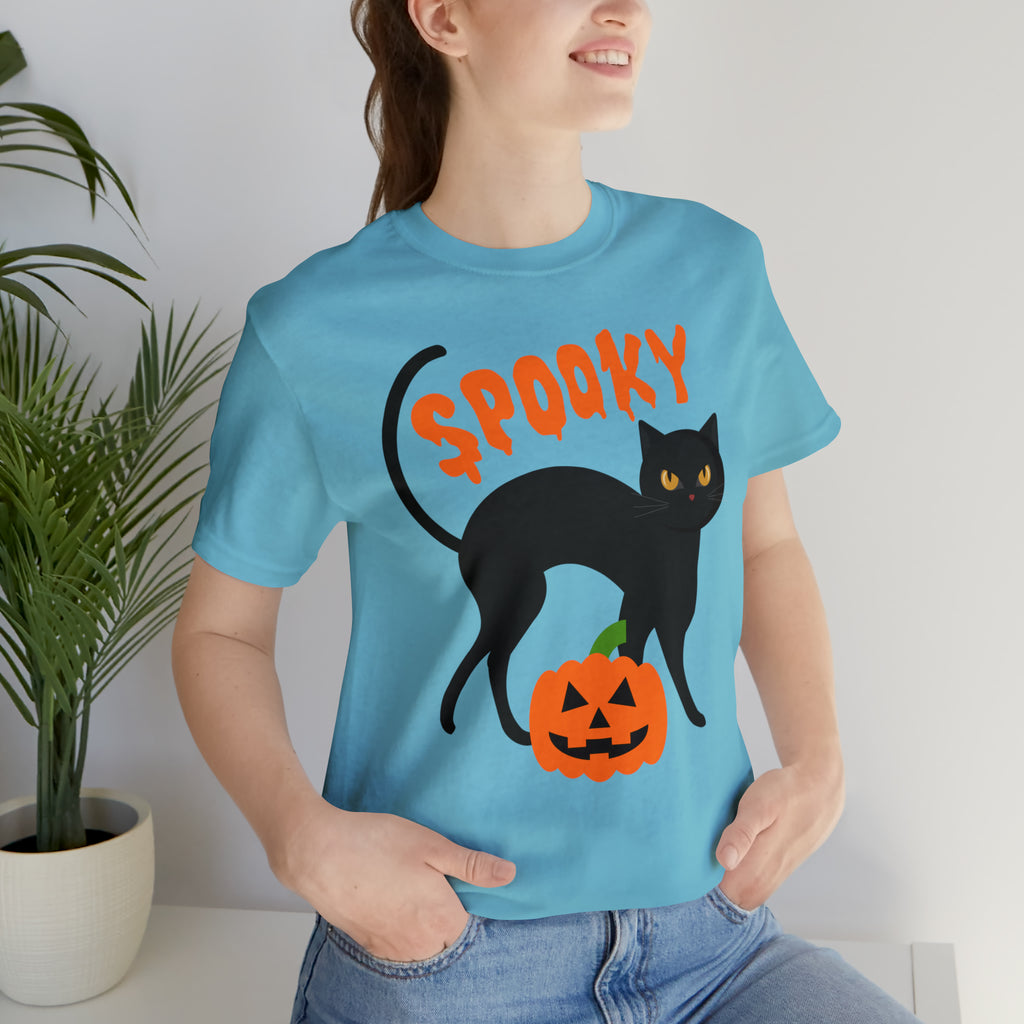 Get into the Halloween spirit with our Spooky Black Cat Halloween T-Shirt! This Creepy Jack-o'-Lantern Tee showcases a captivating design, adding a hauntingly stylish touch to your wardrobe. Crafted on a premium Bella Canvas 3001 Unisex Short Sleeve T-shirt, this tee offers both comfort and quality for long-lasting wear.