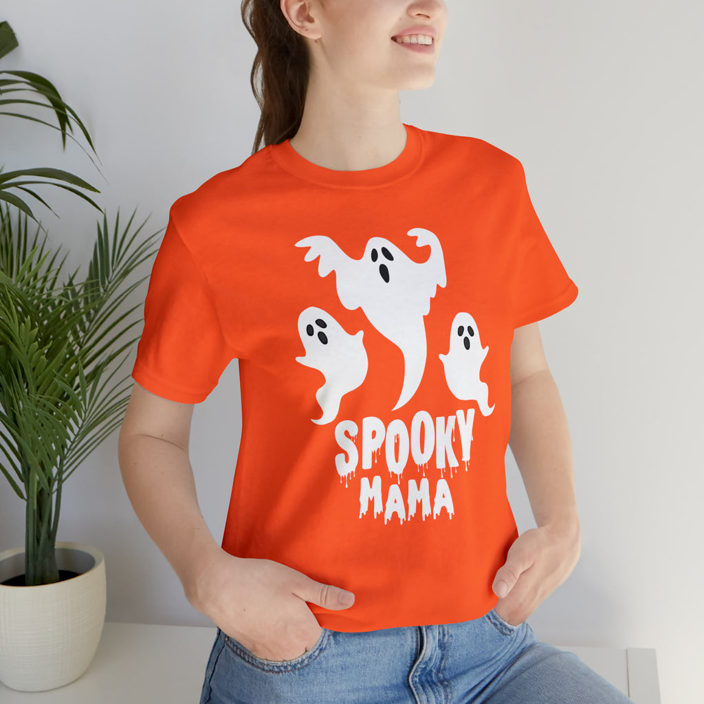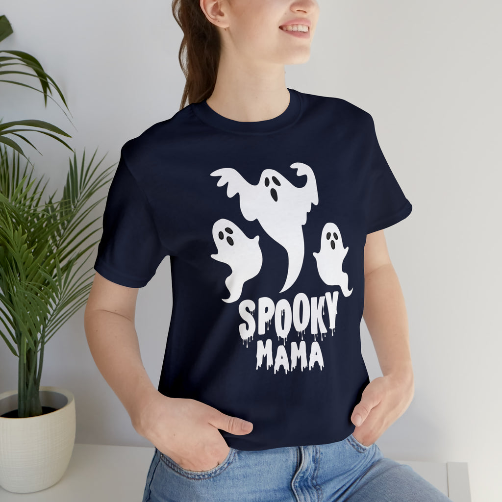 Whether you're attending a Halloween party, trick-or-treating with family and friends, or simply embracing the ghostly spirit of the season, our Spooky Ghost Mama Tee is a must-have addition to your Halloween collection.