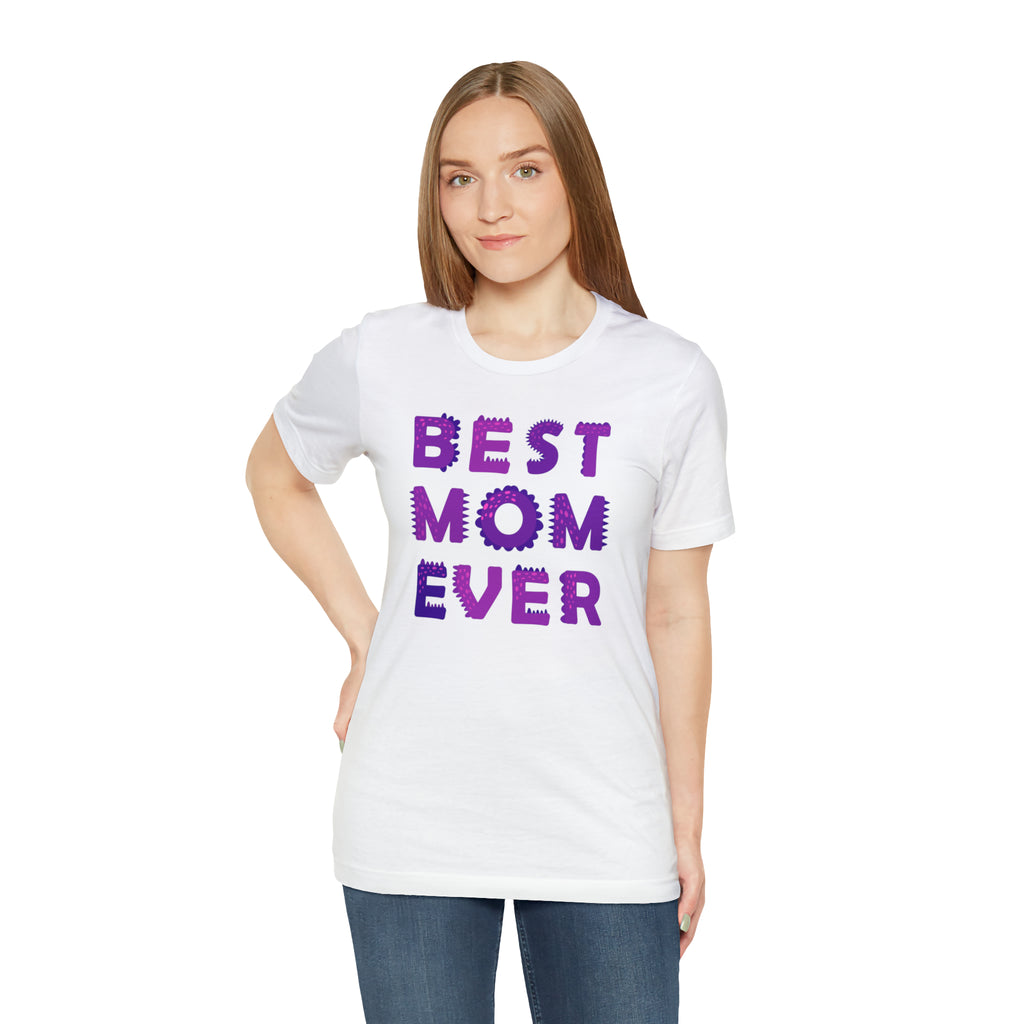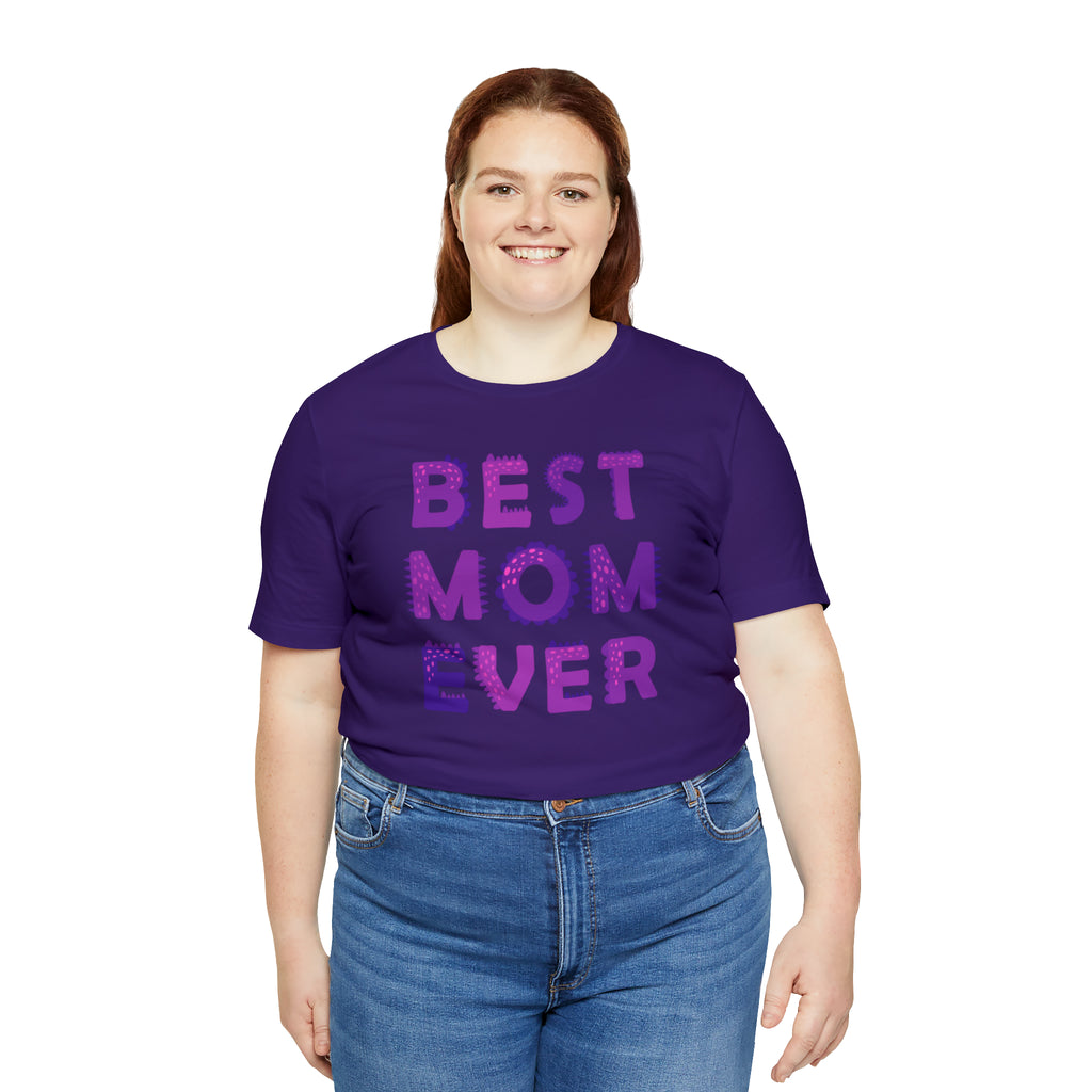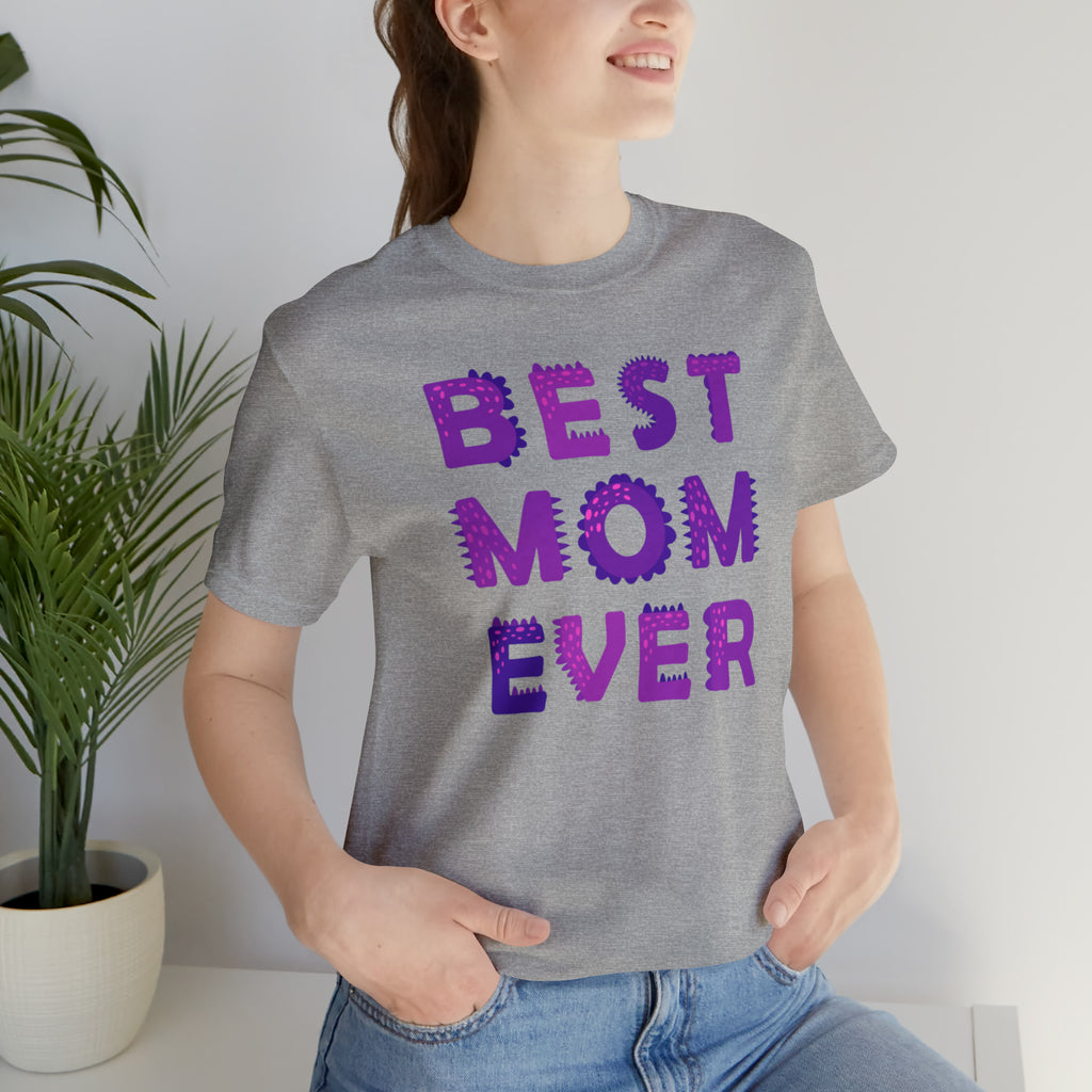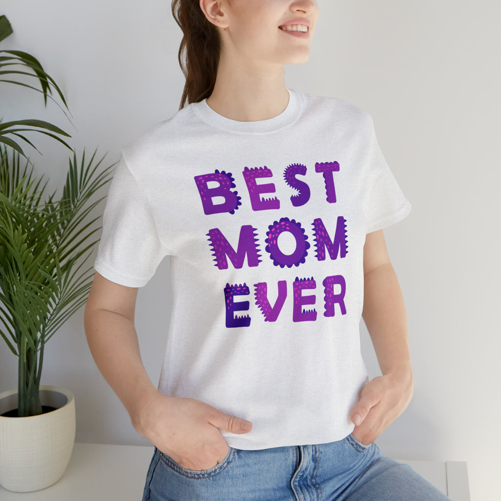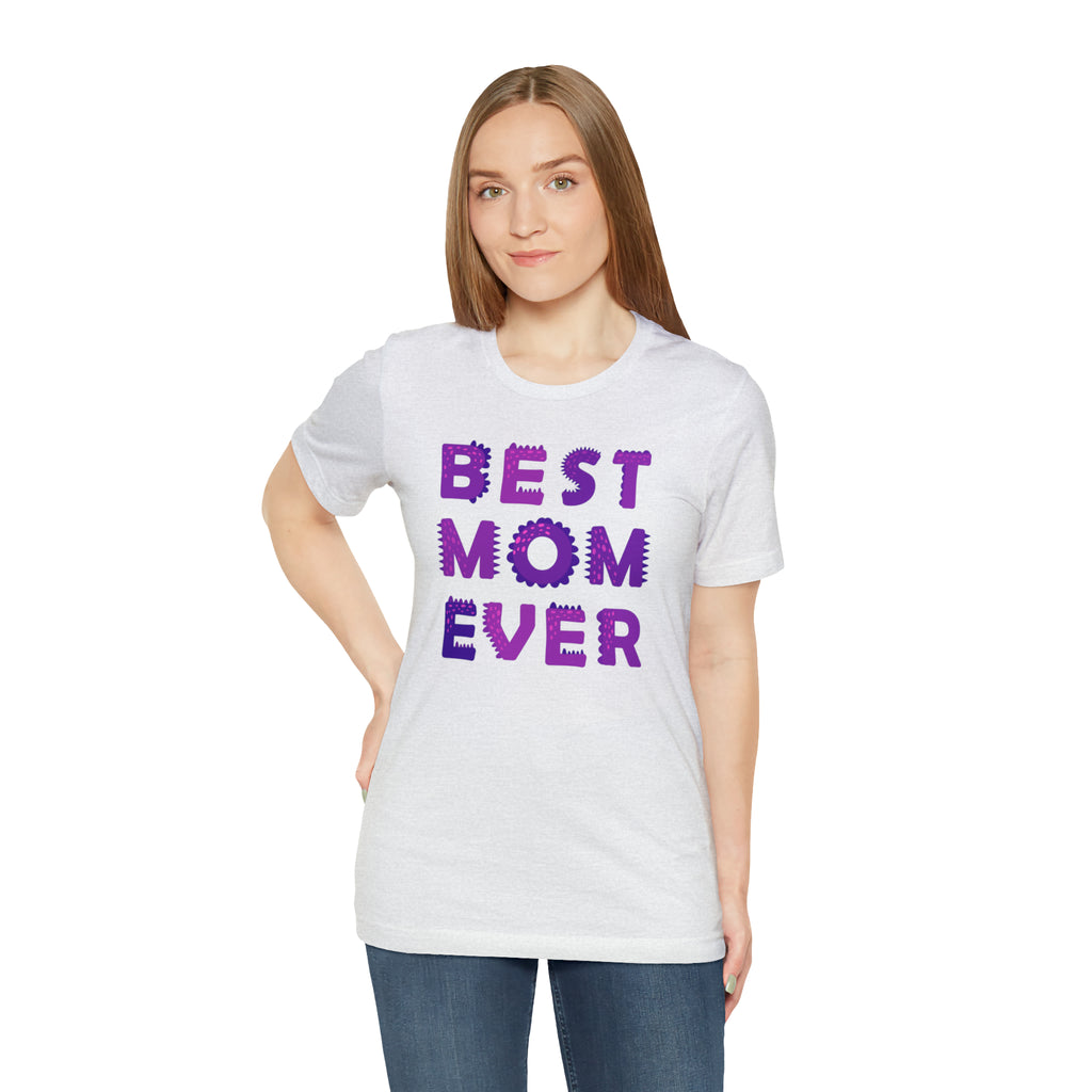 Best Mom Ever Purple Text T-Shirt | Bestie Mama Tee | Bella Canvas 3001 Unisex | Mother Short Sleeve Tshirt