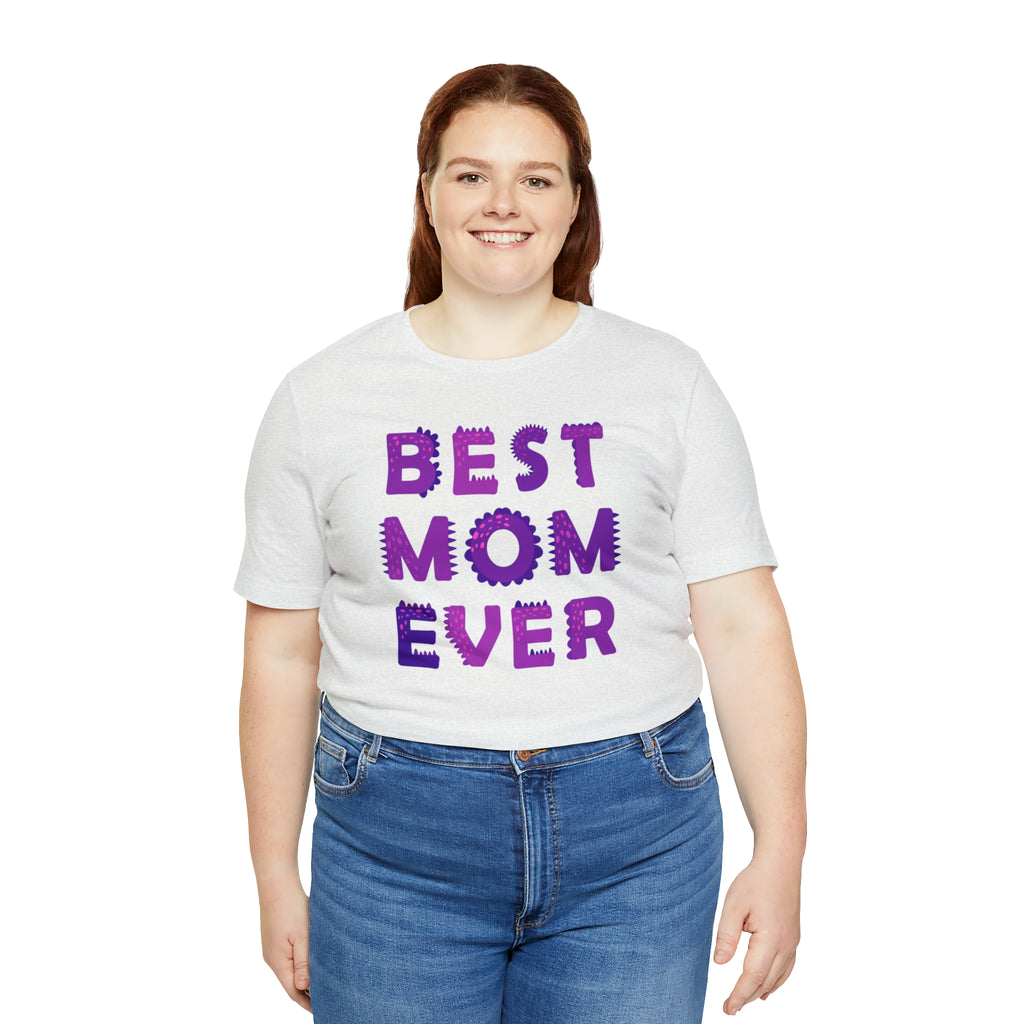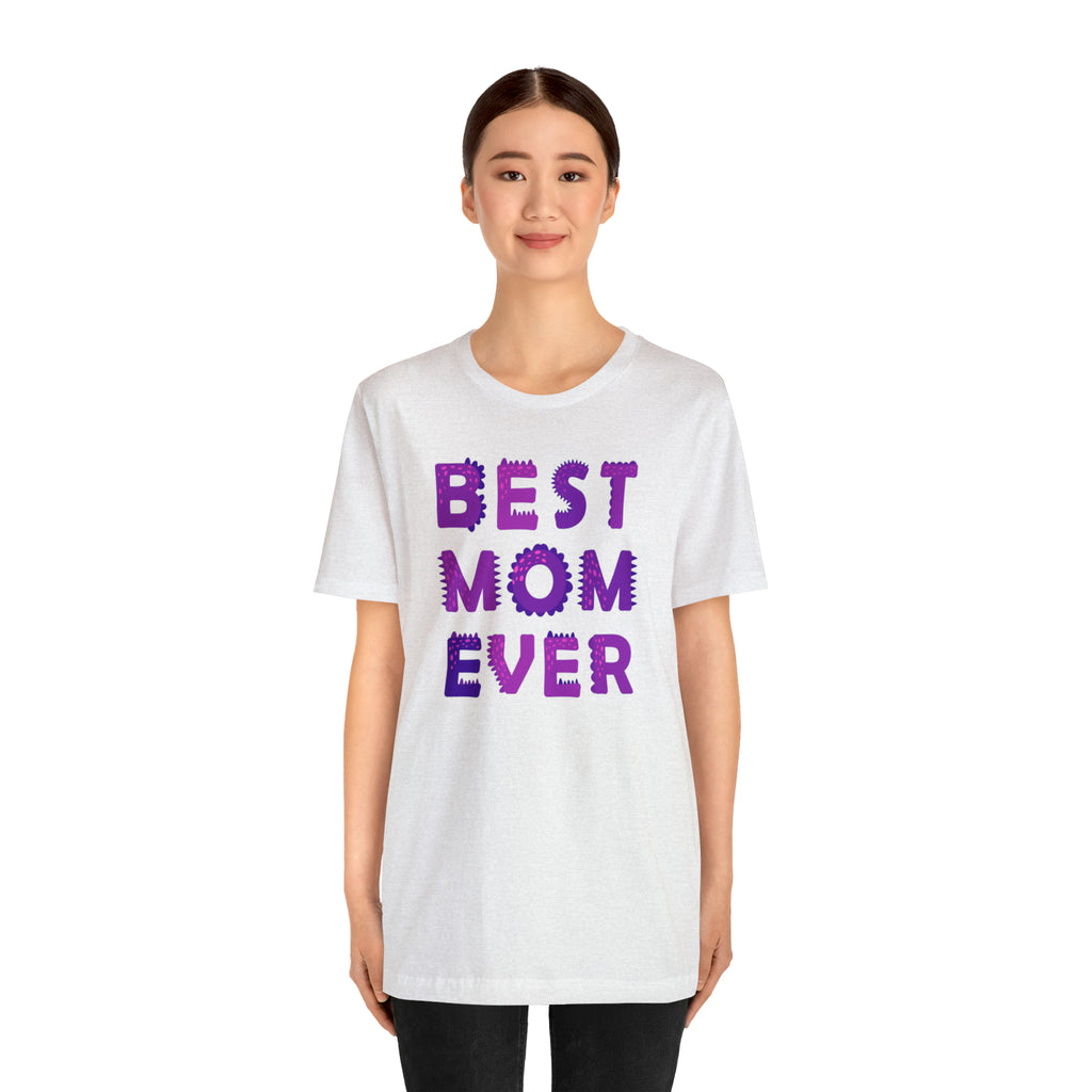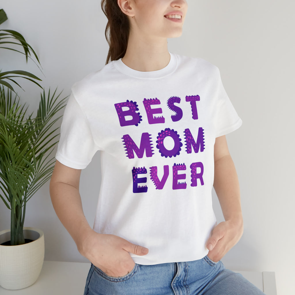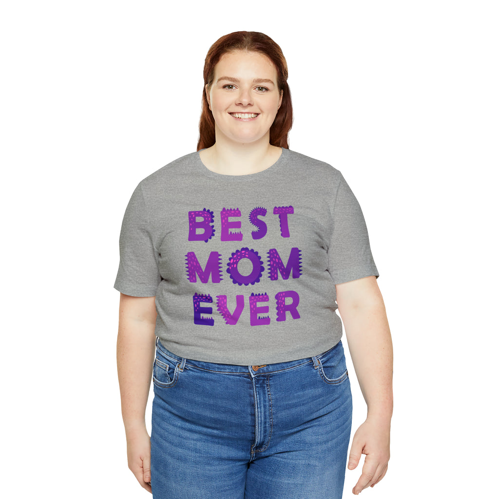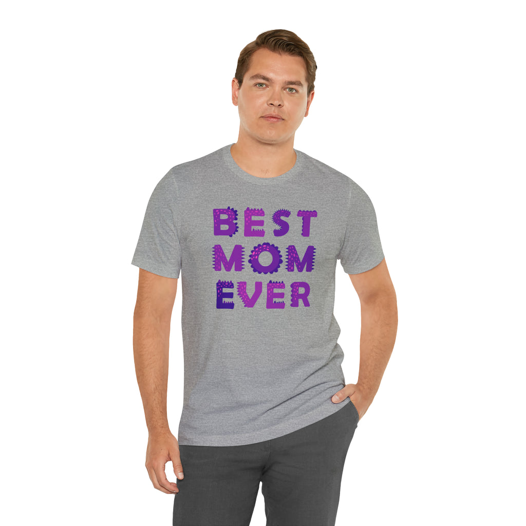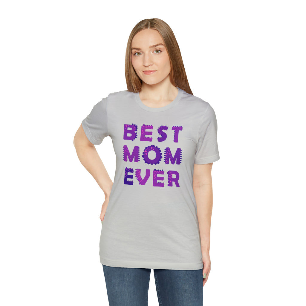 Best Mom Ever Purple Text T-Shirt | Bestie Mama Tee | Bella Canvas 3001 Unisex | Mother Short Sleeve Tshirt