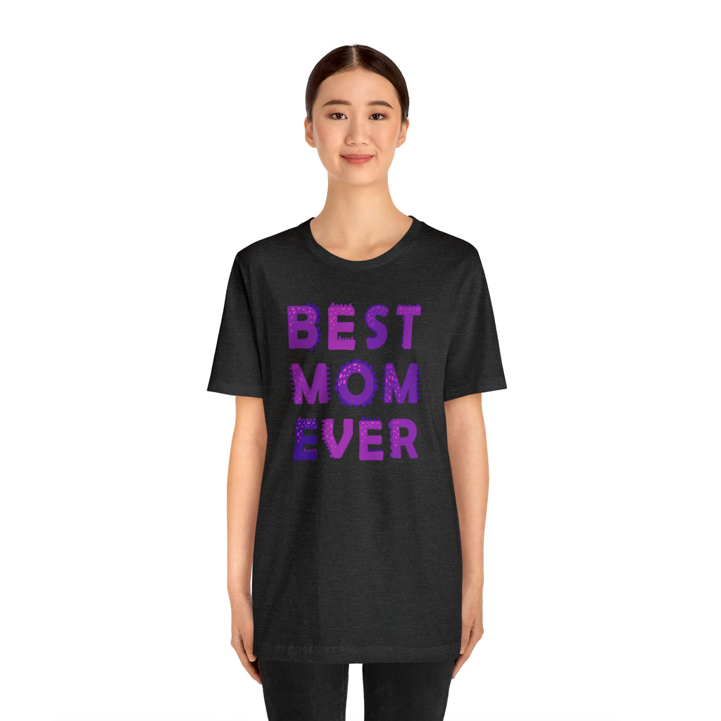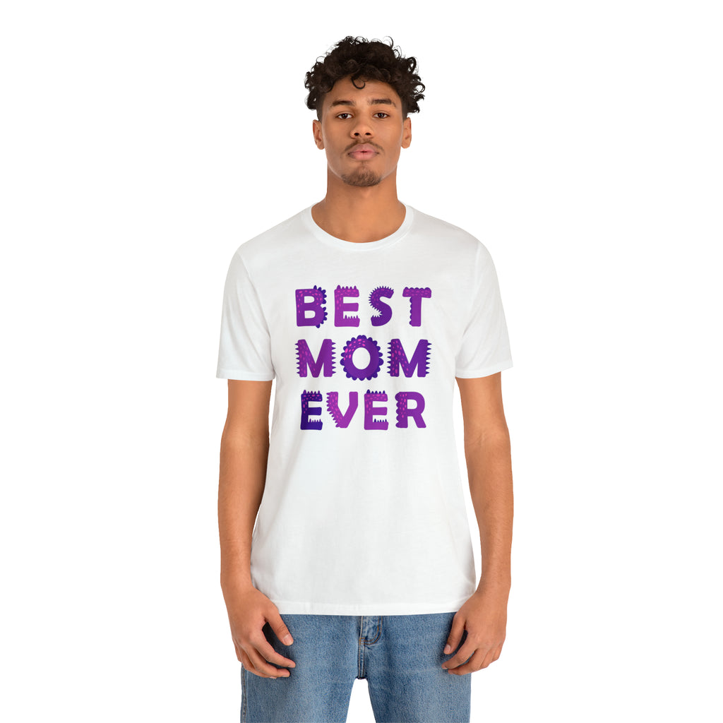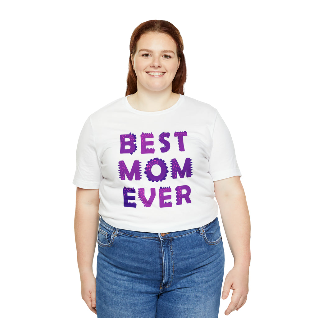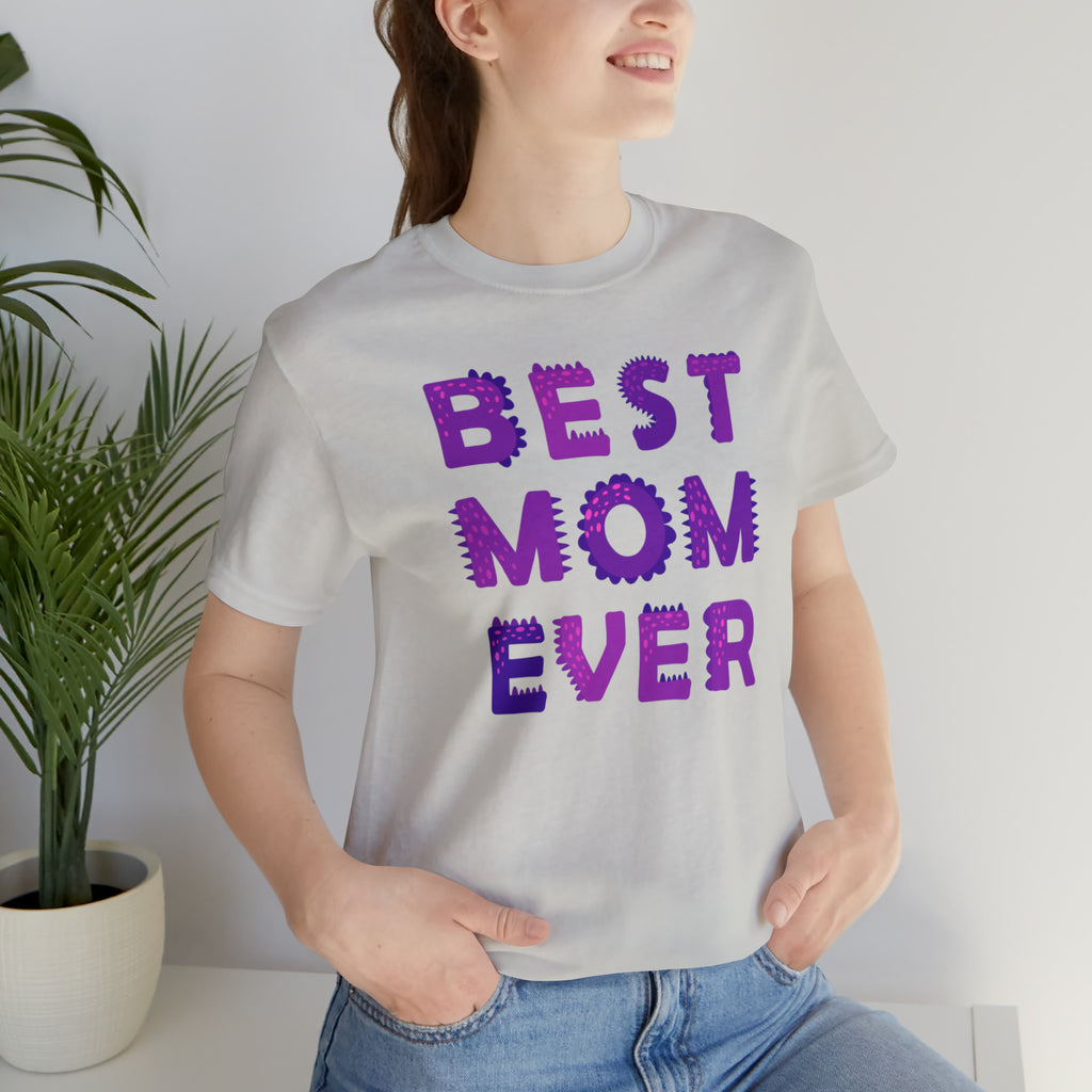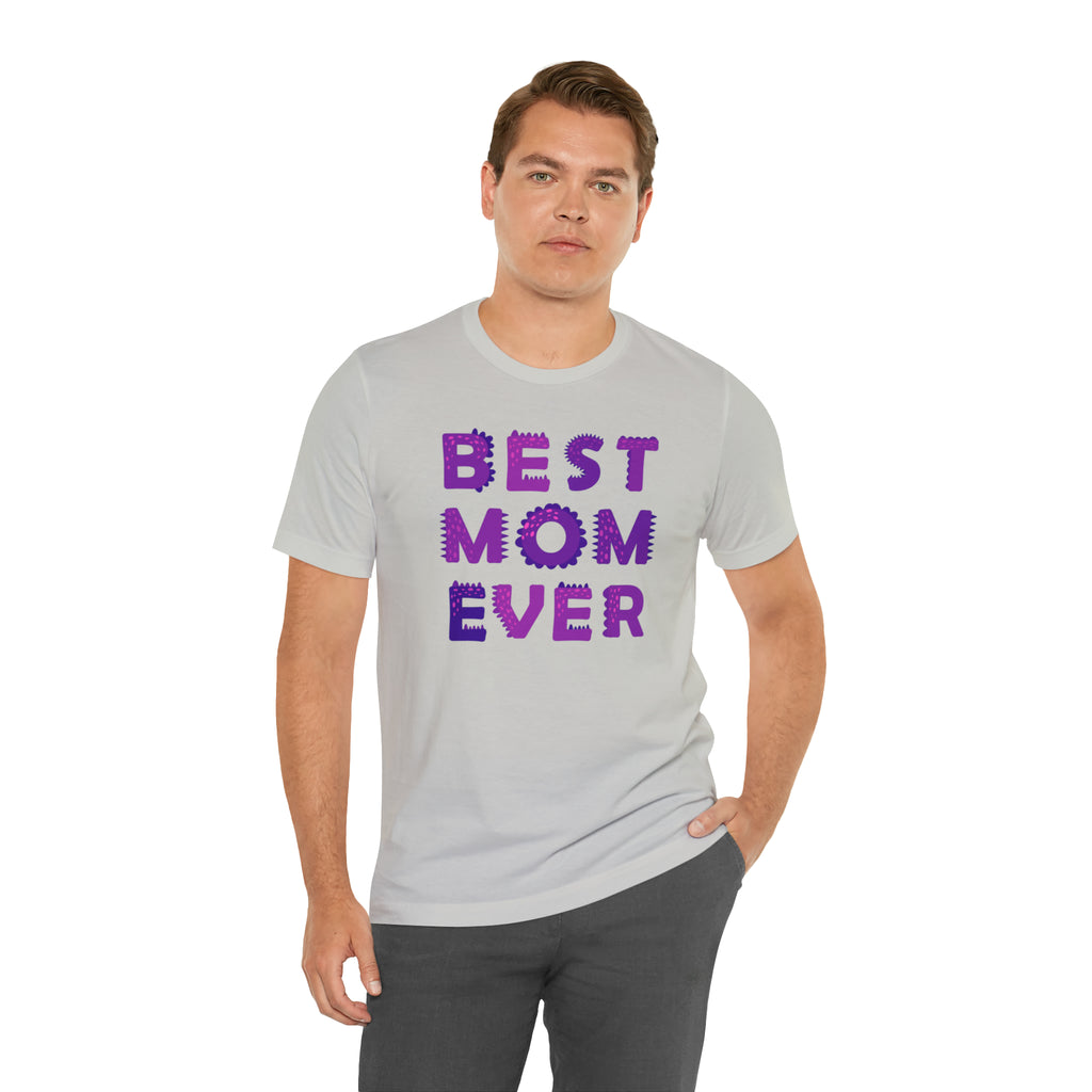Best Mom Ever Purple Text T-Shirt | Bestie Mama Tee | Bella Canvas 3001 Unisex | Mother Short Sleeve Tshirt