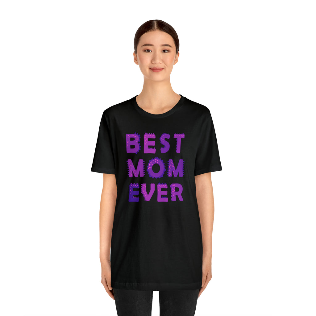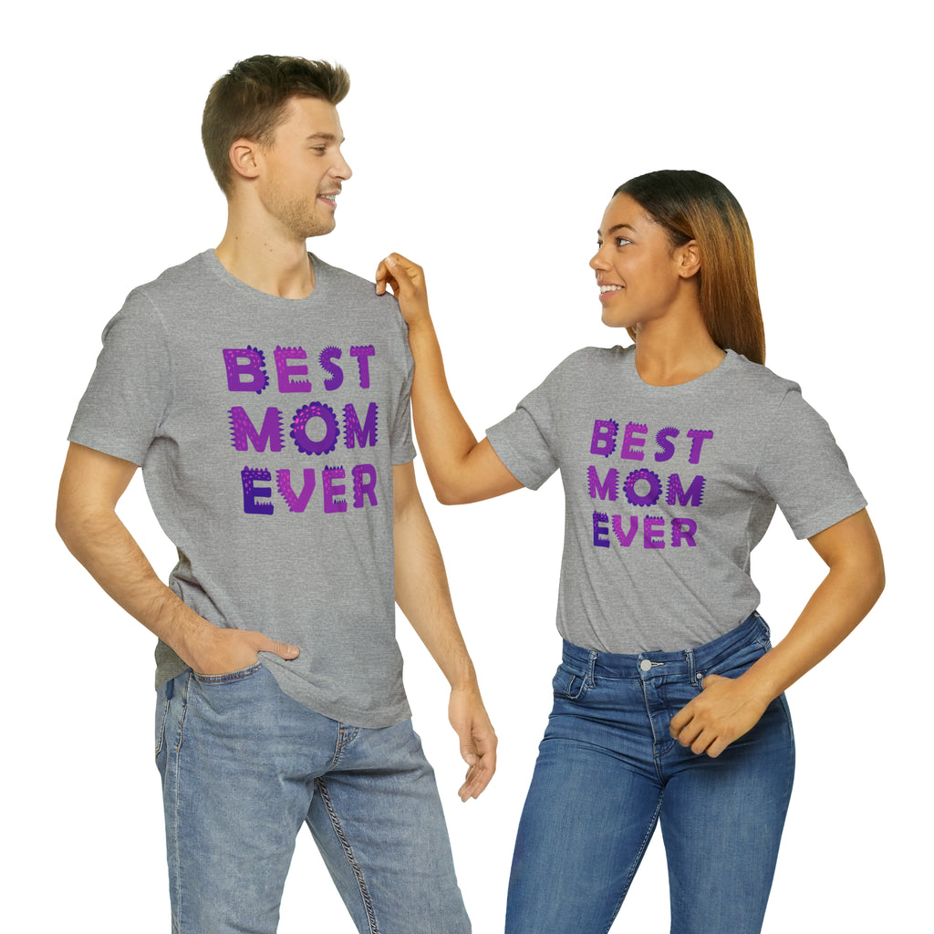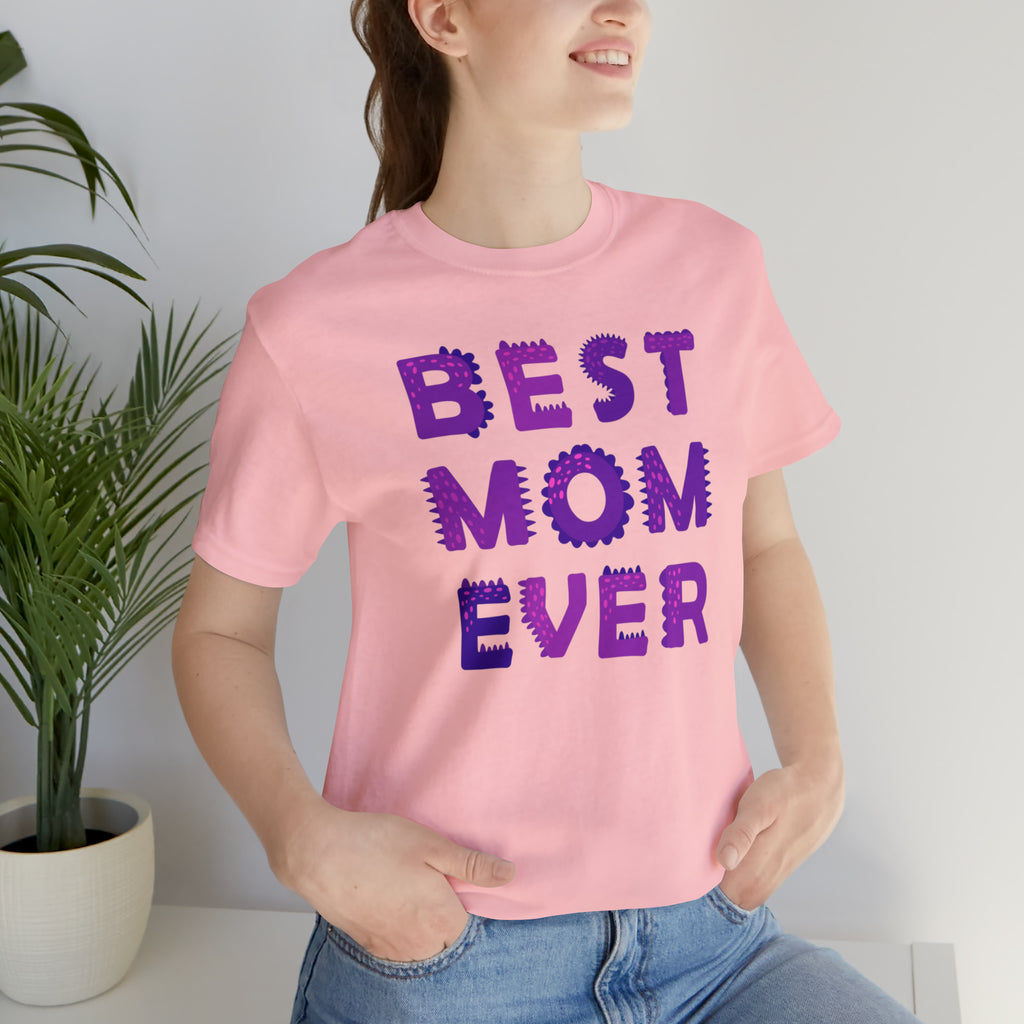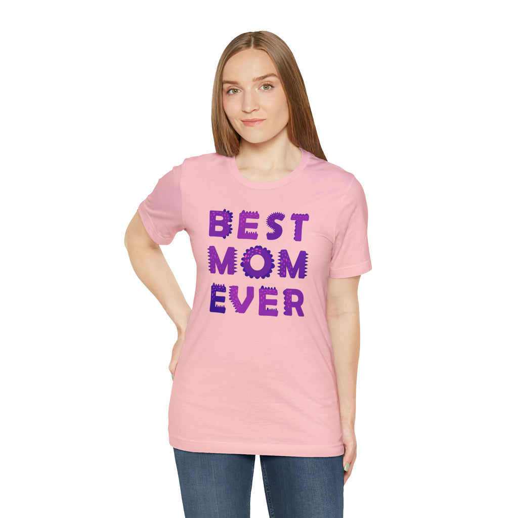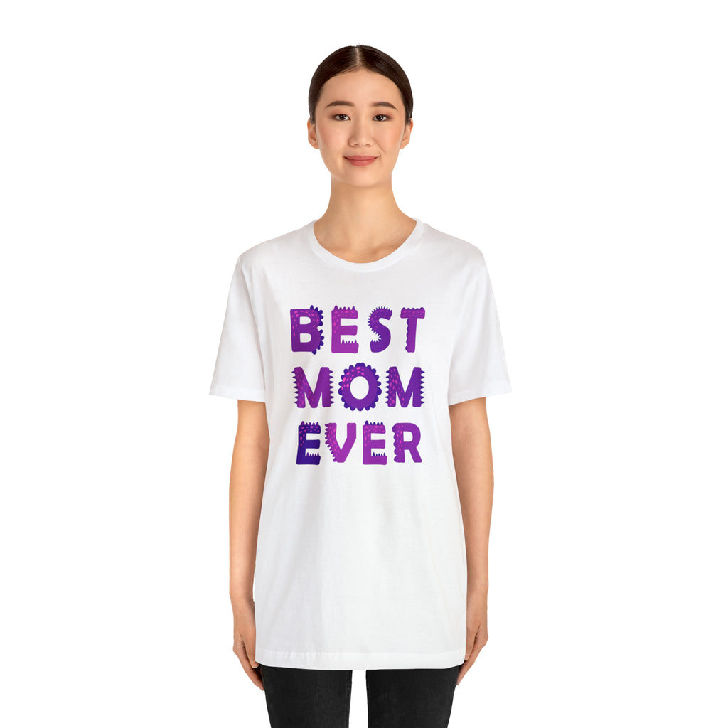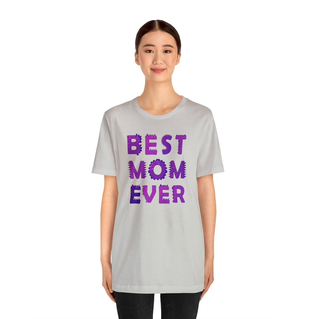 Best Mom Ever Purple Text T-Shirt | Bestie Mama Tee | Bella Canvas 3001 Unisex | Mother Short Sleeve Tshirt