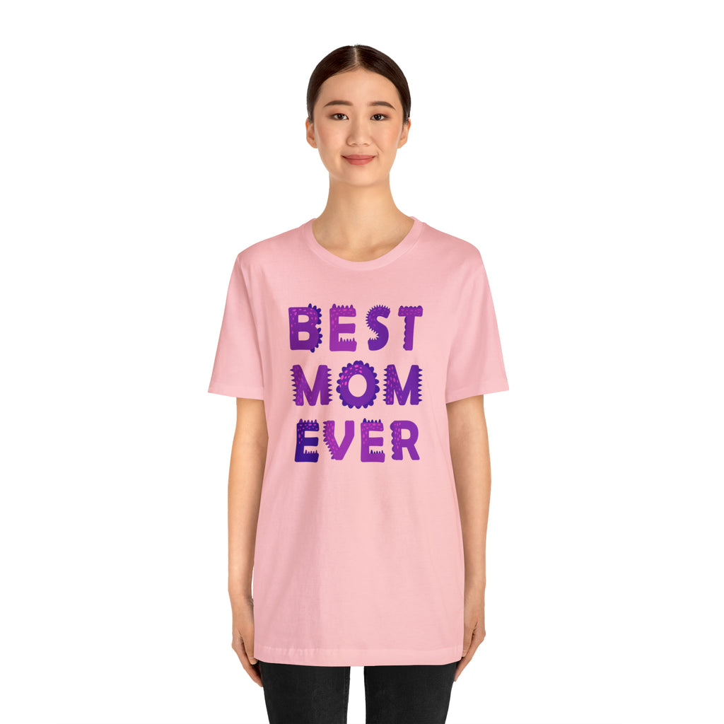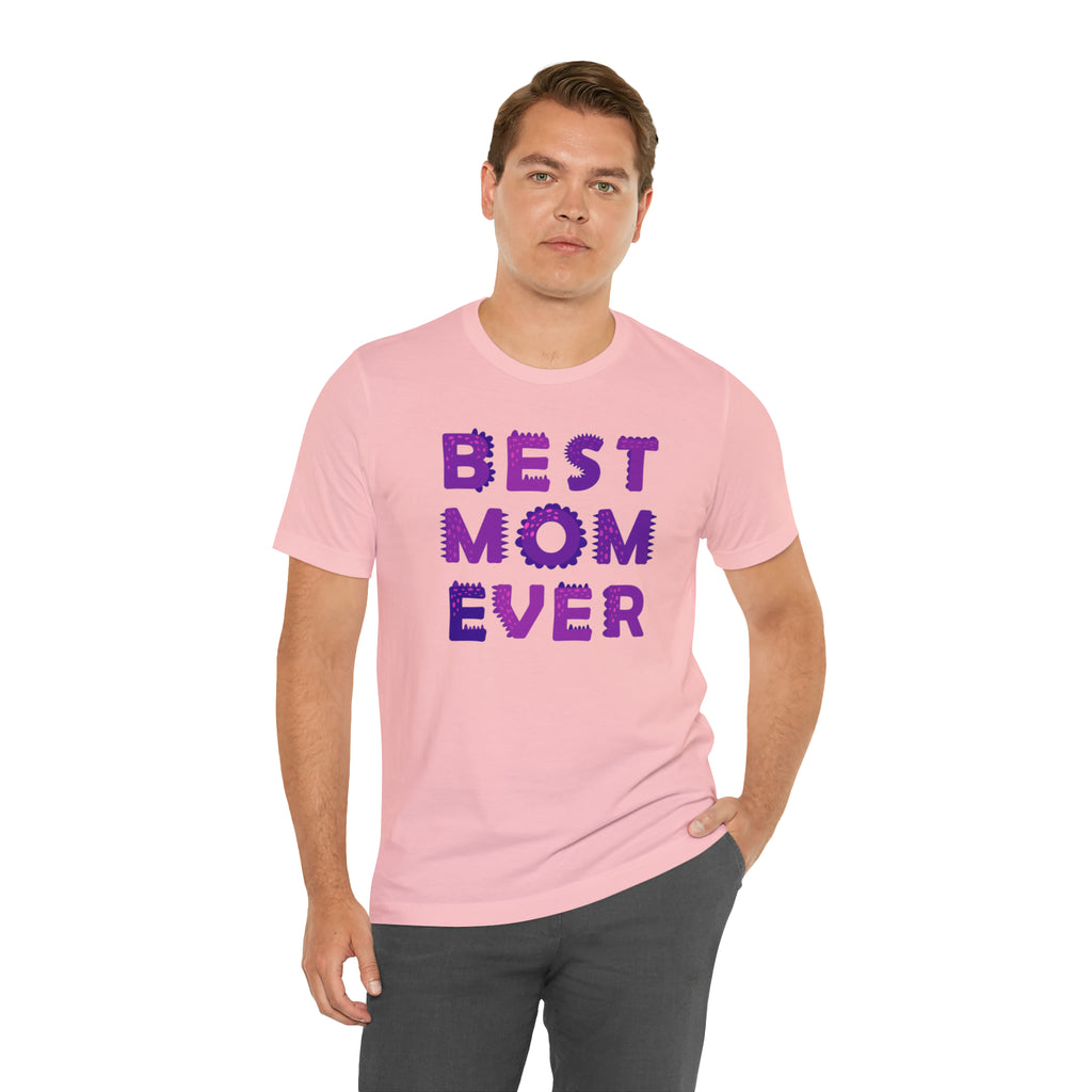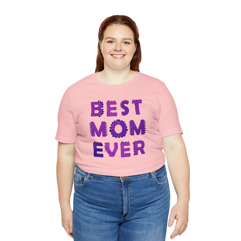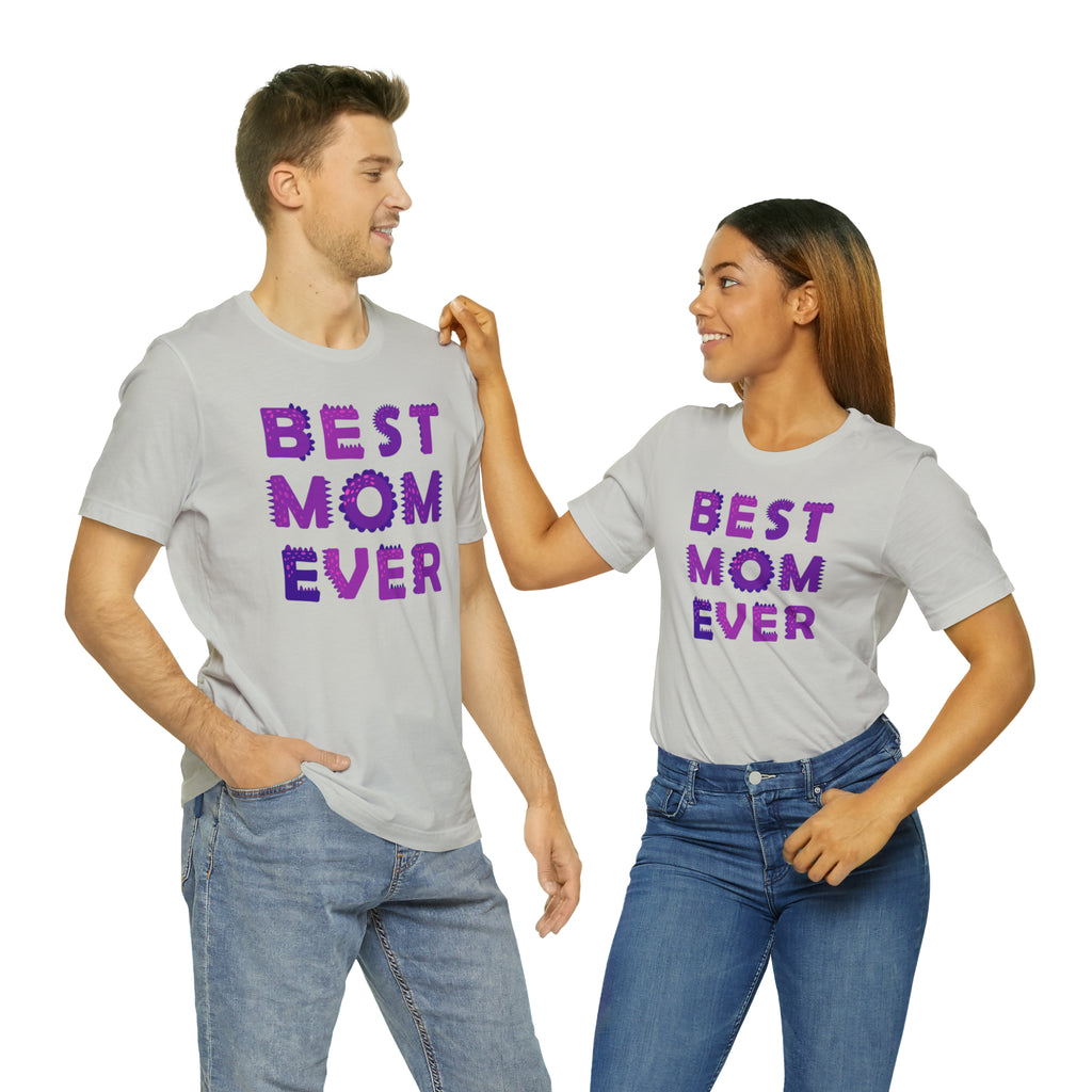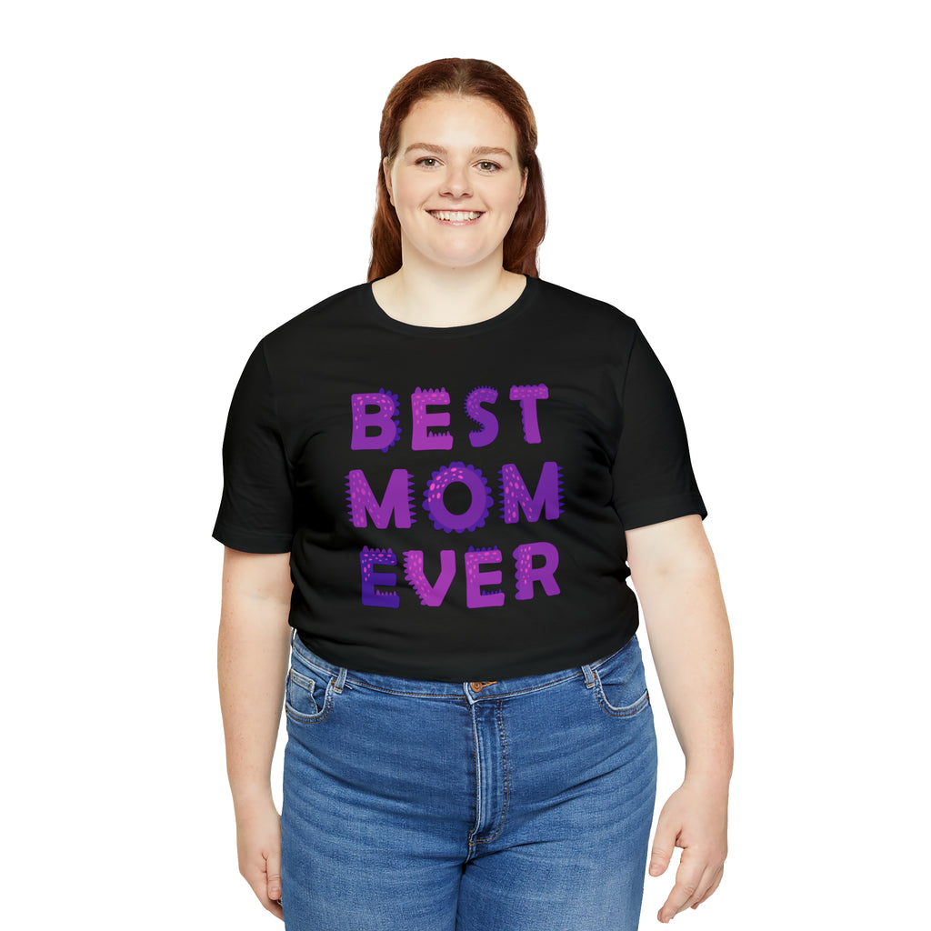 Best Mom Ever Purple Text T-Shirt | Bestie Mama Tee | Bella Canvas 3001 Unisex | Mother Short Sleeve Tshirt