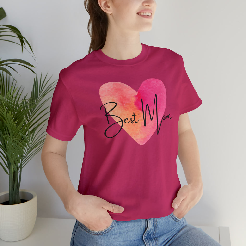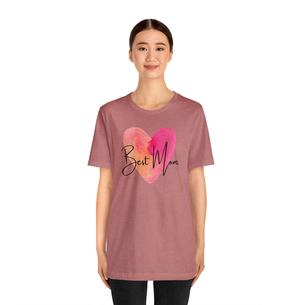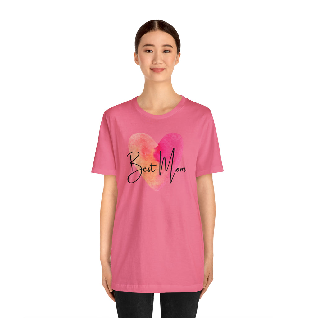 Best Mom Watercolor Heart T-Shirt | Mother Bestie Tee | Bella Canvas 3001 Unisex | Mama Short Sleeve Tshirt