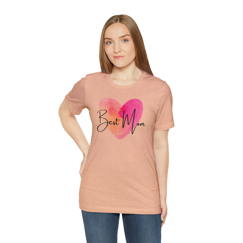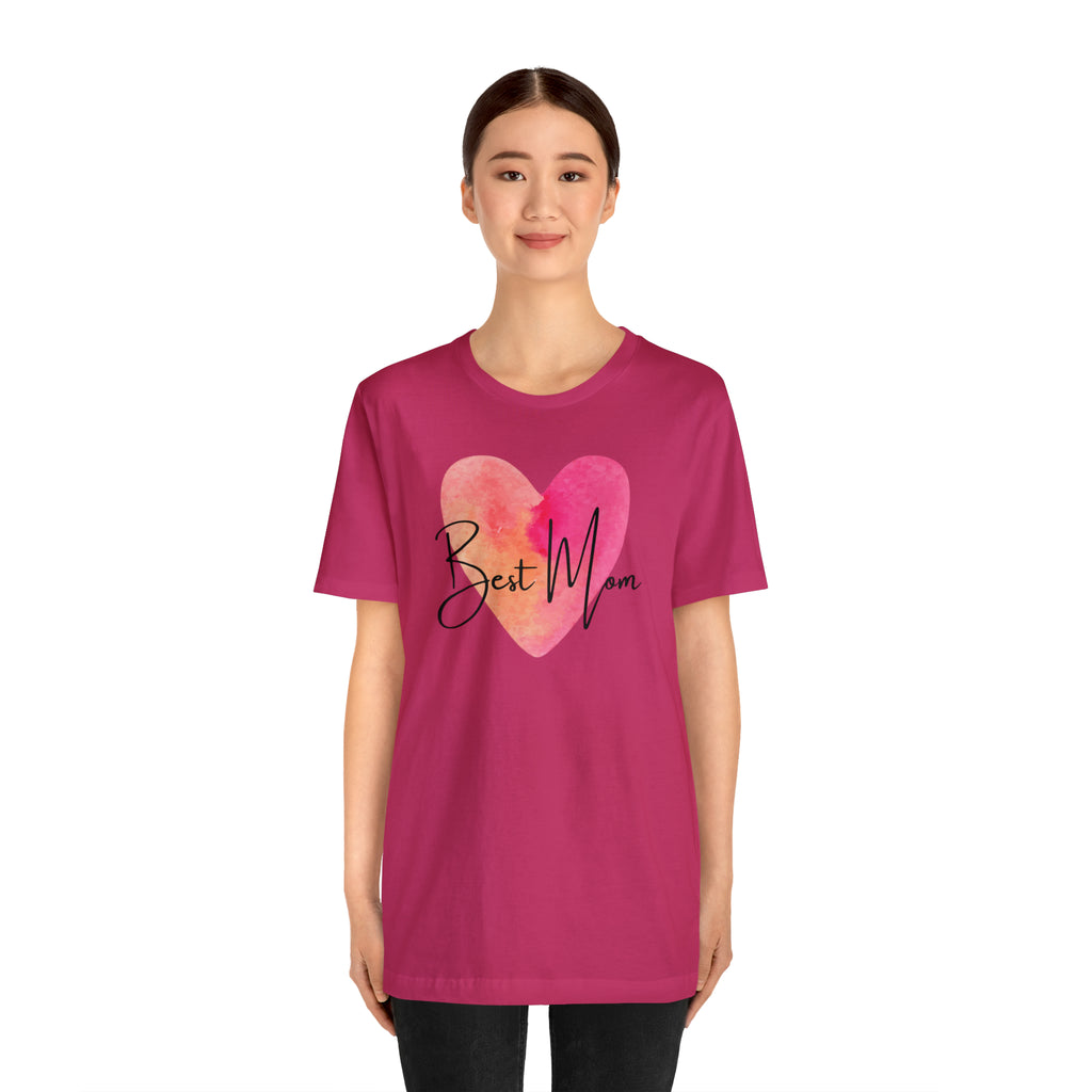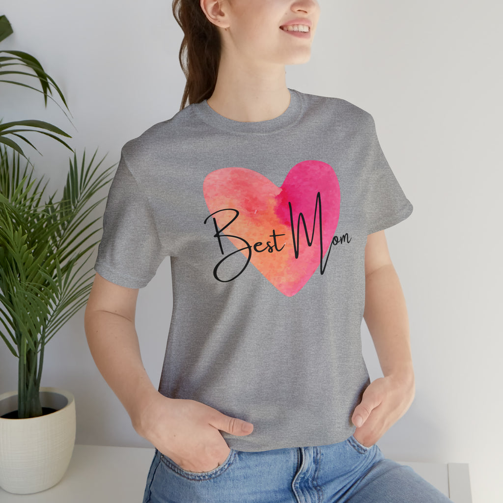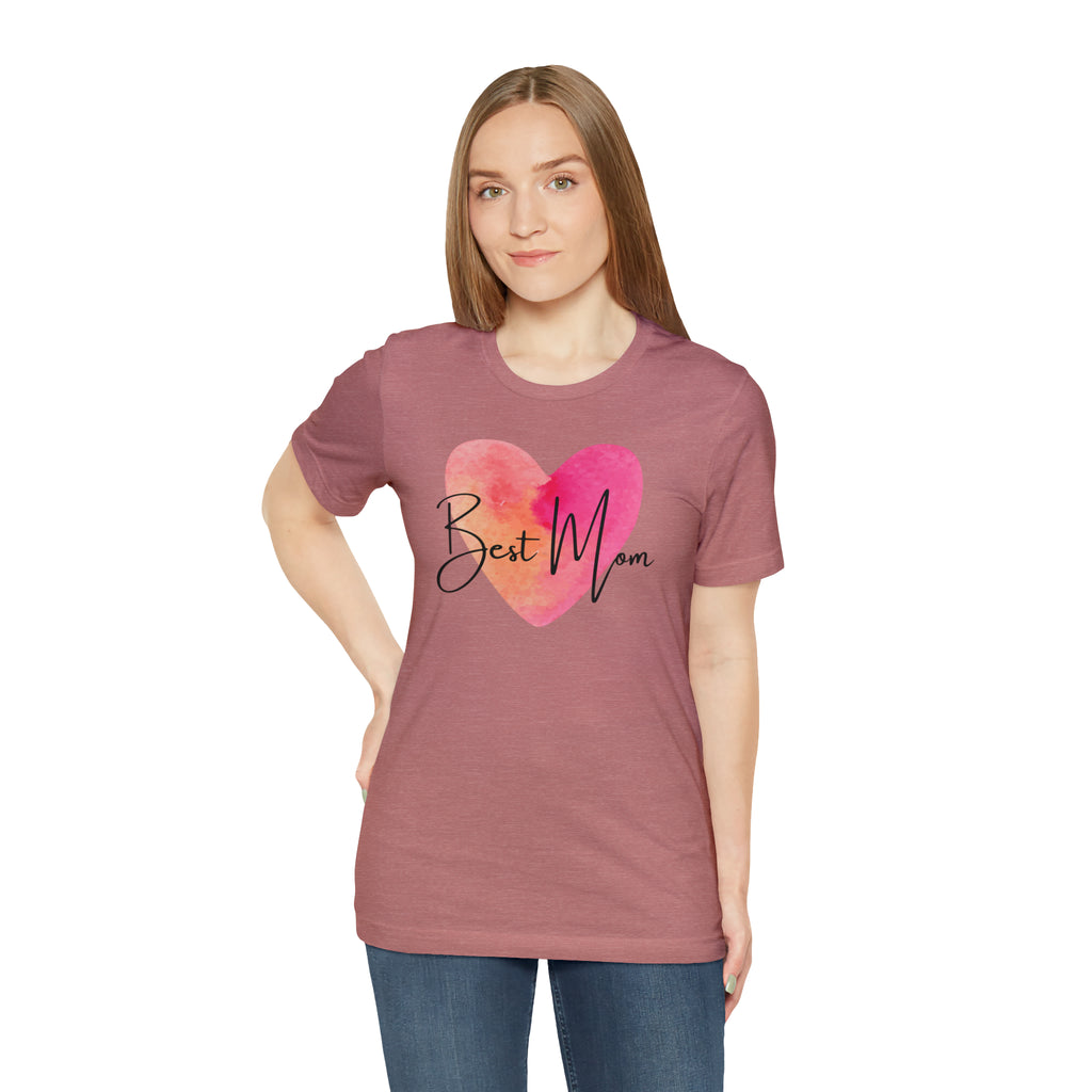 Best Mom Watercolor Heart T-Shirt | Mother Bestie Tee | Bella Canvas 3001 Unisex | Mama Short Sleeve Tshirt