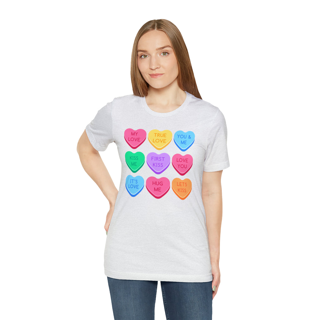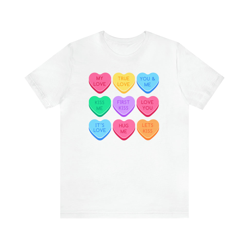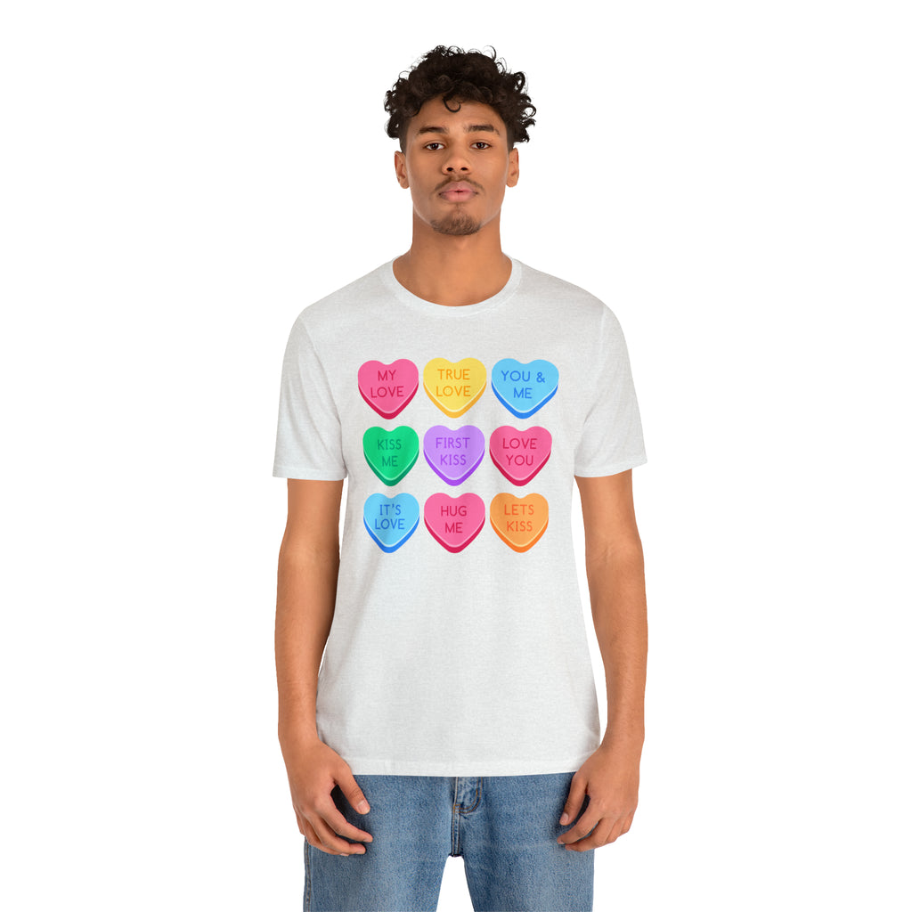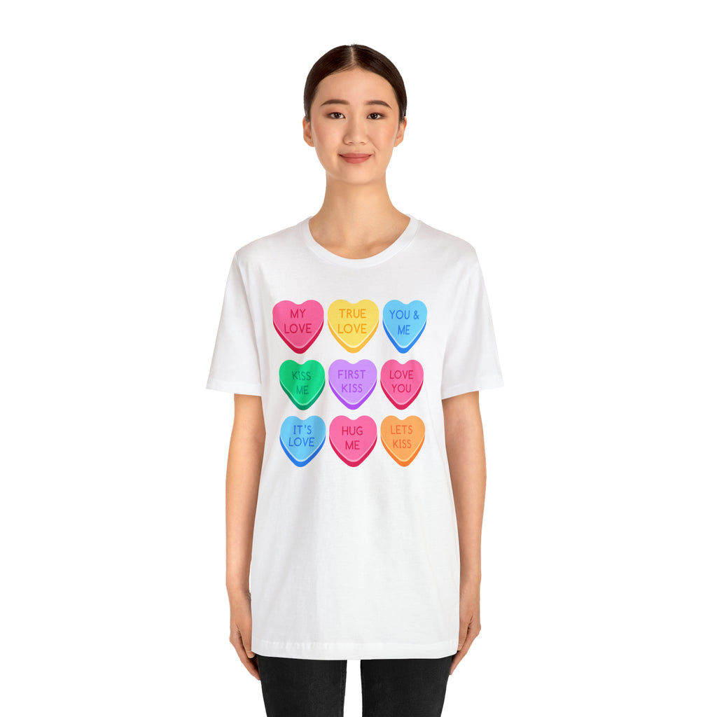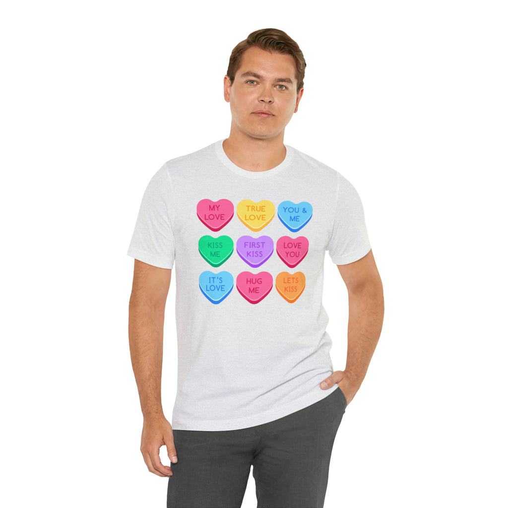 Candy Hearts Colorful T-Shirt | Sweetheart Love Tee | Bella Canvas 3001 Unisex | Happy Valentine's Day Short Sleeve Tshirt