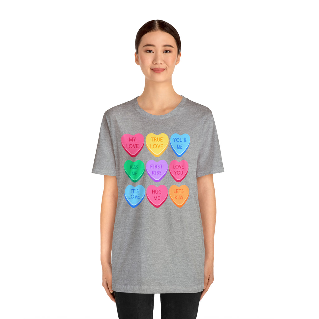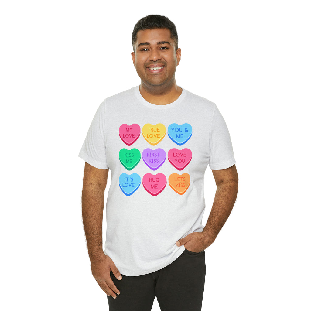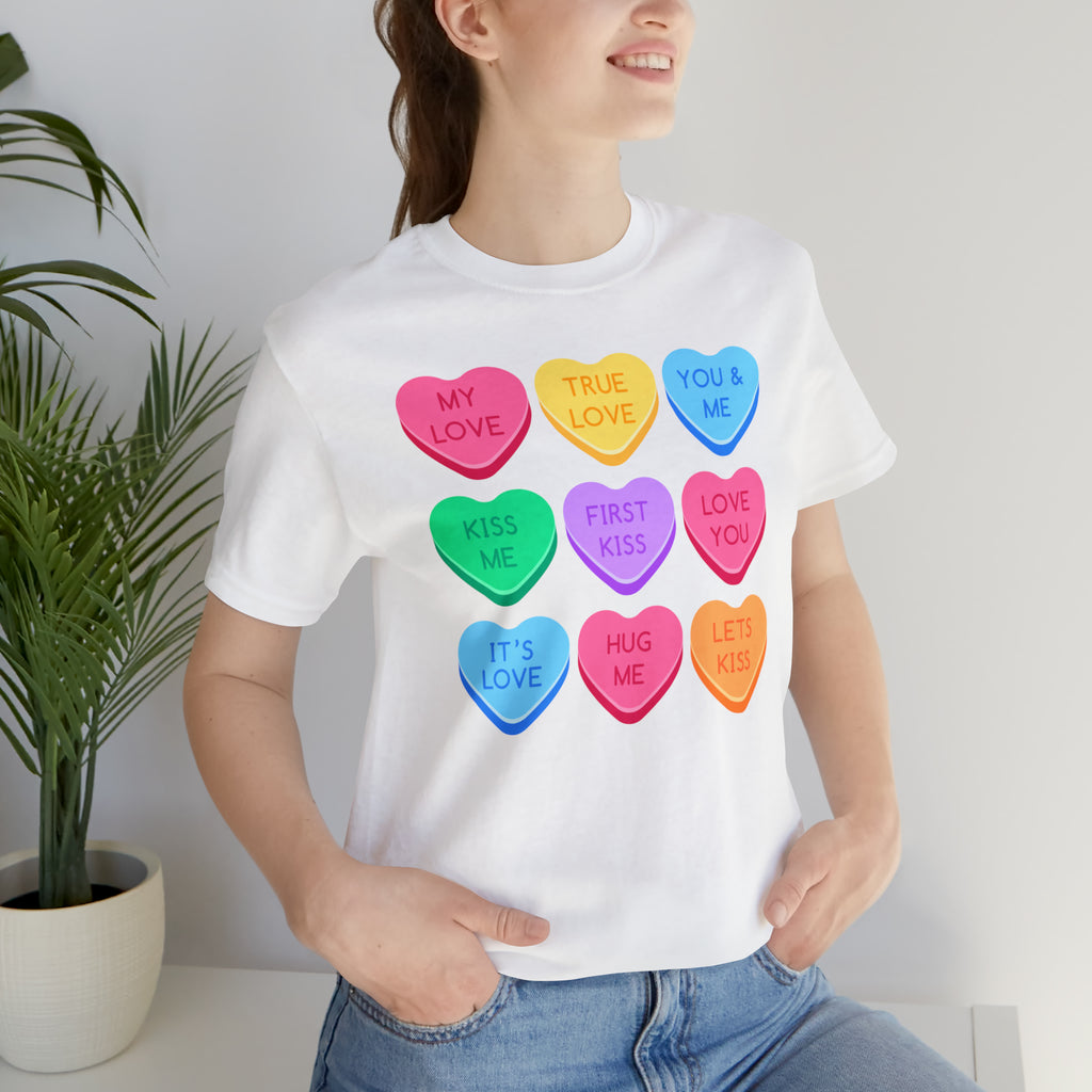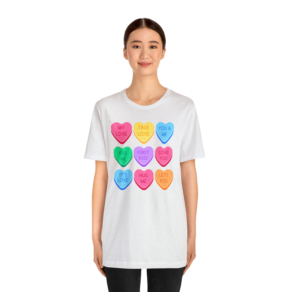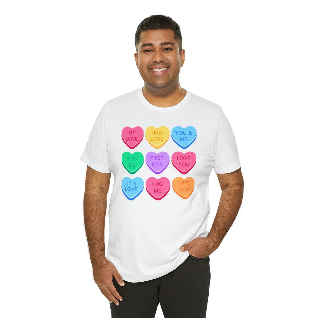 Candy Hearts Colorful T-Shirt | Sweetheart Love Tee | Bella Canvas 3001 Unisex | Happy Valentine's Day Short Sleeve Tshirt