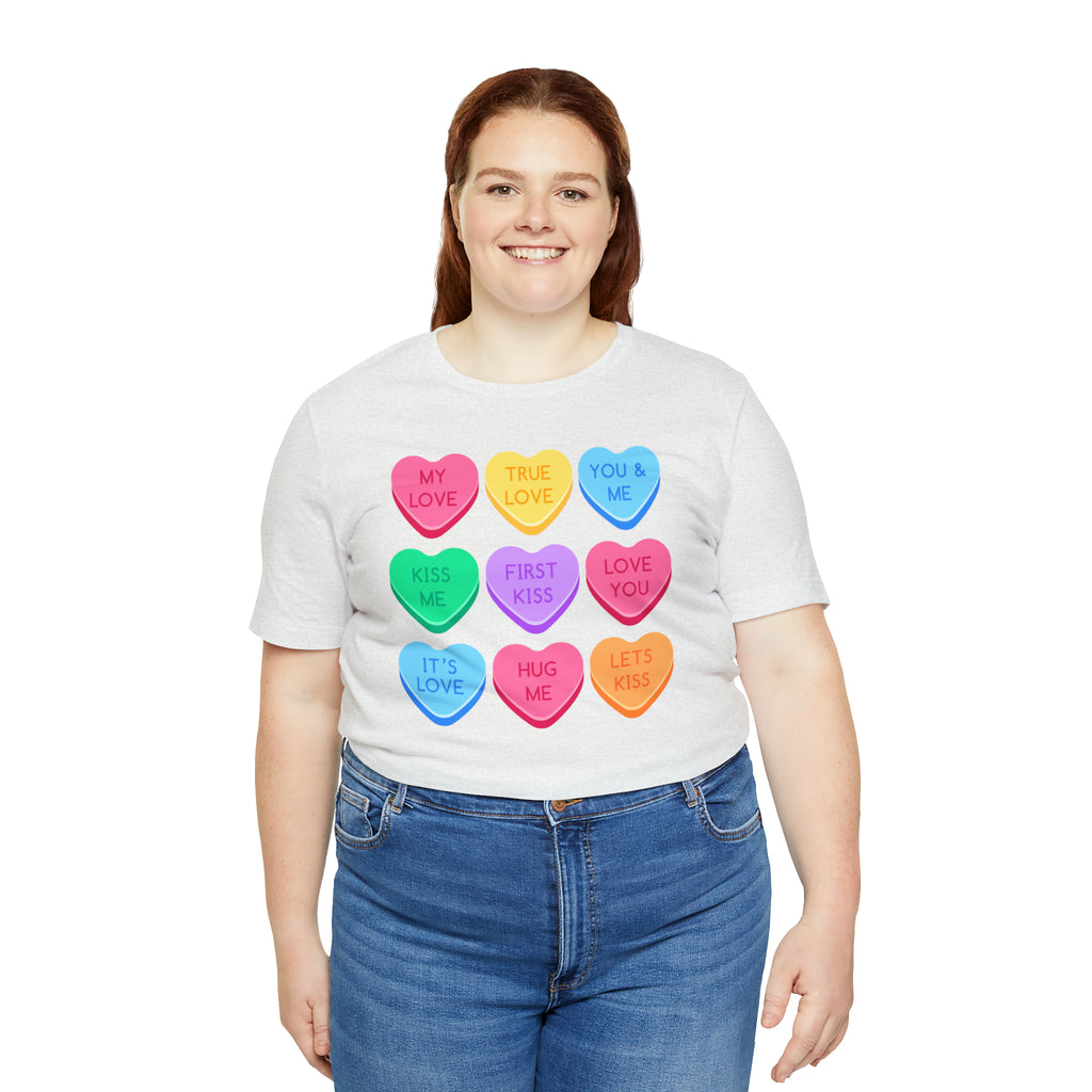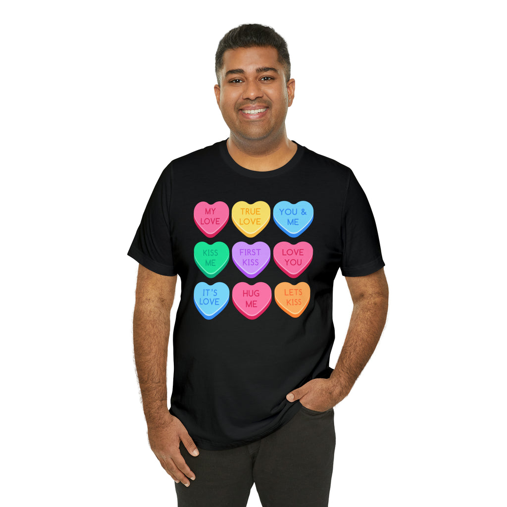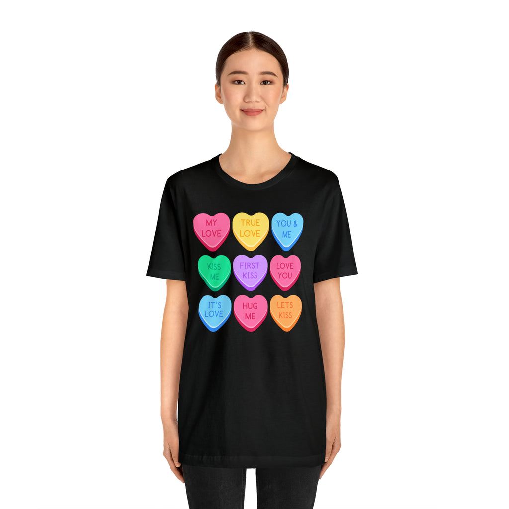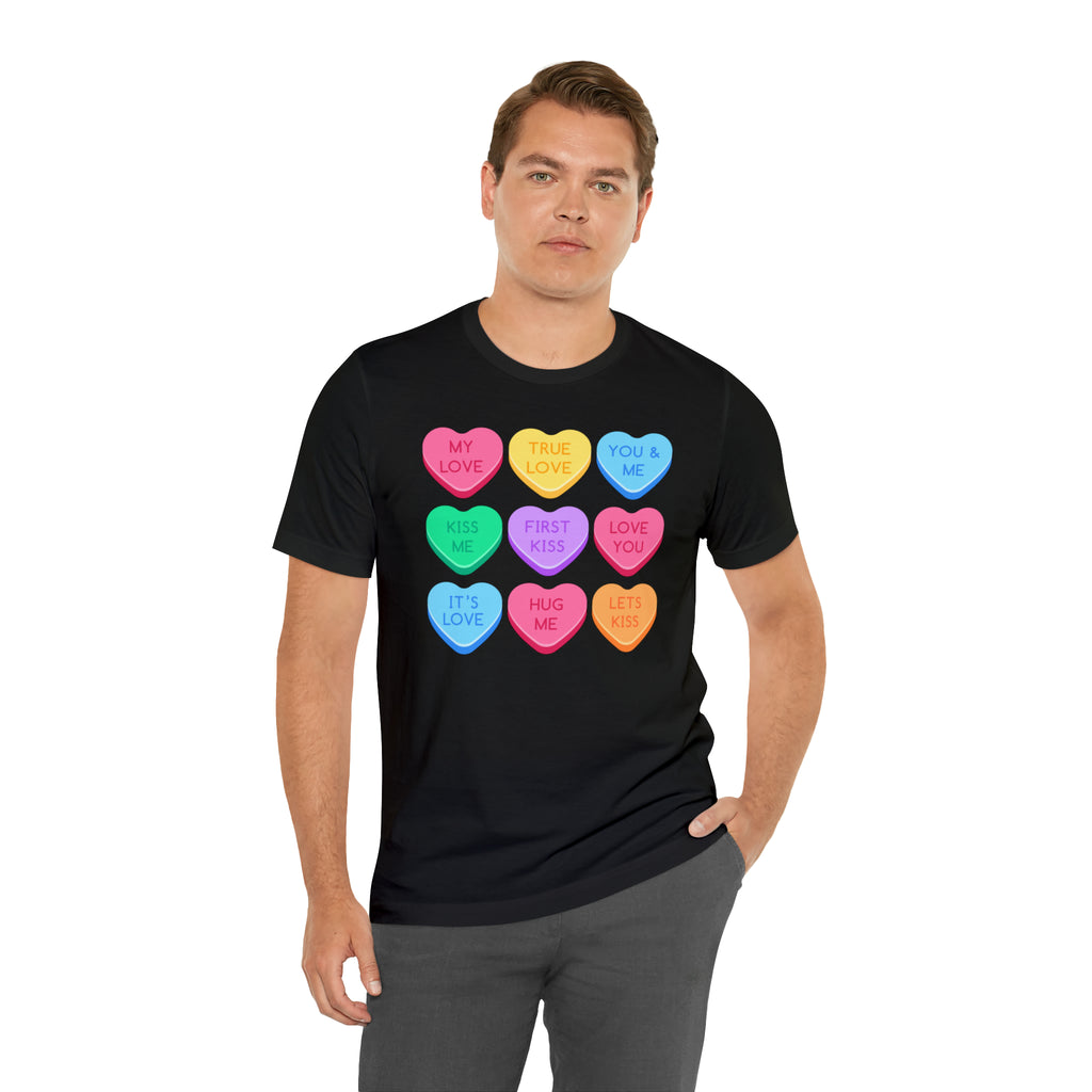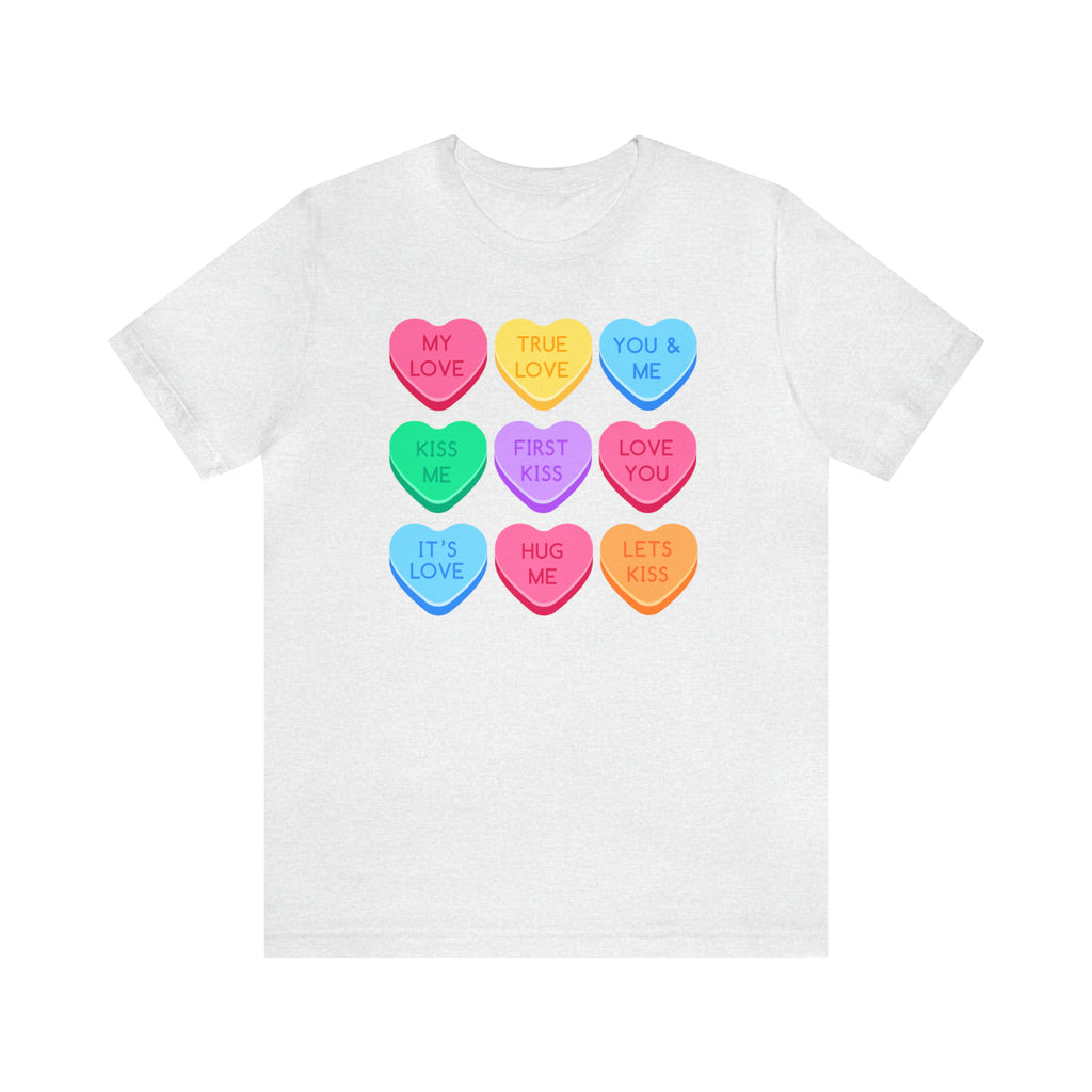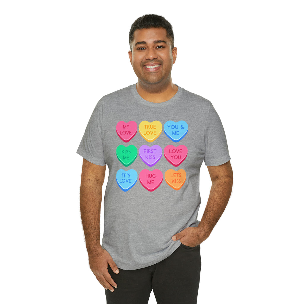Candy Hearts Colorful T-Shirt | Sweetheart Love Tee | Bella Canvas 3001 Unisex | Happy Valentine's Day Short Sleeve Tshirt