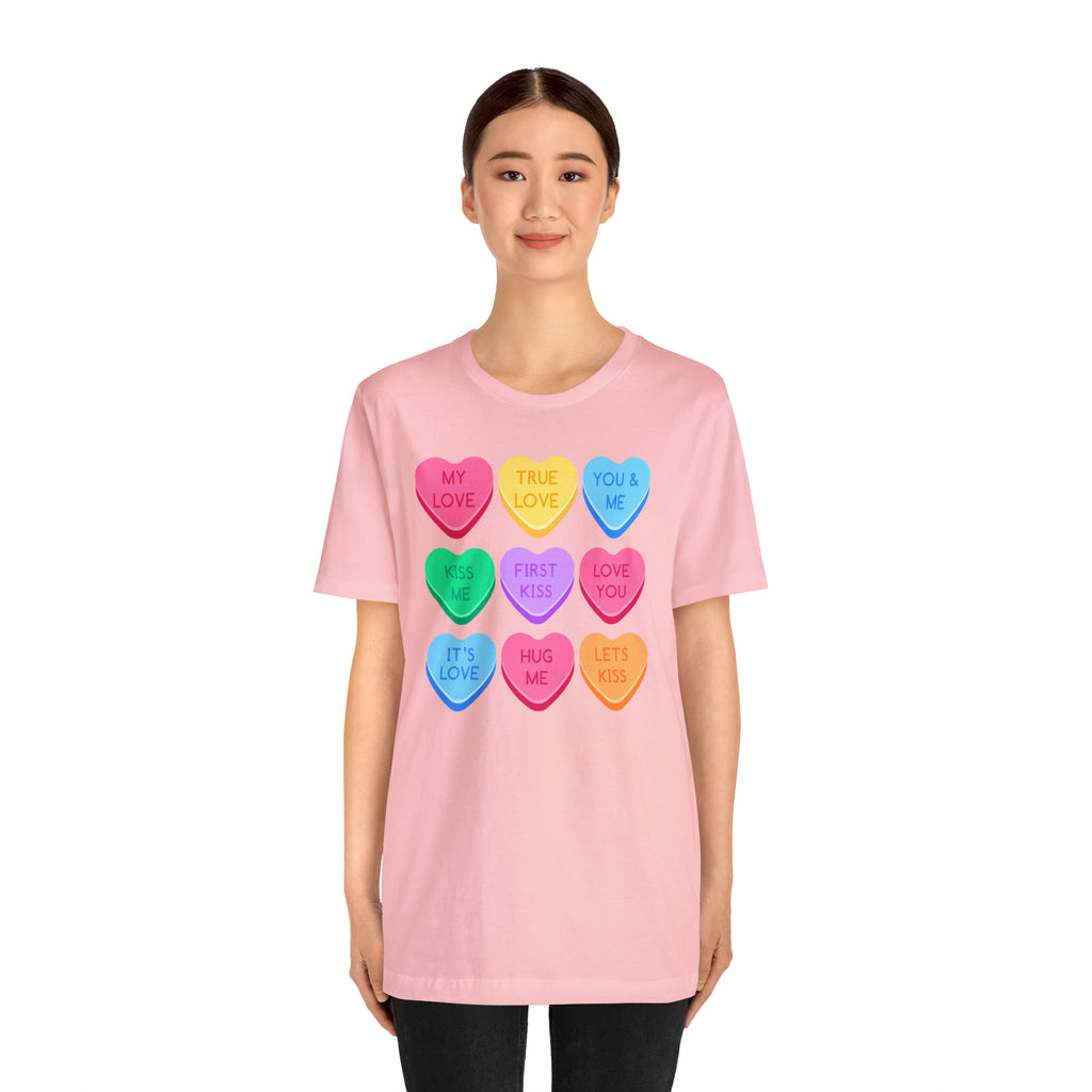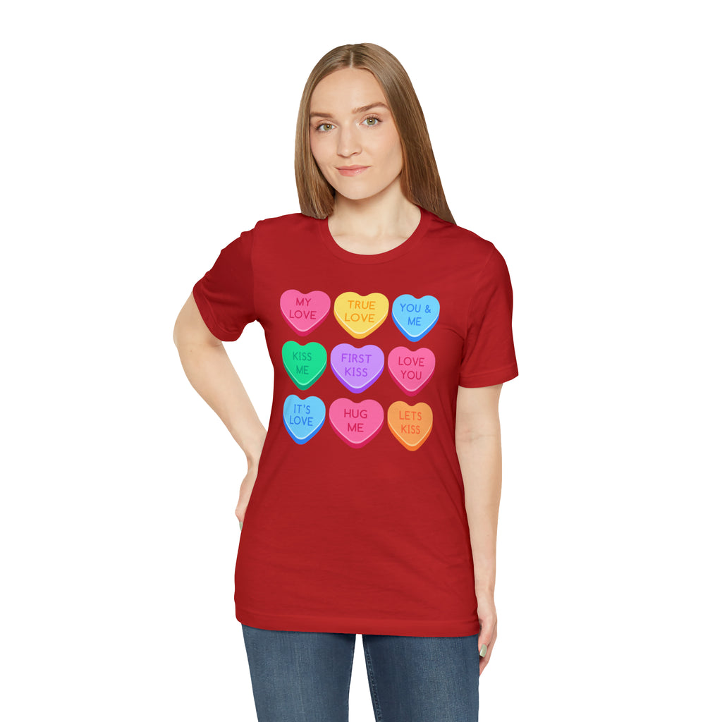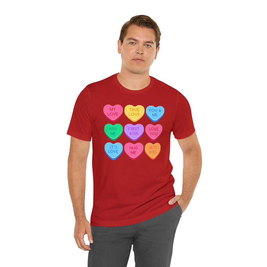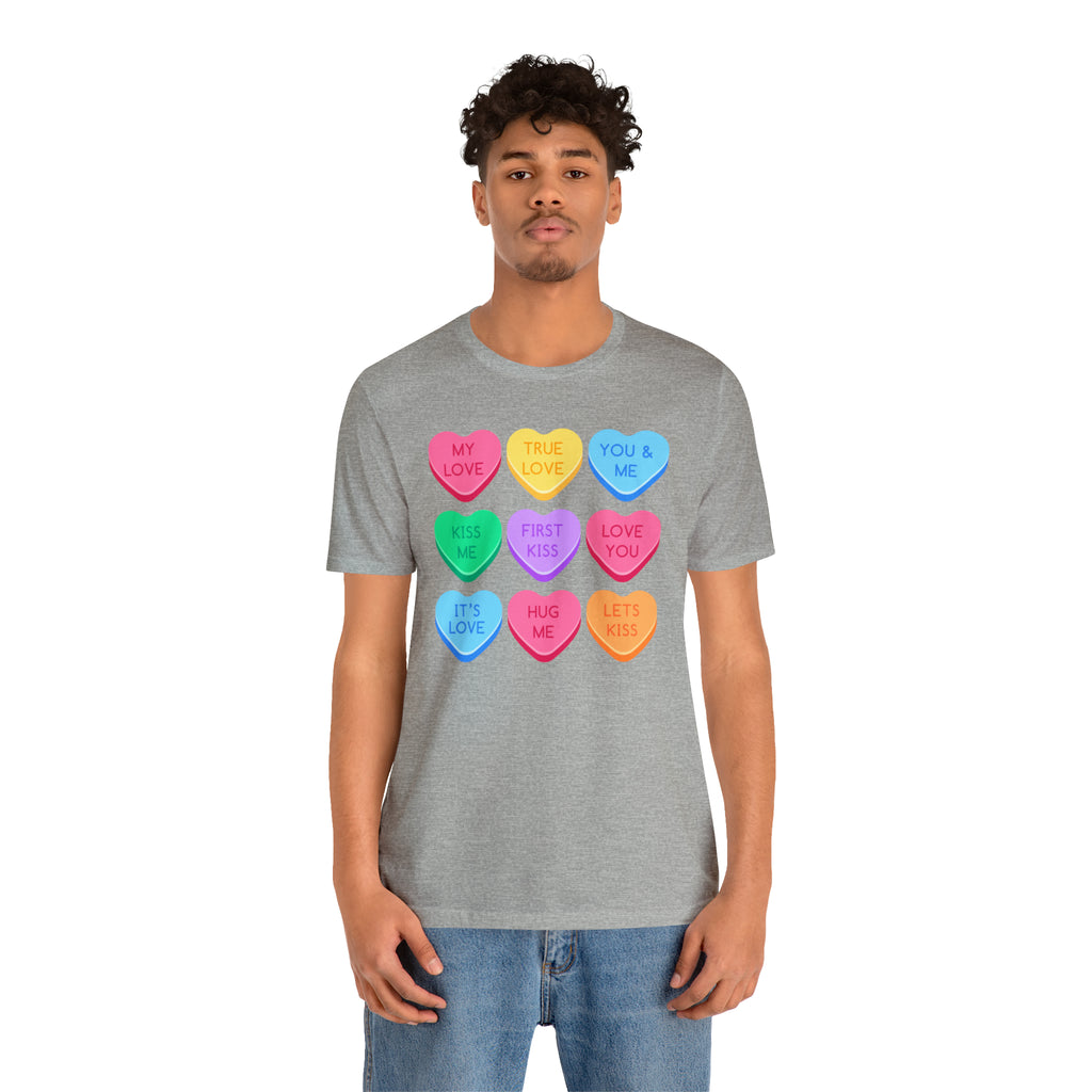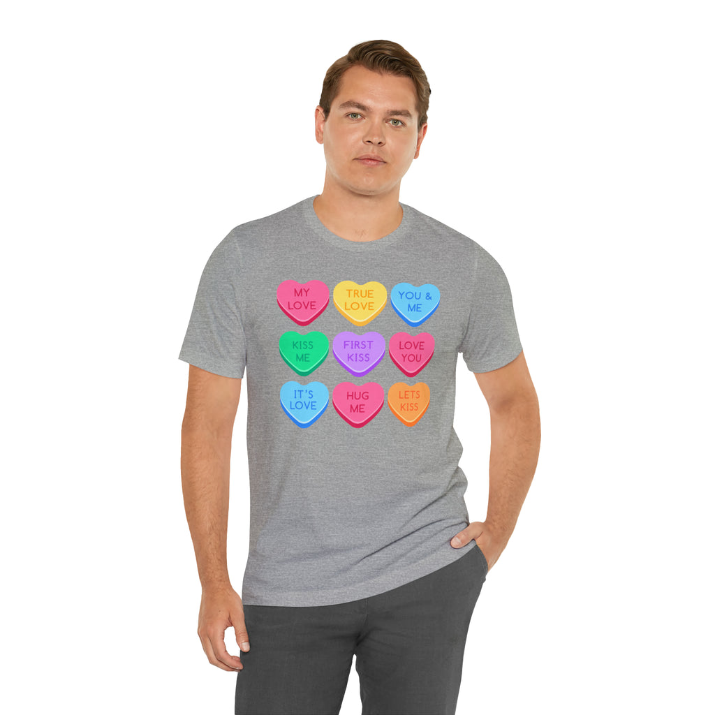 Candy Hearts Colorful T-Shirt | Sweetheart Love Tee | Bella Canvas 3001 Unisex | Happy Valentine's Day Short Sleeve Tshirt