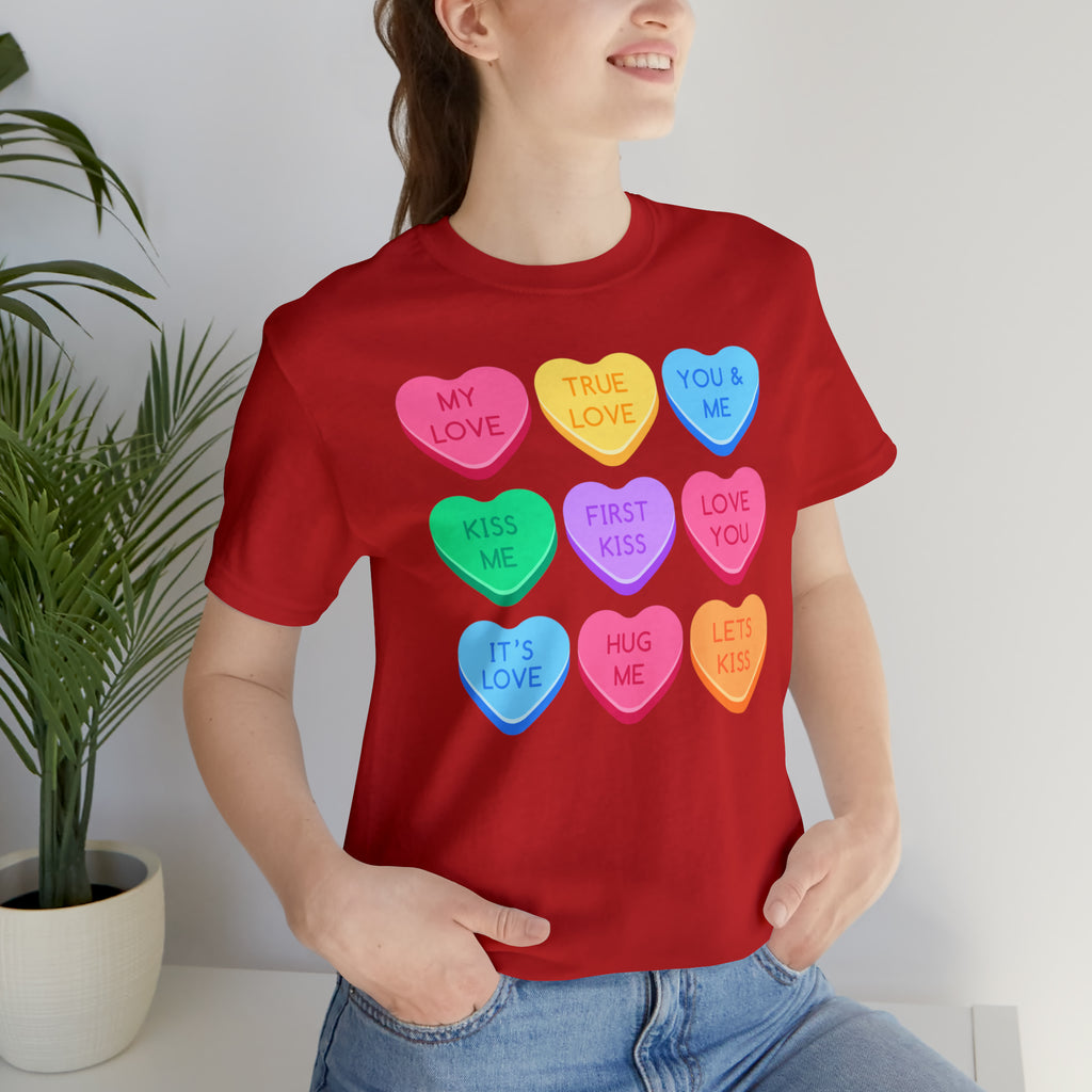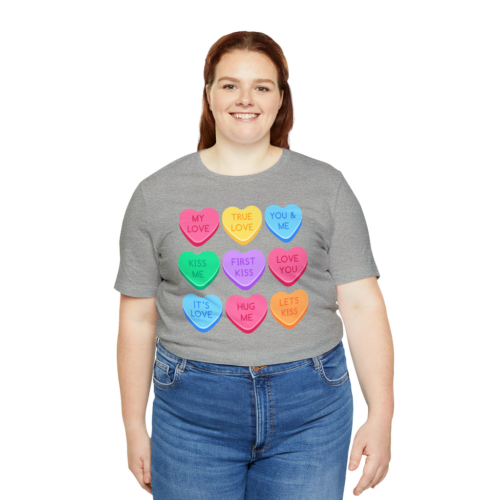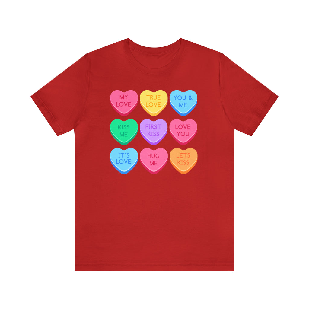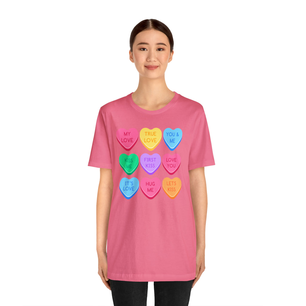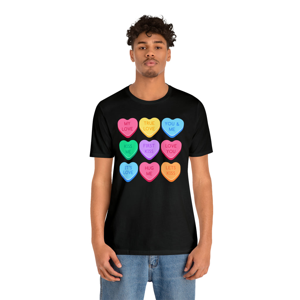 Candy Hearts Colorful T-Shirt | Sweetheart Love Tee | Bella Canvas 3001 Unisex | Happy Valentine's Day Short Sleeve Tshirt