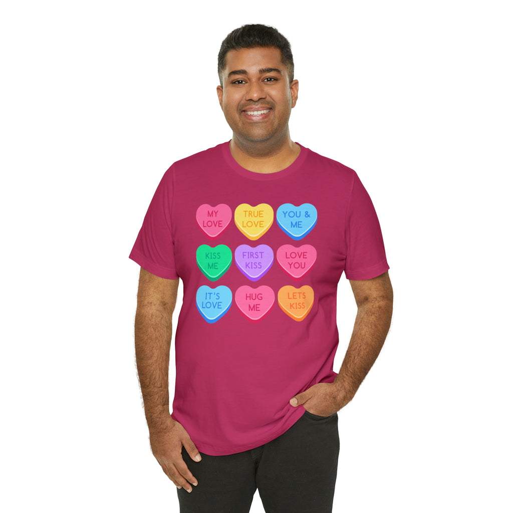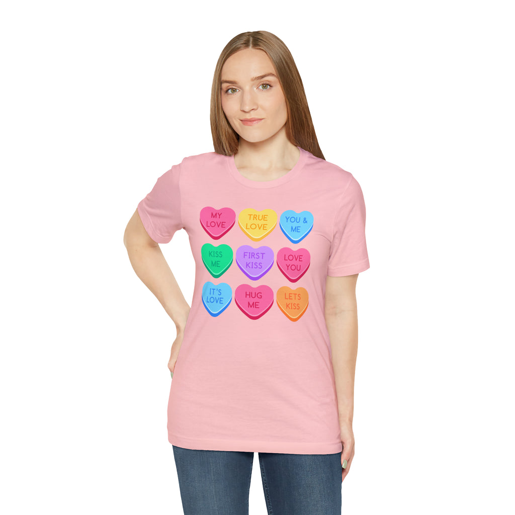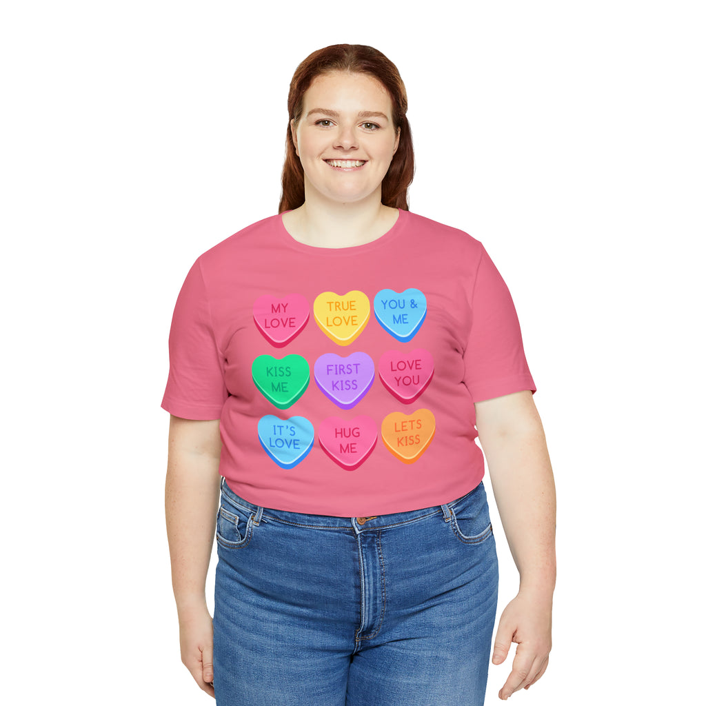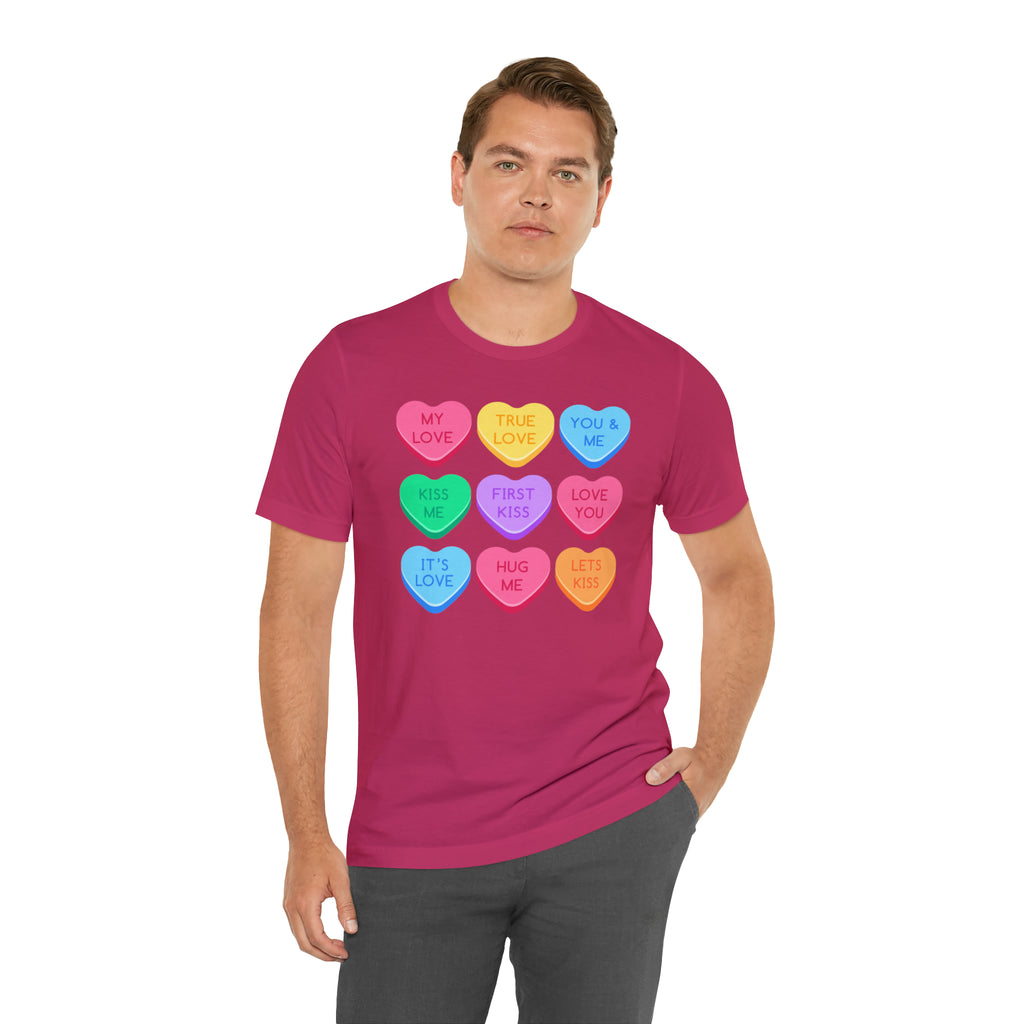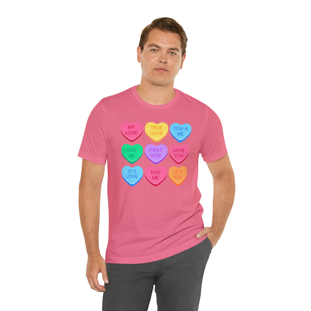Candy Hearts Colorful T-Shirt | Sweetheart Love Tee | Bella Canvas 3001 Unisex | Happy Valentine's Day Short Sleeve Tshirt