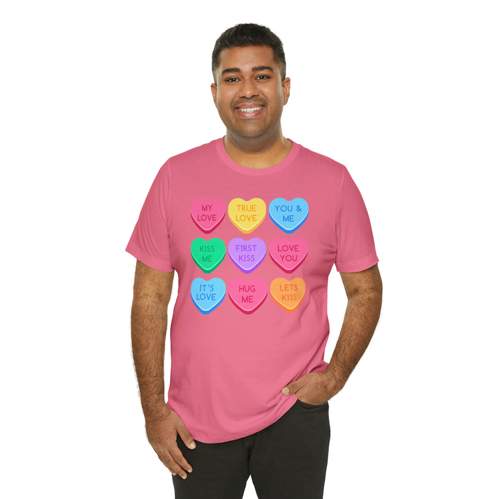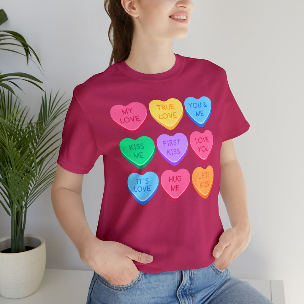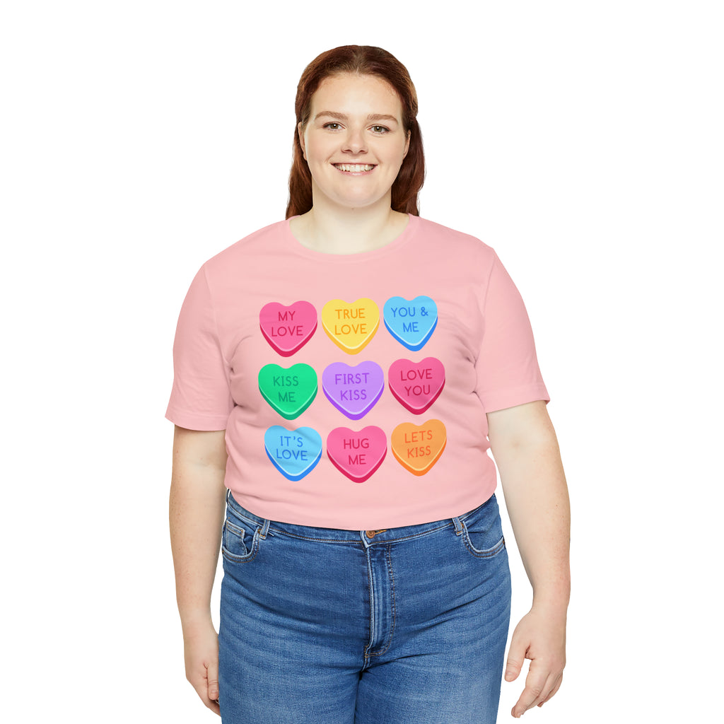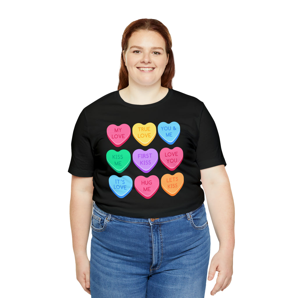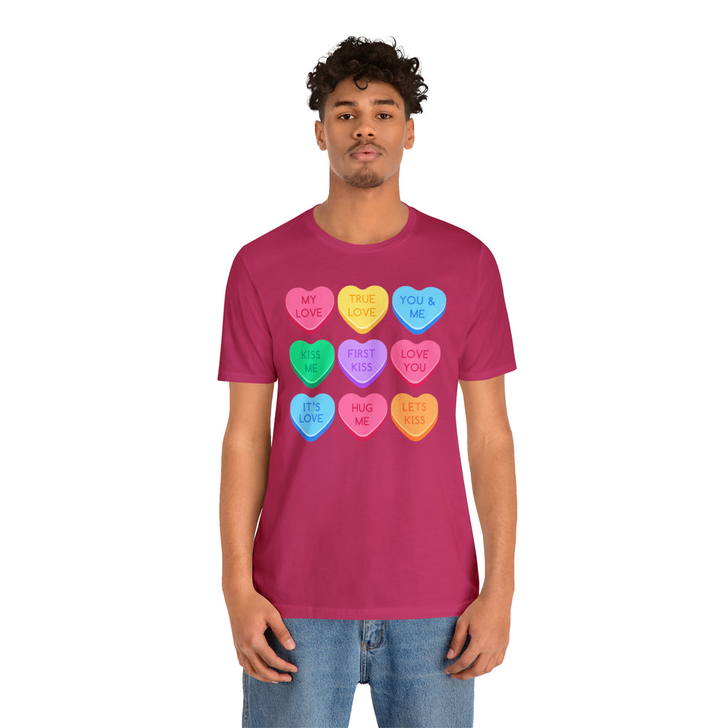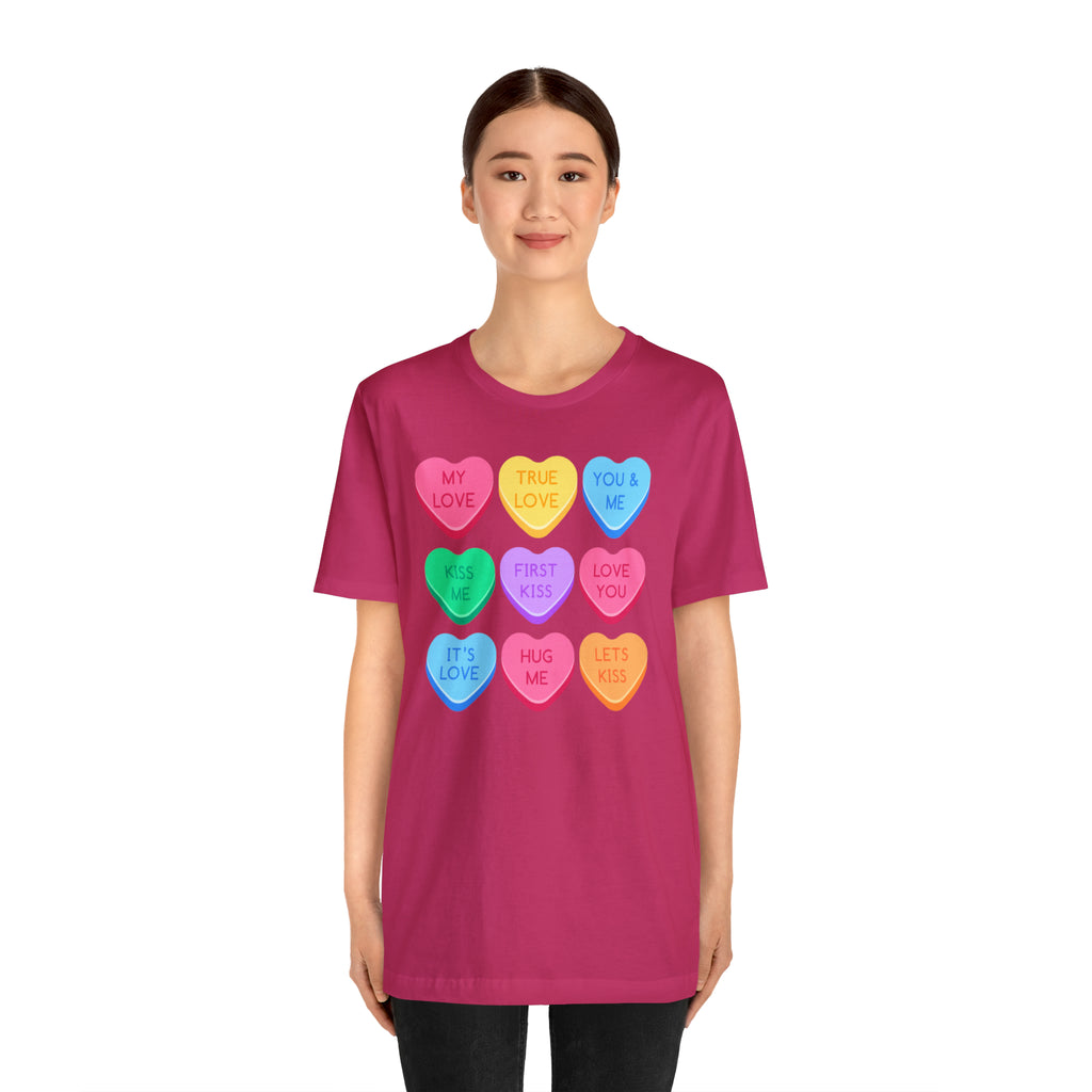 Candy Hearts Colorful T-Shirt | Sweetheart Love Tee | Bella Canvas 3001 Unisex | Happy Valentine's Day Short Sleeve Tshirt