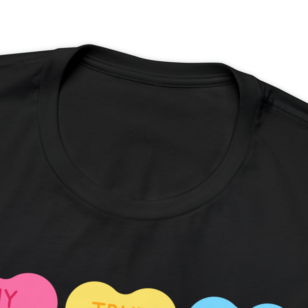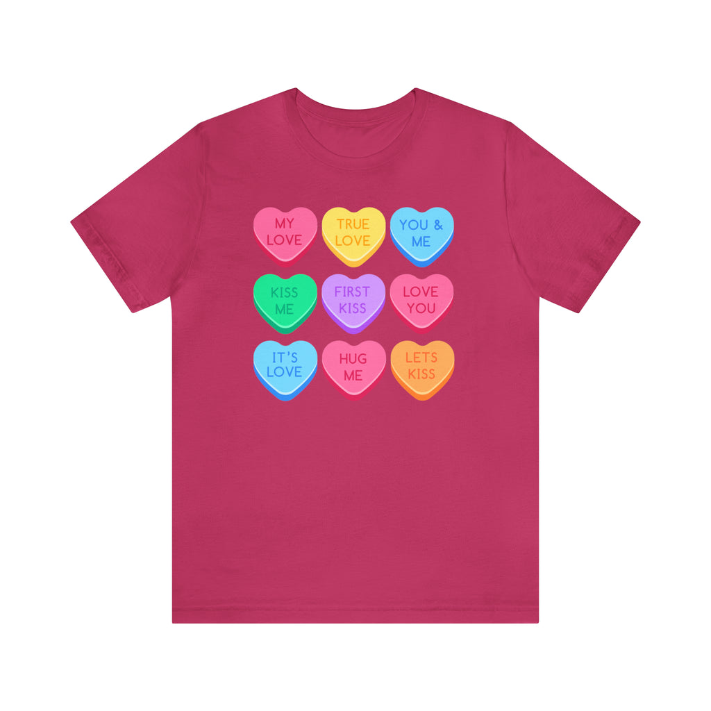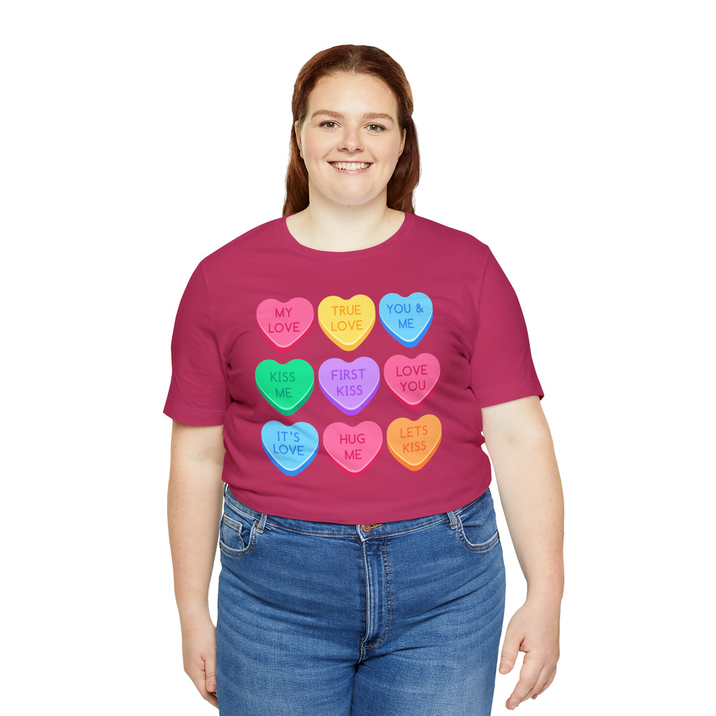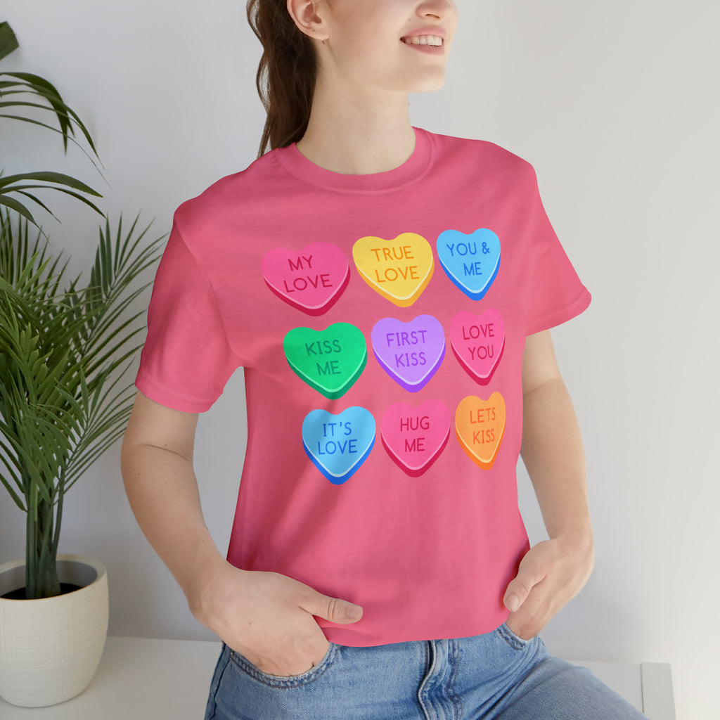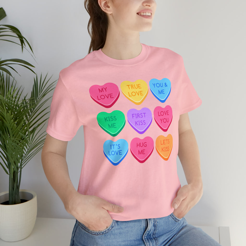 Candy Hearts Colorful T-Shirt | Sweetheart Love Tee | Bella Canvas 3001 Unisex | Happy Valentine's Day Short Sleeve Tshirt