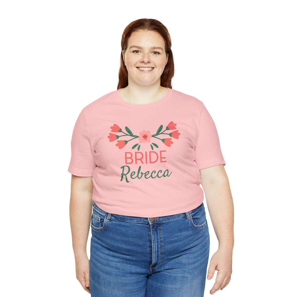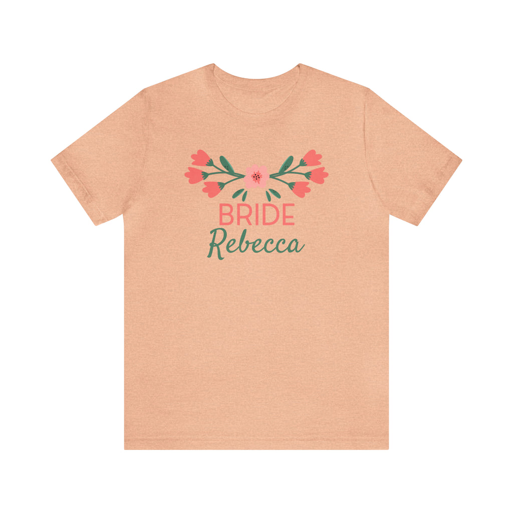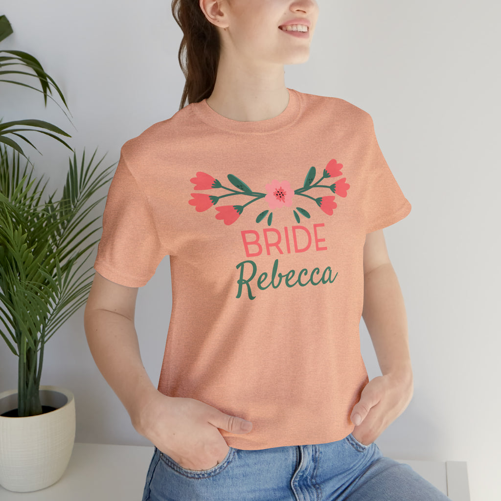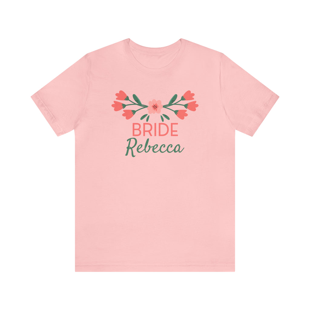 CUSTOM Bride Bridal Crew T-Shirt | Pink and Peach Flower Tee | Bella Canvas 3001 Unisex | Wedding Party Short Sleeve Tshirt