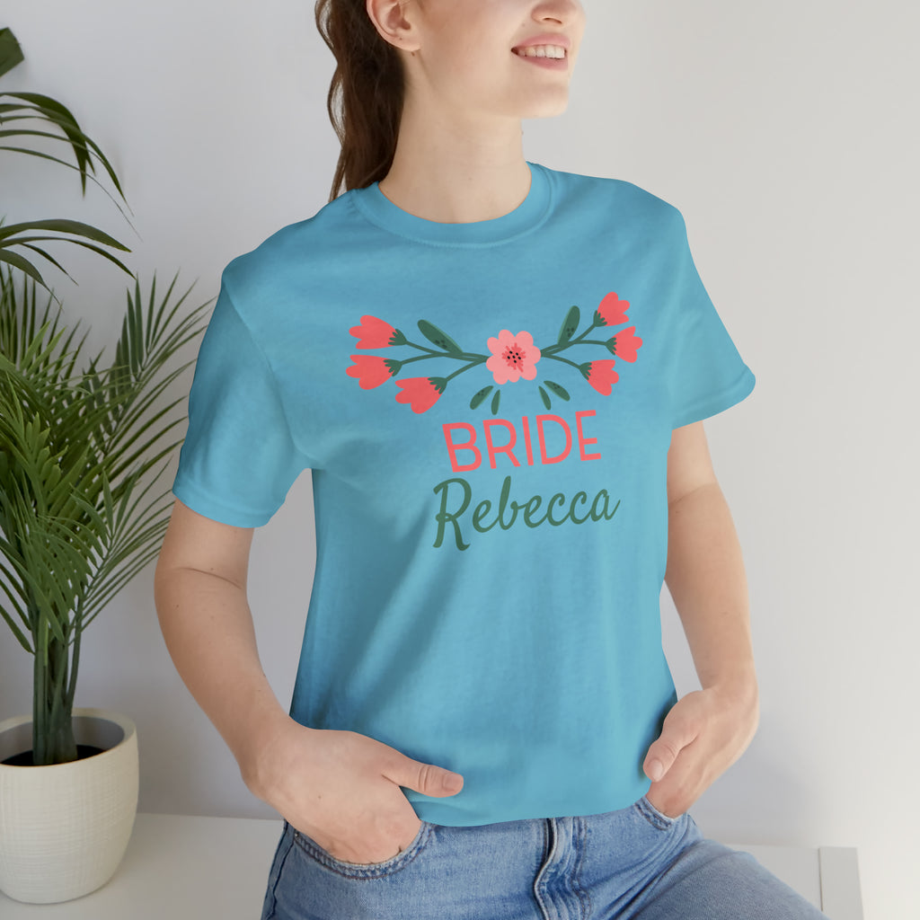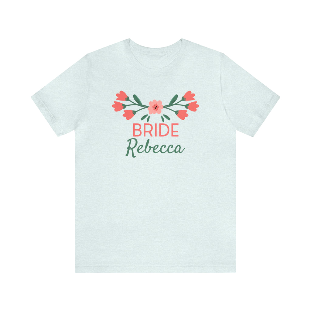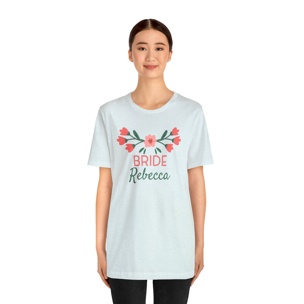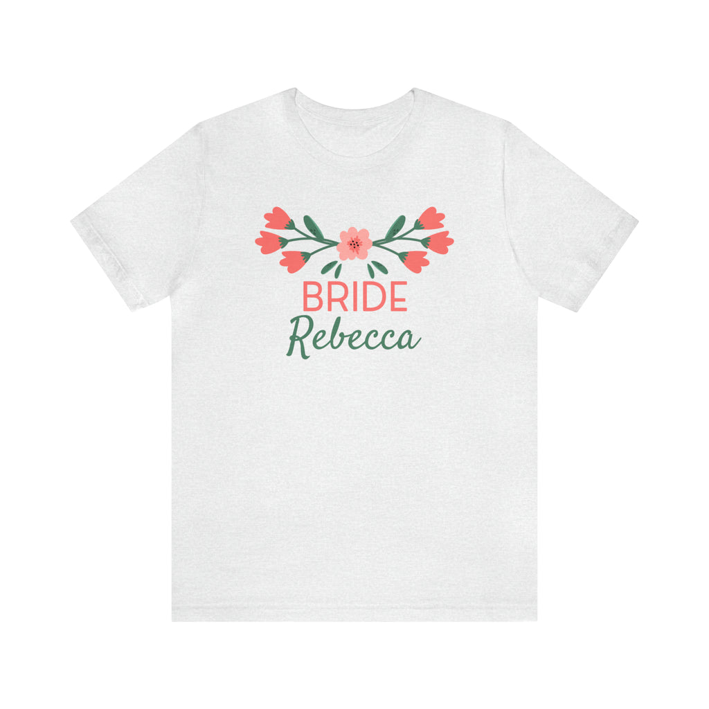 CUSTOM Bride Bridal Crew T-Shirt | Pink and Peach Flower Tee | Bella Canvas 3001 Unisex | Wedding Party Short Sleeve Tshirt