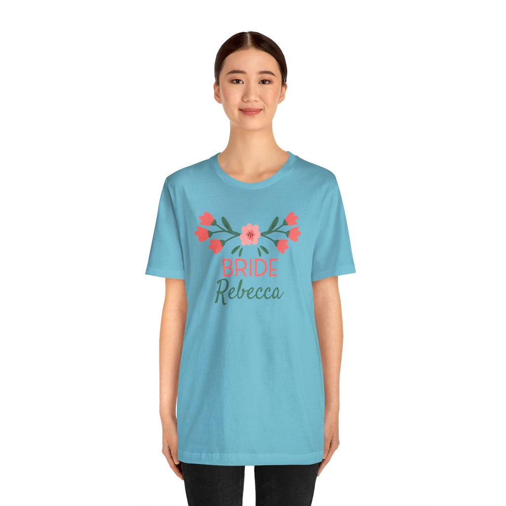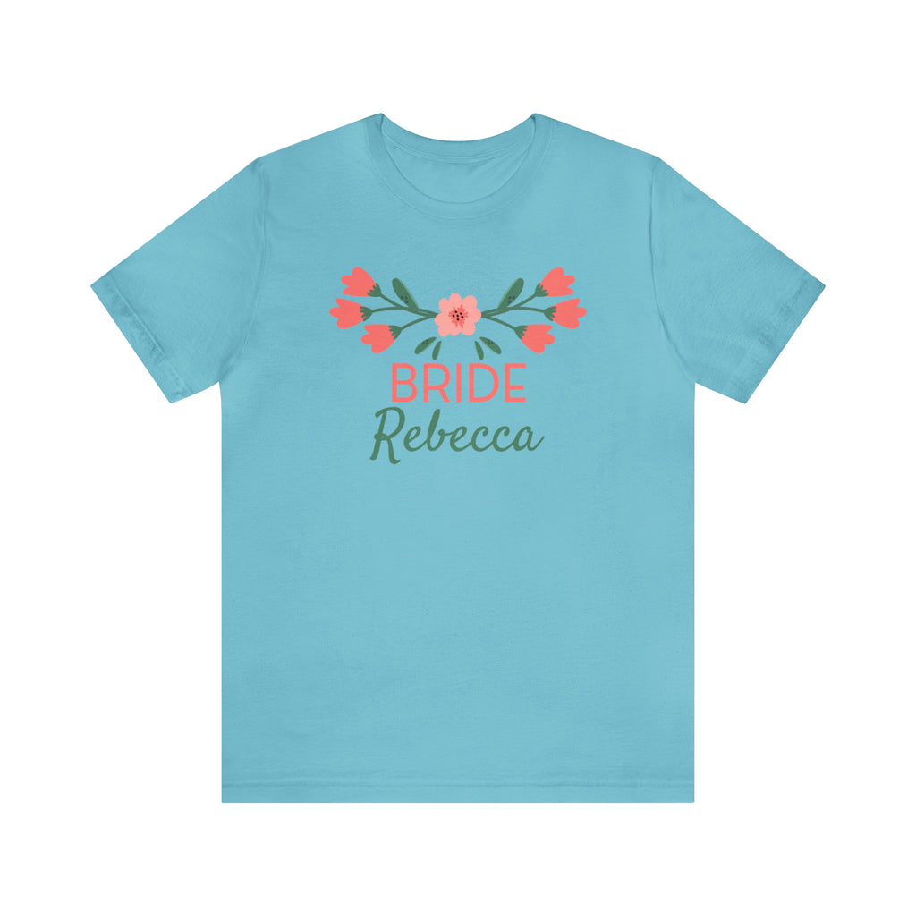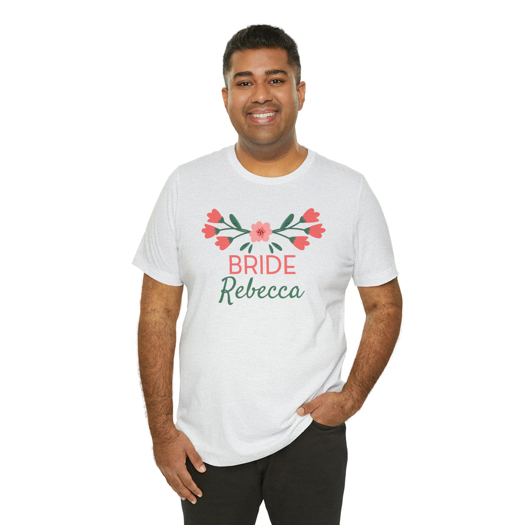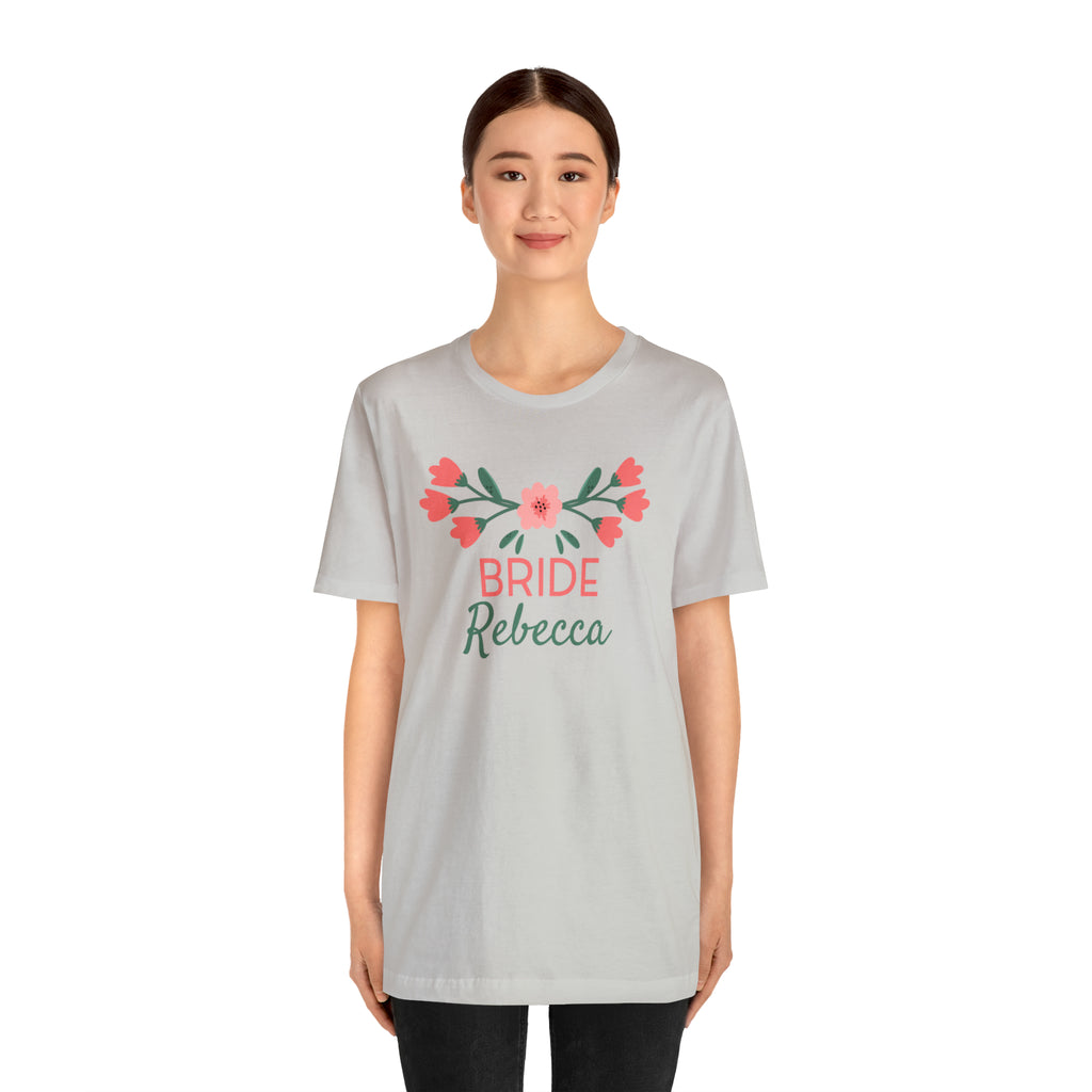 CUSTOM Bride Bridal Crew T-Shirt | Pink and Peach Flower Tee | Bella Canvas 3001 Unisex | Wedding Party Short Sleeve Tshirt