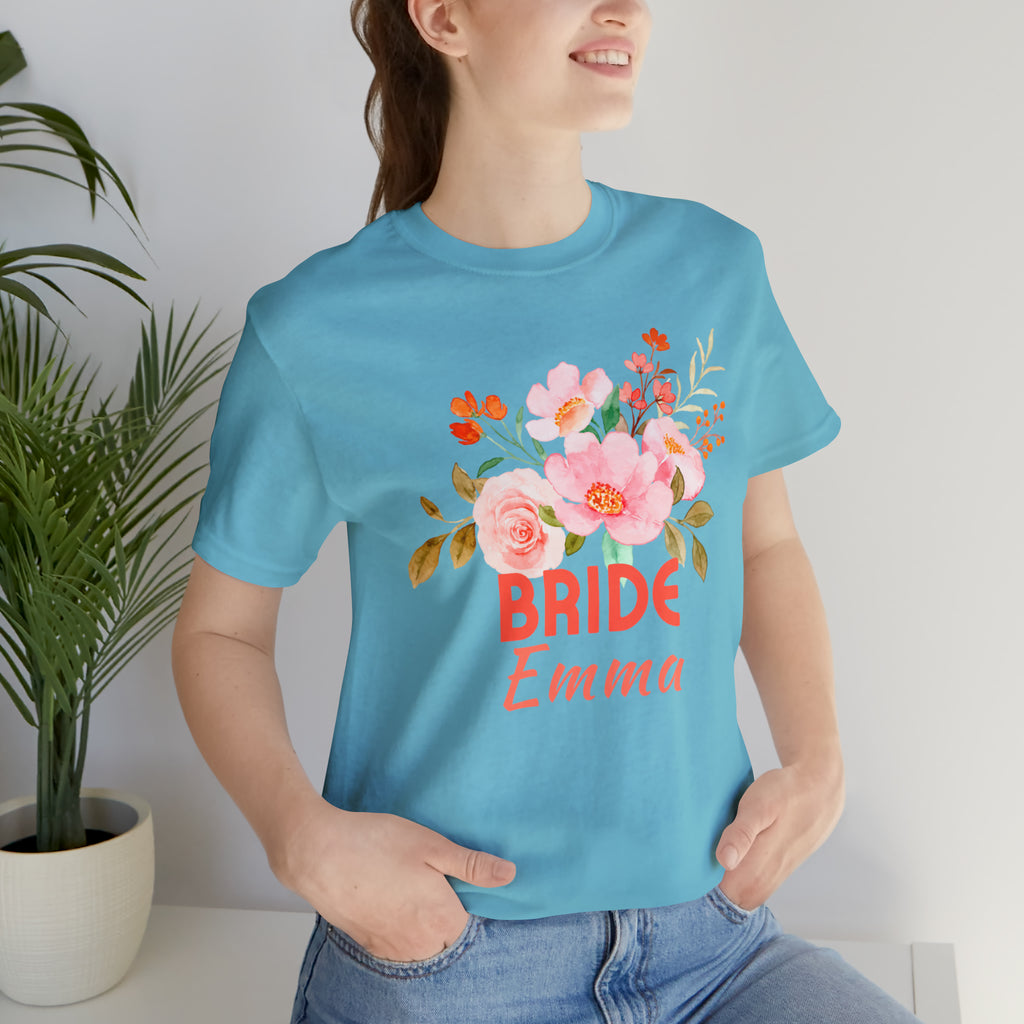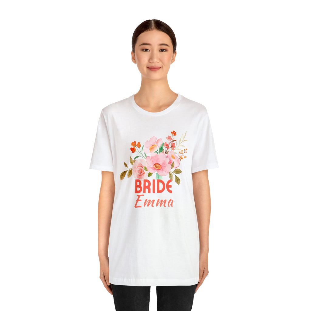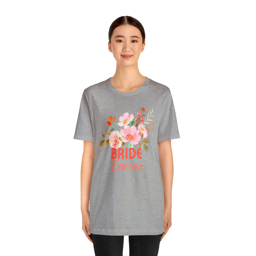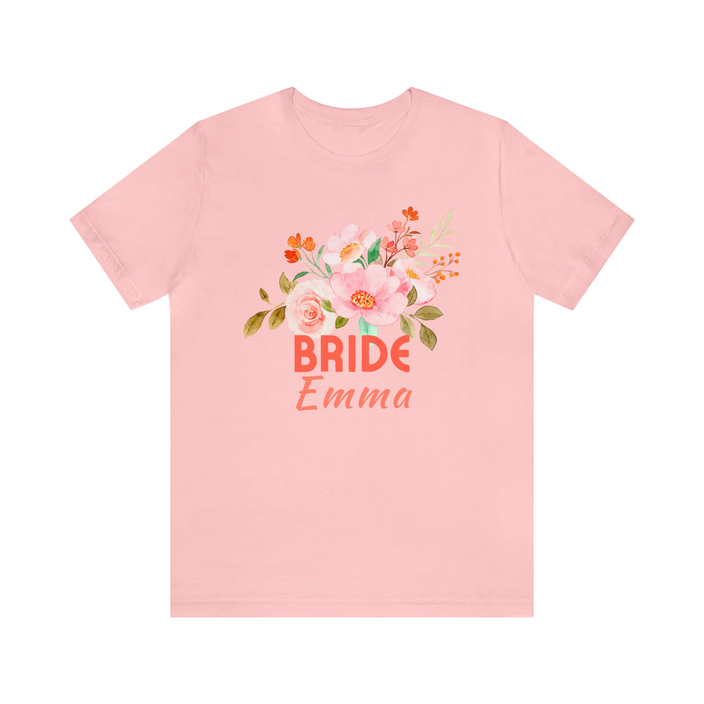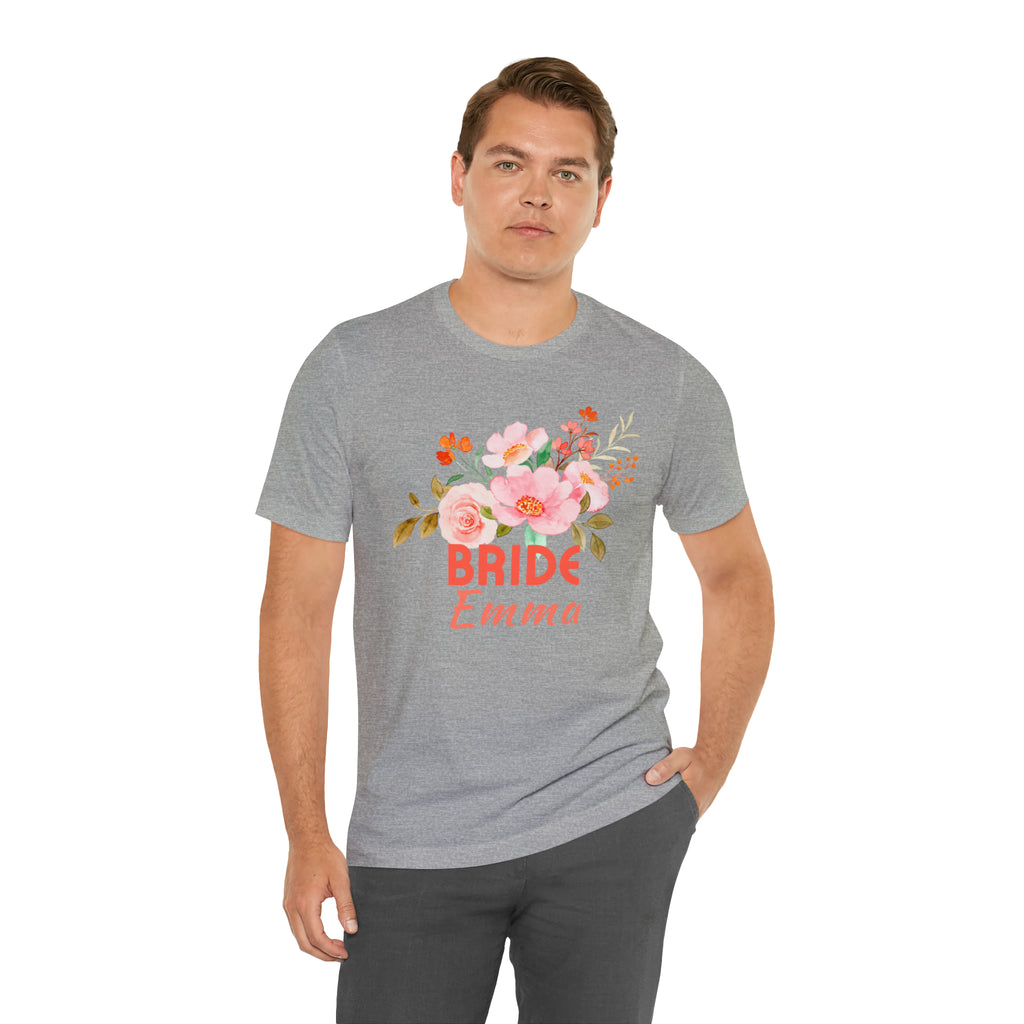 CUSTOM Bride Floral T-Shirt | Wedding Party Tee | Bella Canvas 3001 Unisex | Here Comes the Bride Short Sleeve Tshirt