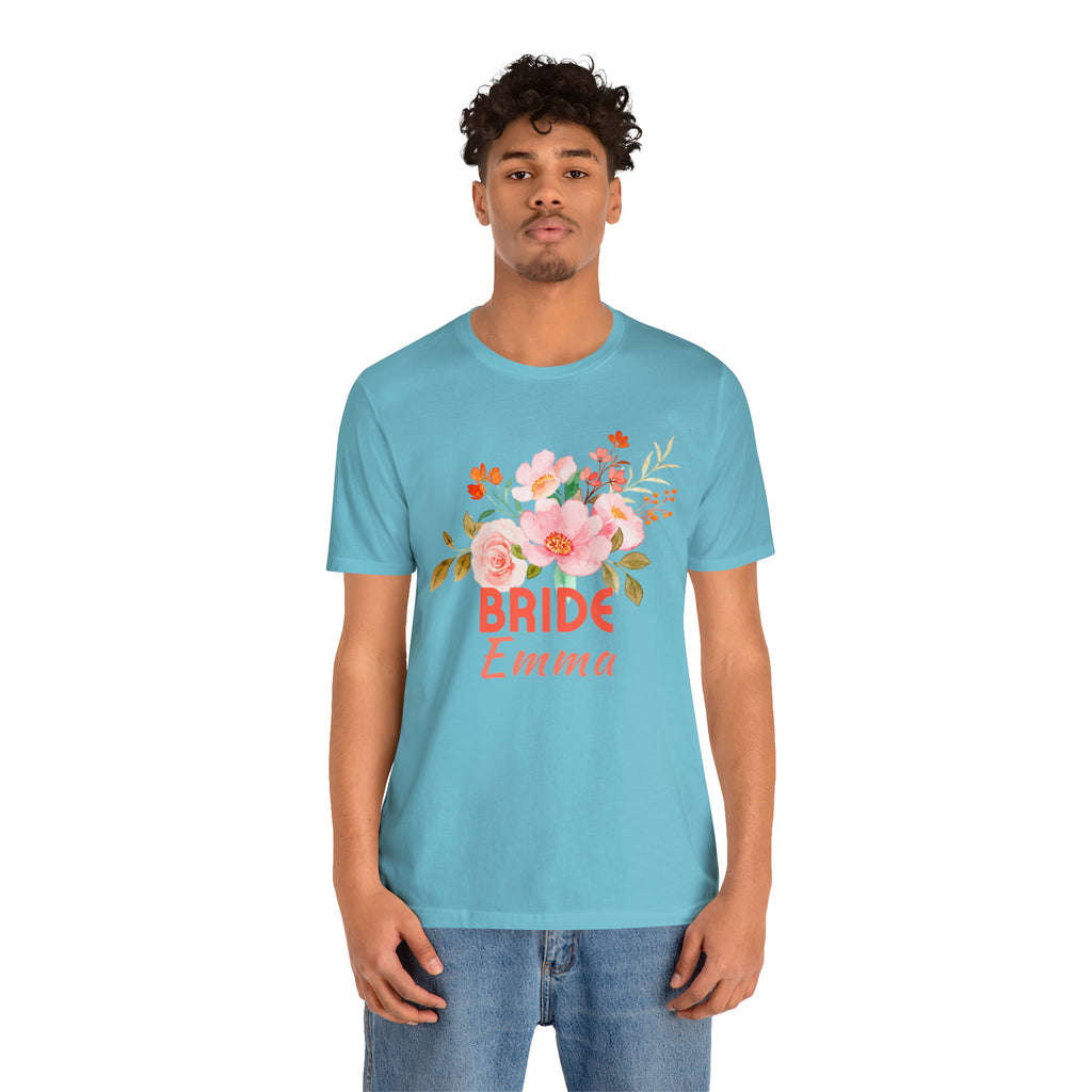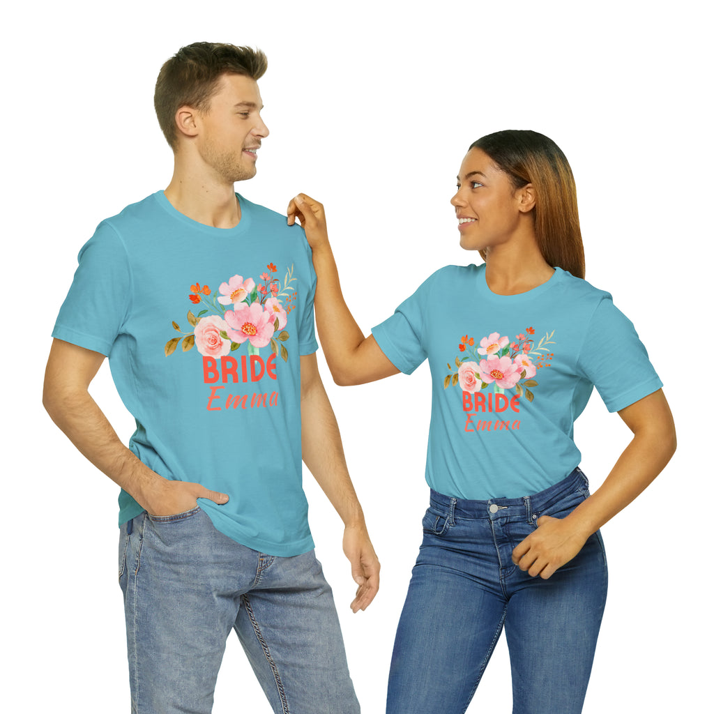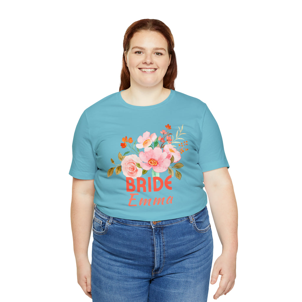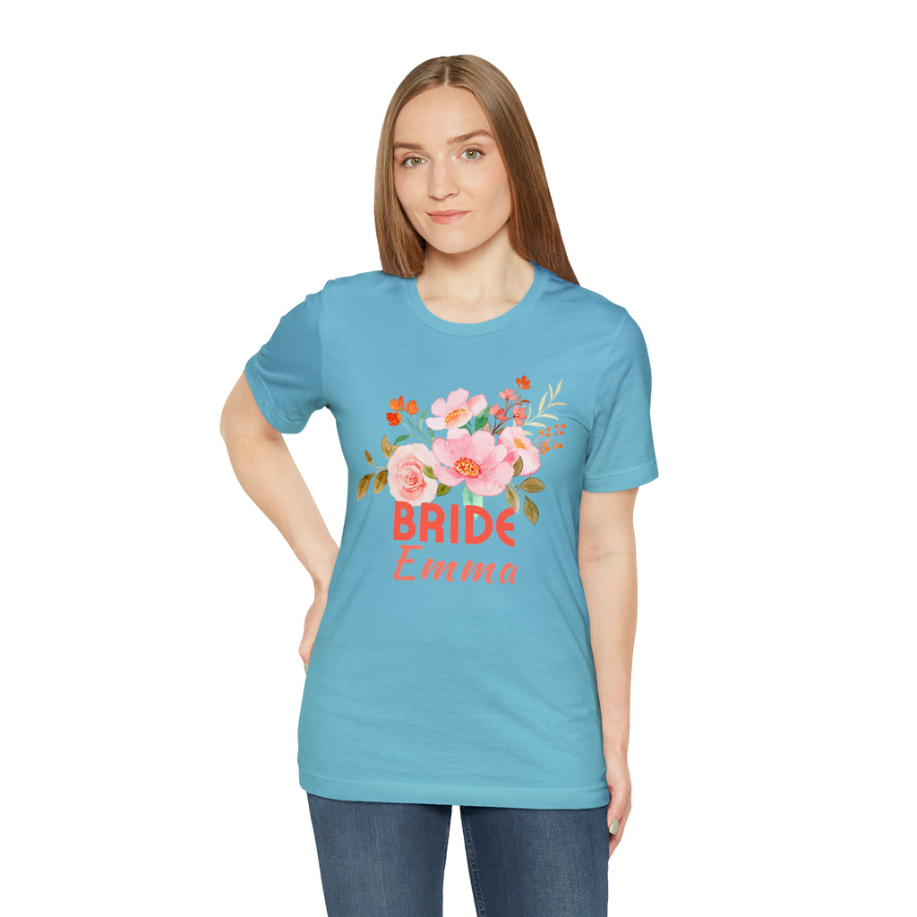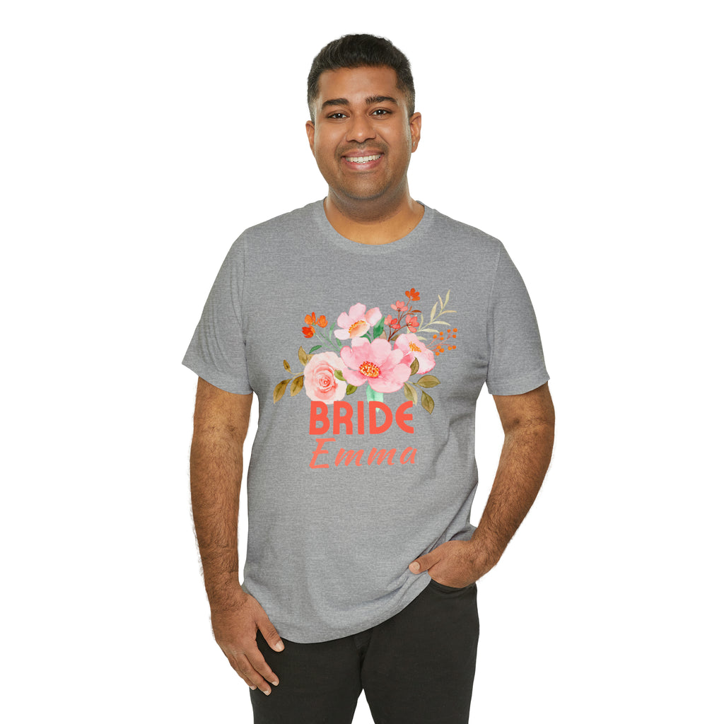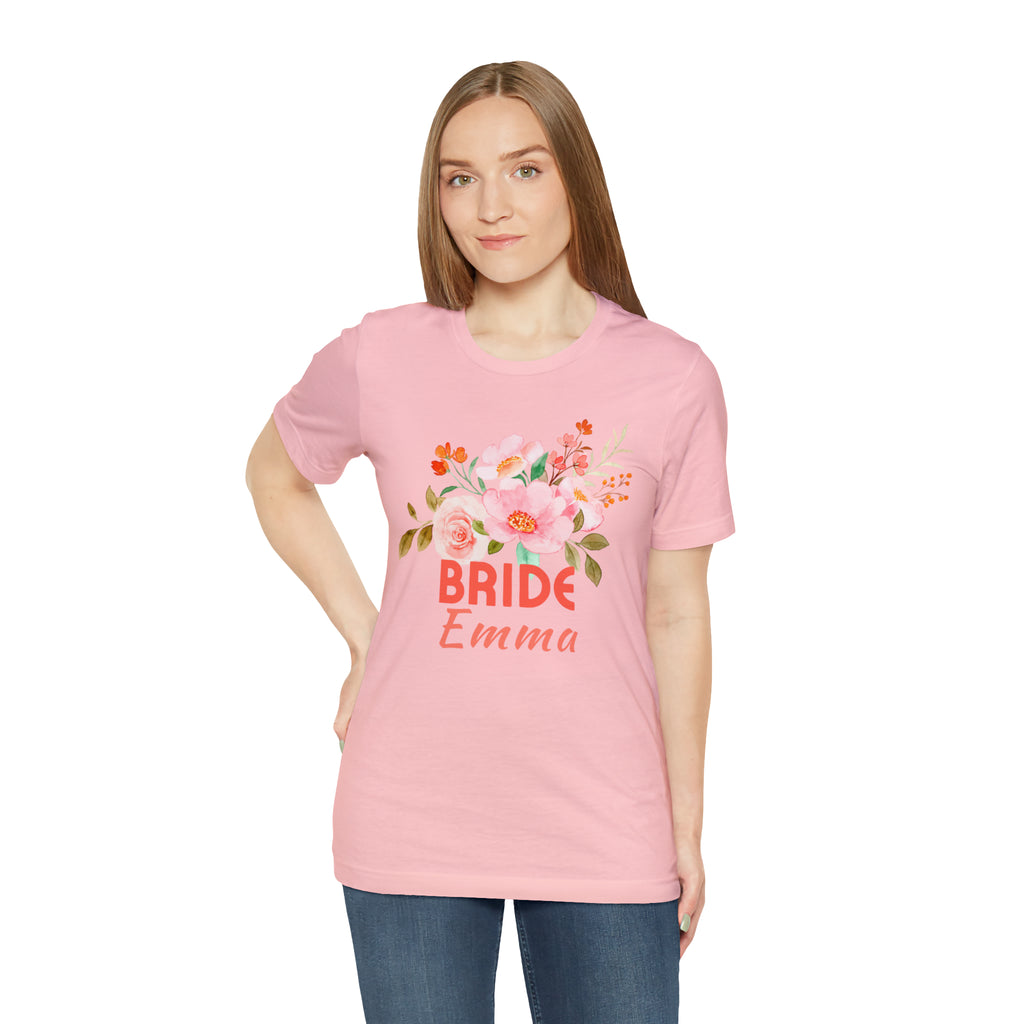 CUSTOM Bride Floral T-Shirt | Wedding Party Tee | Bella Canvas 3001 Unisex | Here Comes the Bride Short Sleeve Tshirt