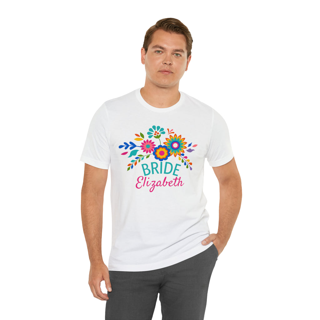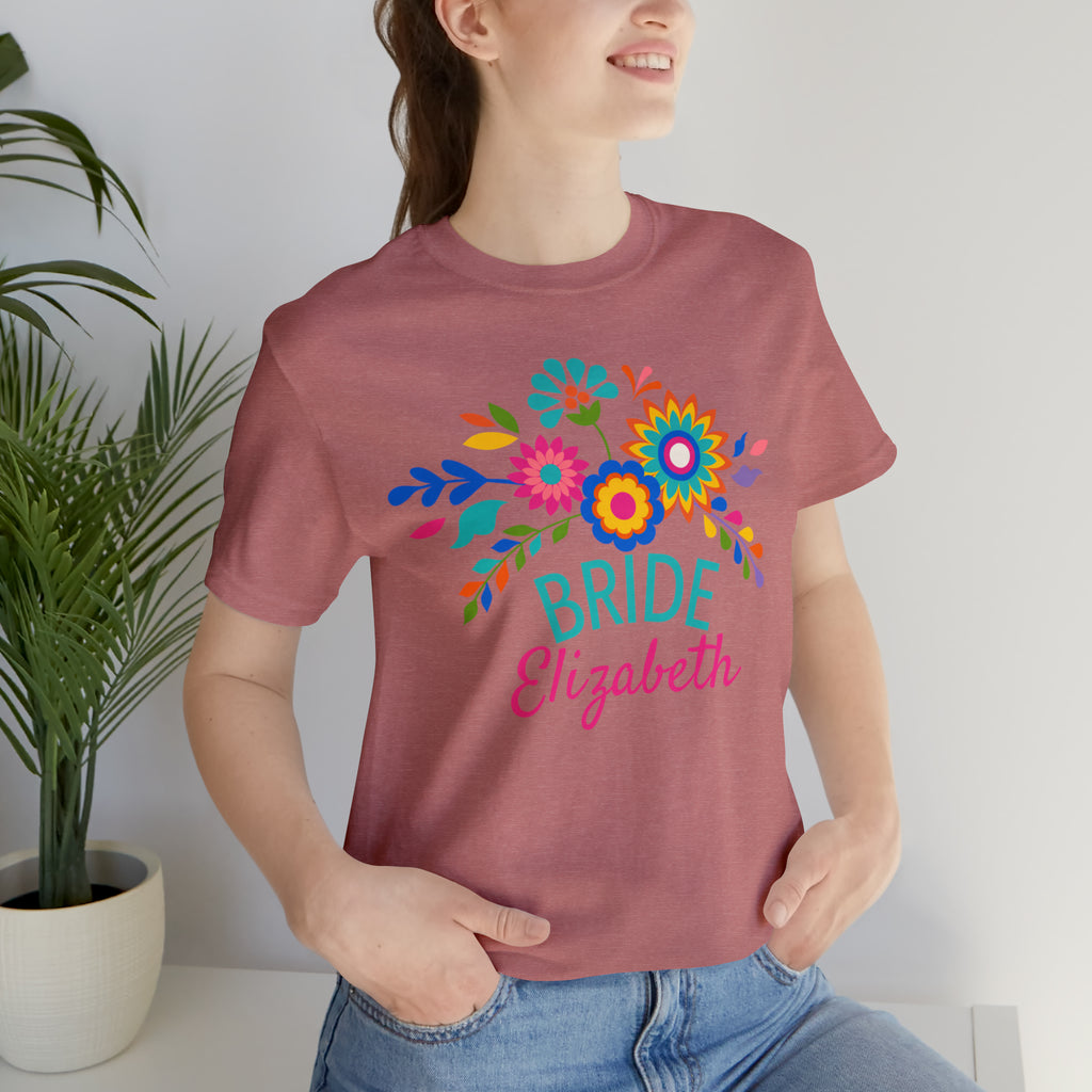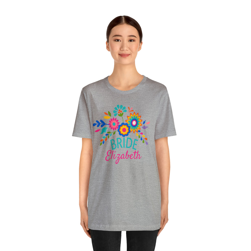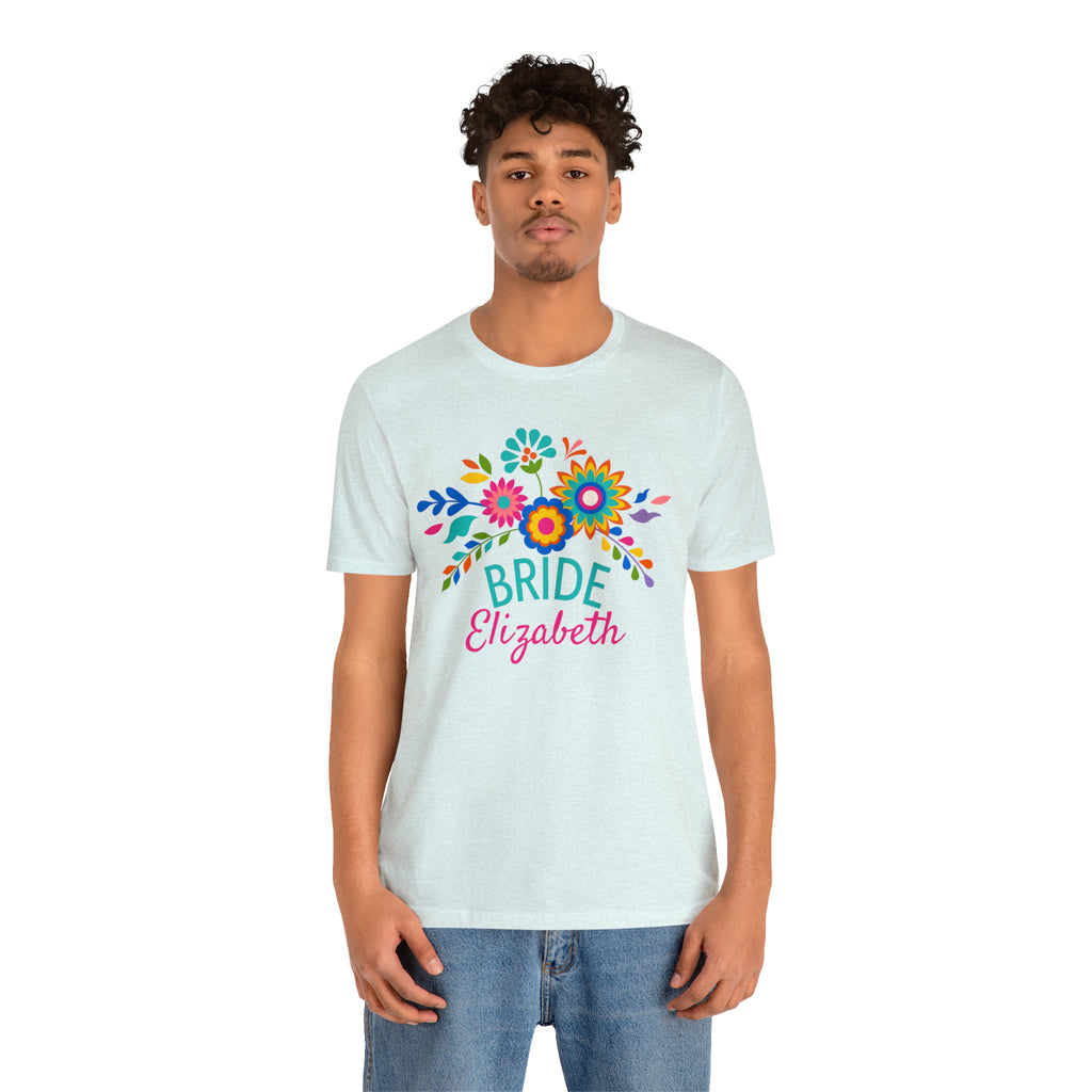 CUSTOM Bride Floral Wedding T-Shirt | Bridal Party Tee | Bella Canvas 3001 Unisex | Here Comes the Bride Short Sleeve Tshirt