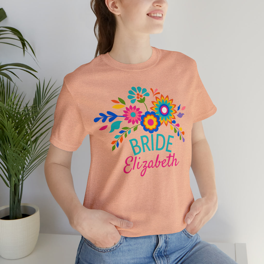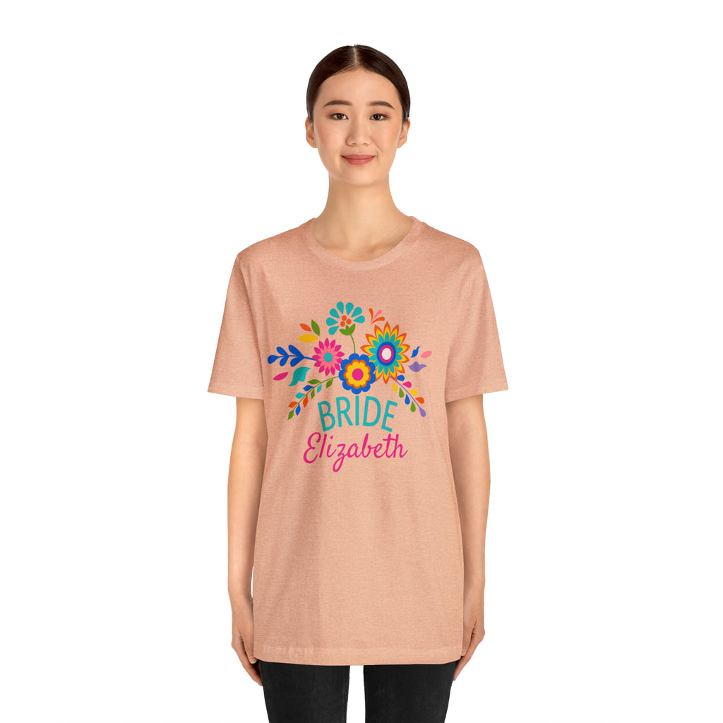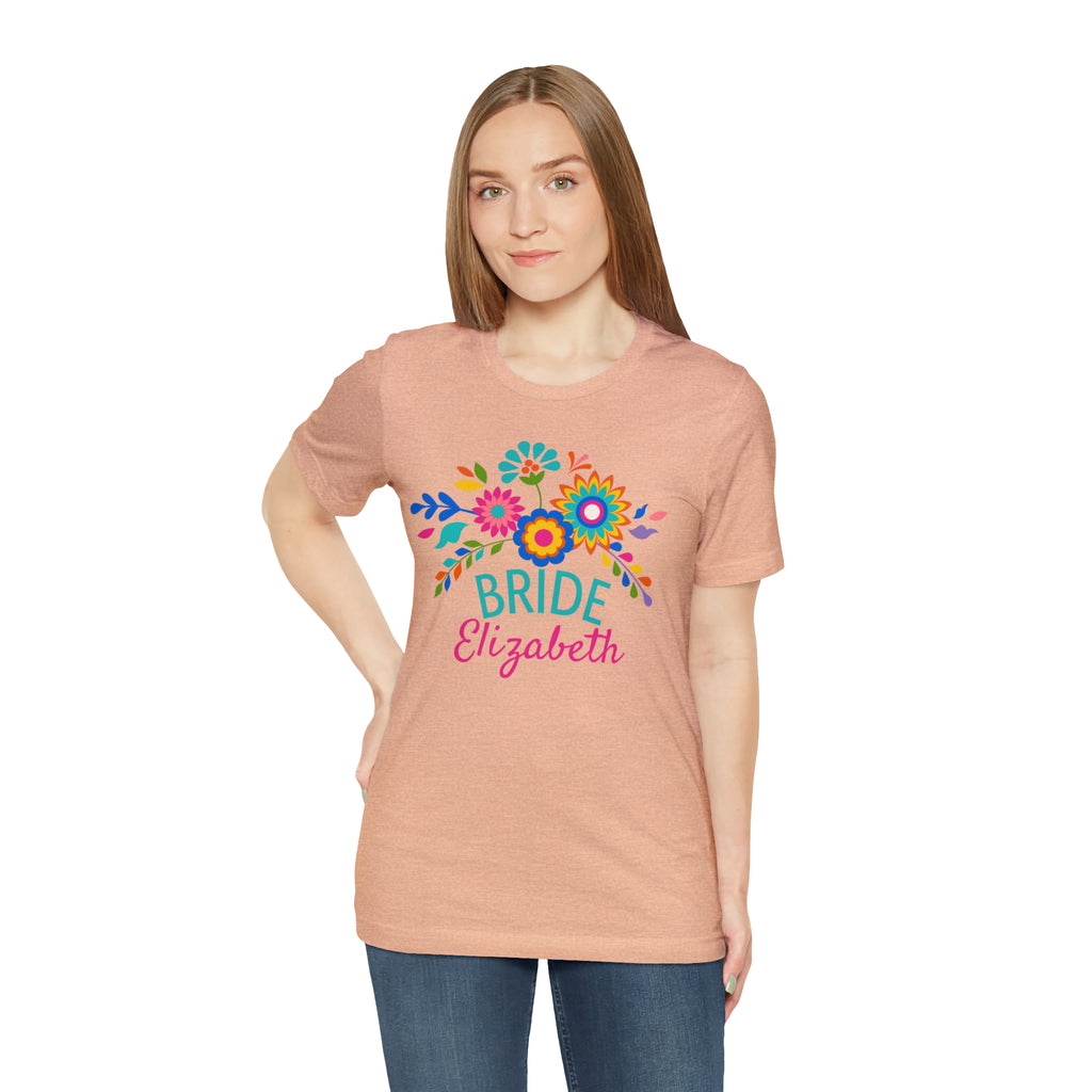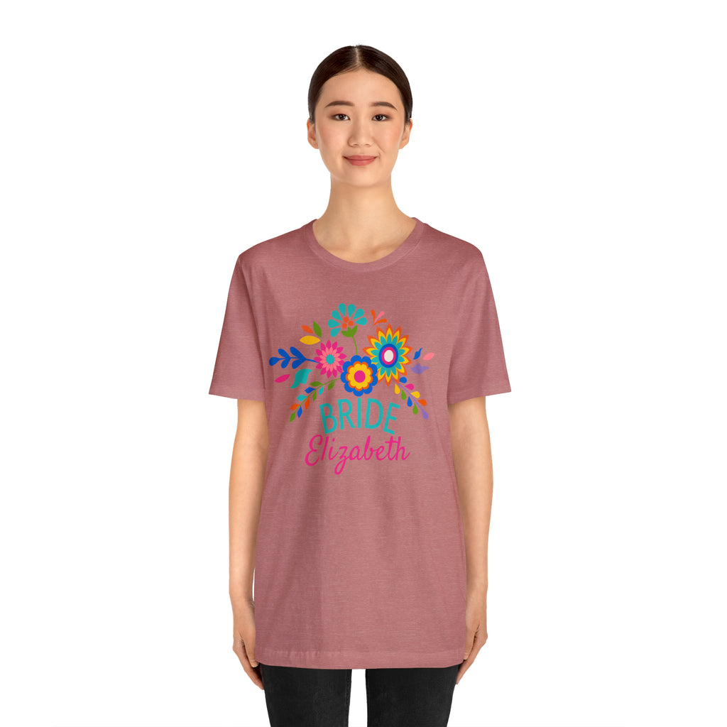 CUSTOM Bride Floral Wedding T-Shirt | Bridal Party Tee | Bella Canvas 3001 Unisex | Here Comes the Bride Short Sleeve Tshirt