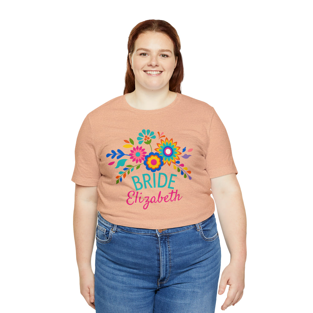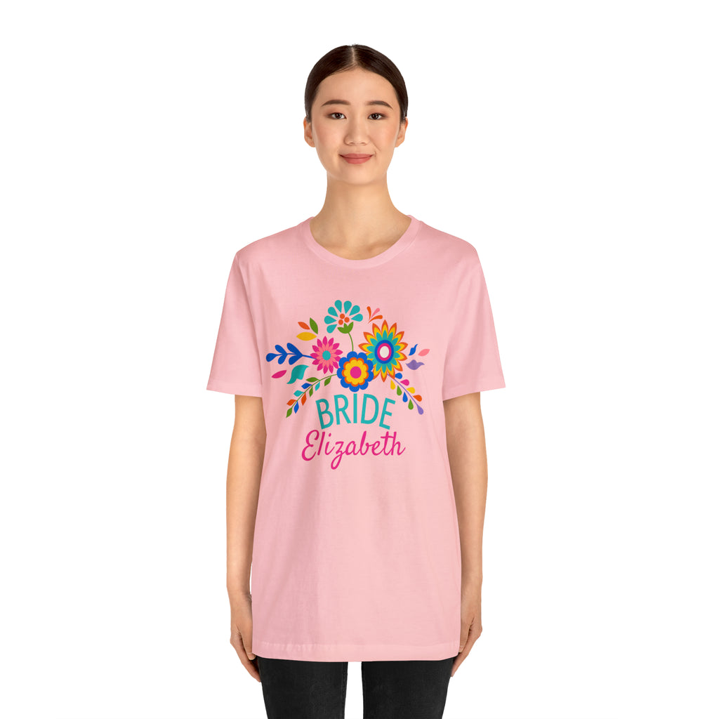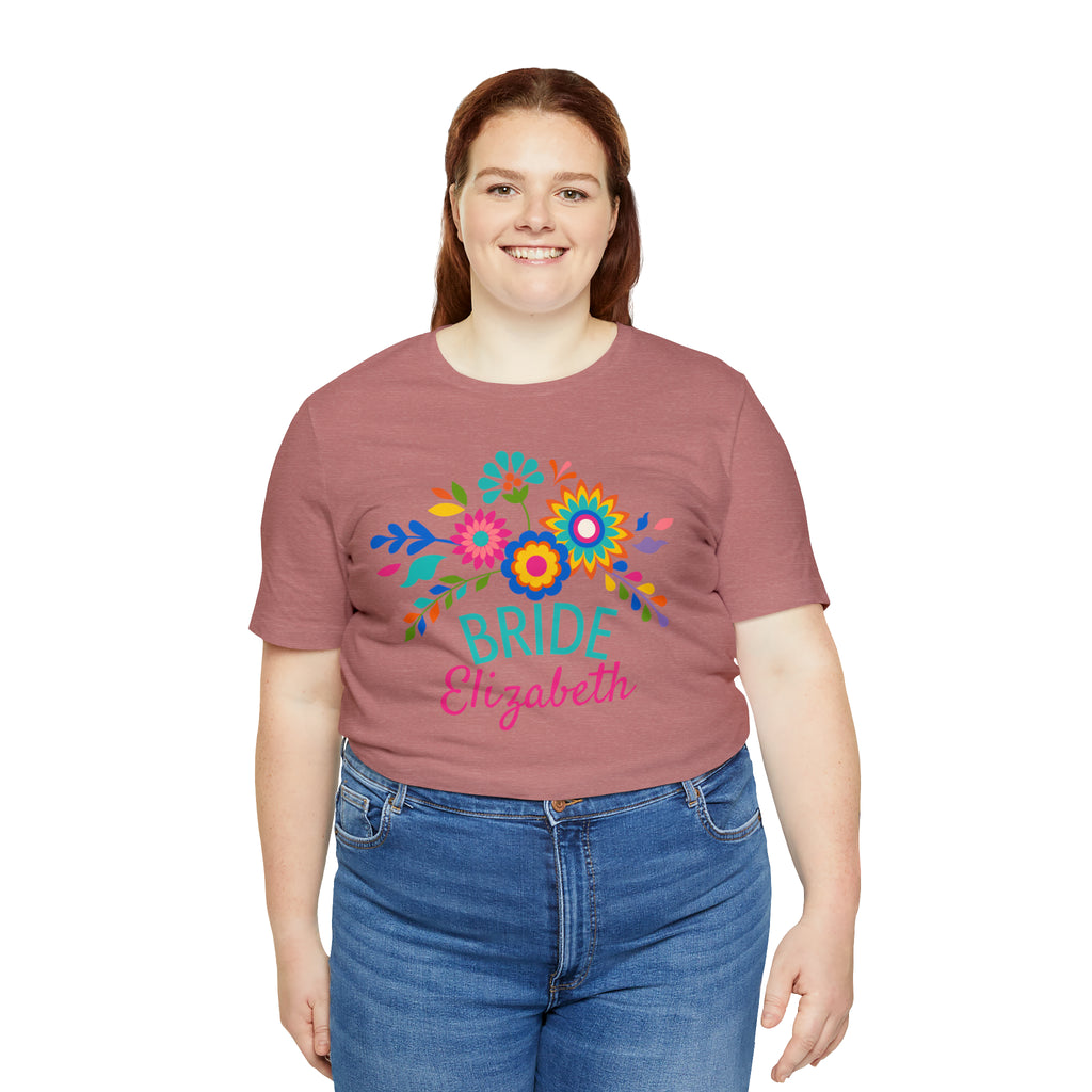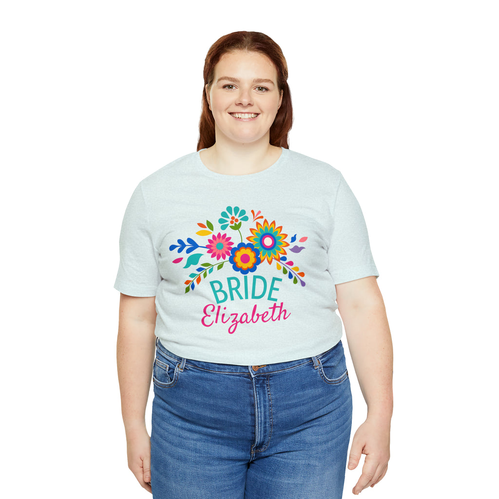 CUSTOM Bride Floral Wedding T-Shirt | Bridal Party Tee | Bella Canvas 3001 Unisex | Here Comes the Bride Short Sleeve Tshirt