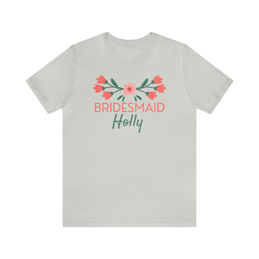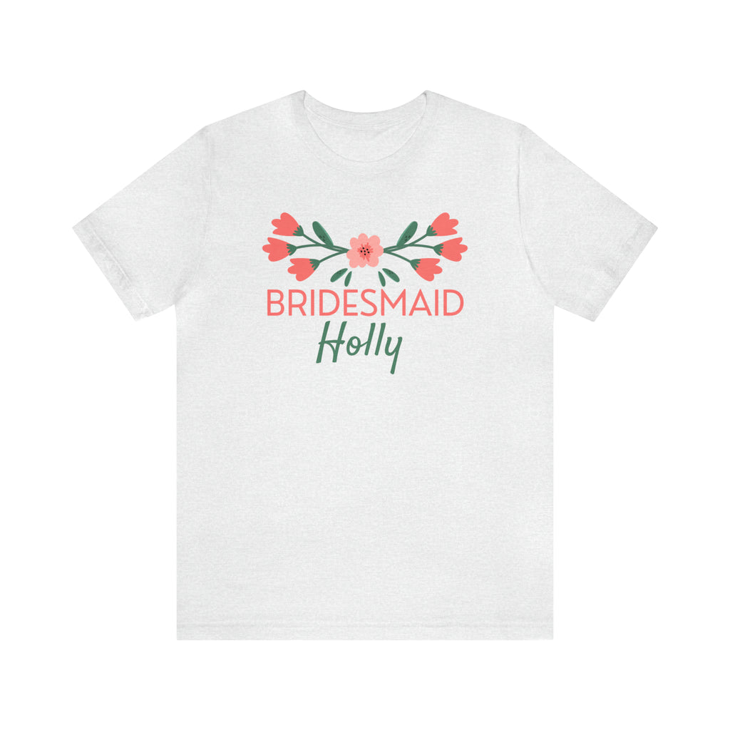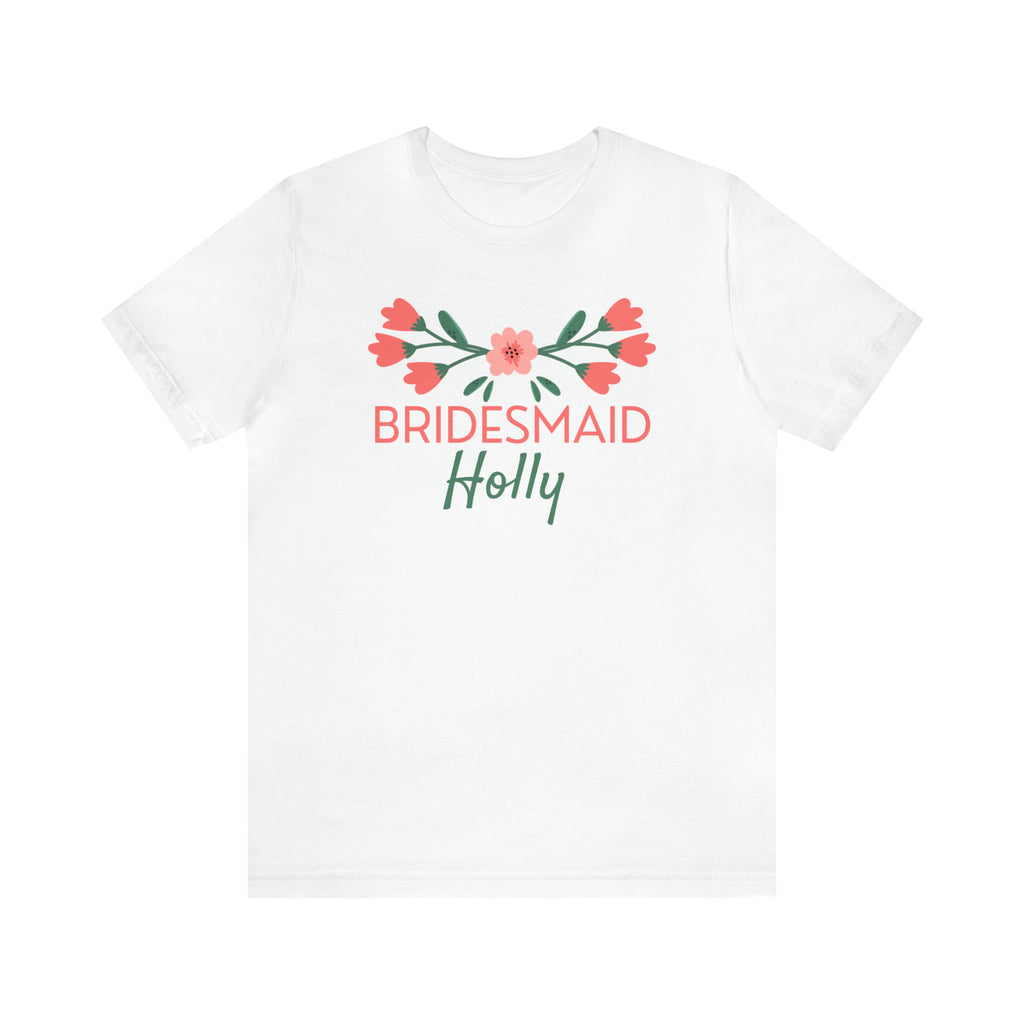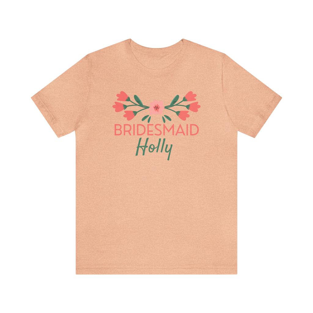 CUSTOM Bridesmaid Bridal Crew T-Shirt | Pink and Peach Flower Tee | Bella Canvas 3001 Unisex | Wedding Party Short Sleeve Tshirt