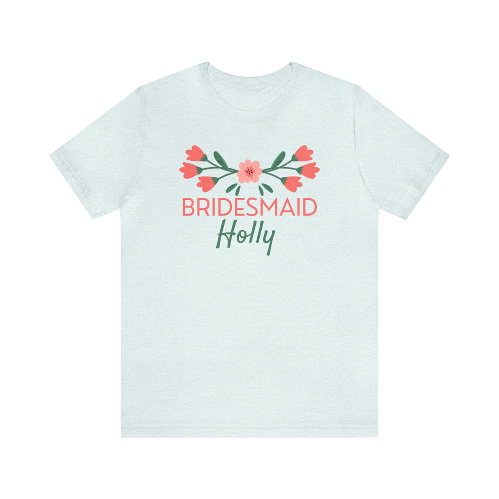 Elevate your bridal party's look and celebrate your special day with our custom-made t-shirt. Order now to add a touch of personalization and elegance to your wedding festivities, making them even more memorable for you and your beloved bridesmaids.