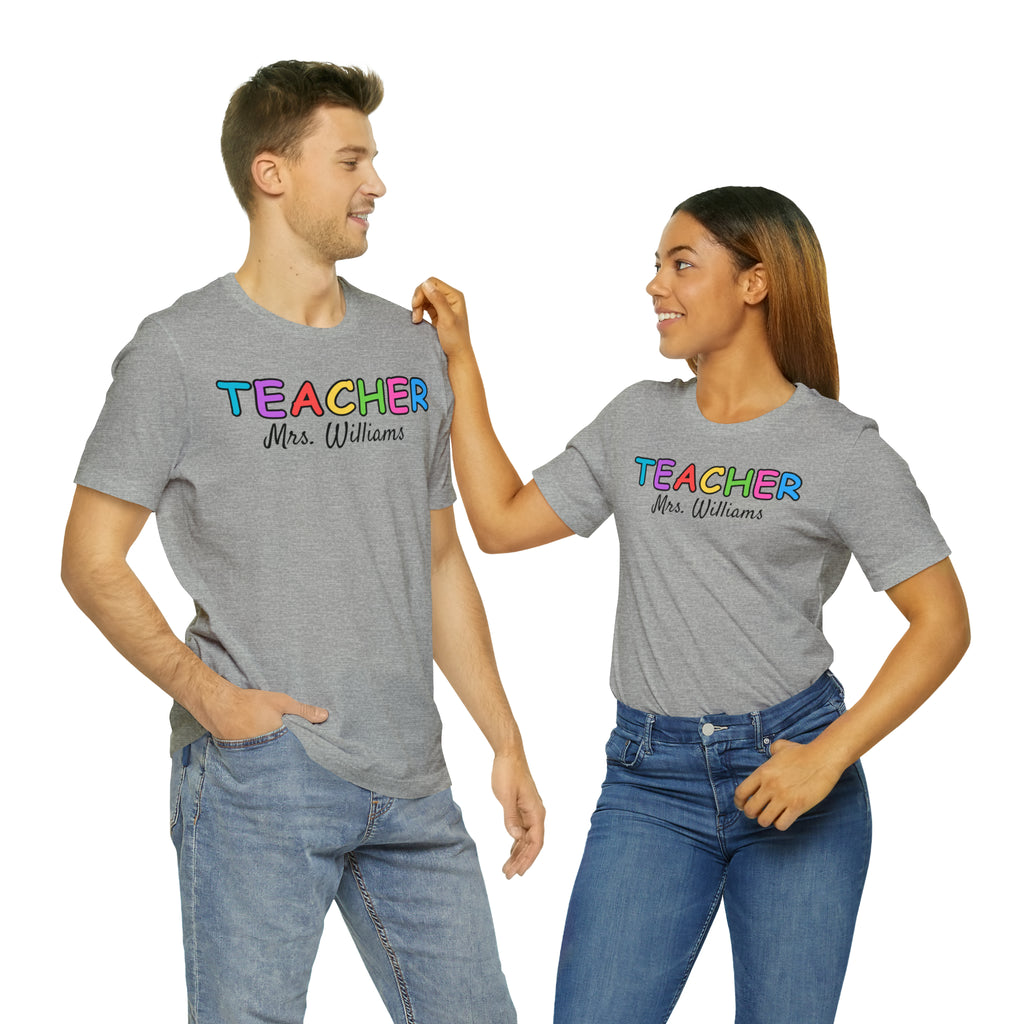 CUSTOM Teacher Personalized T-Shirt | Teacher's Name Tee | Bella Canvas 3001 Unisex | First Day of School Short Sleeve Tshirt