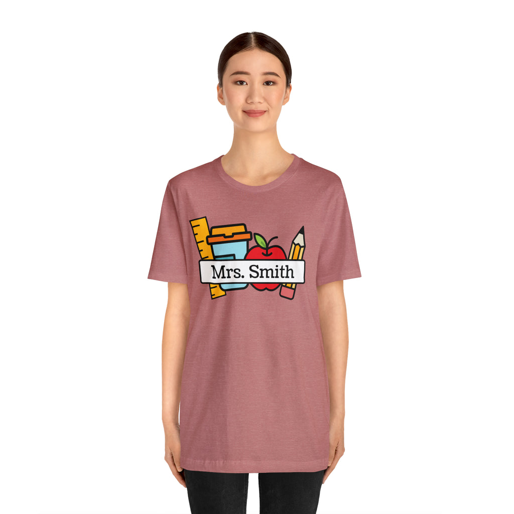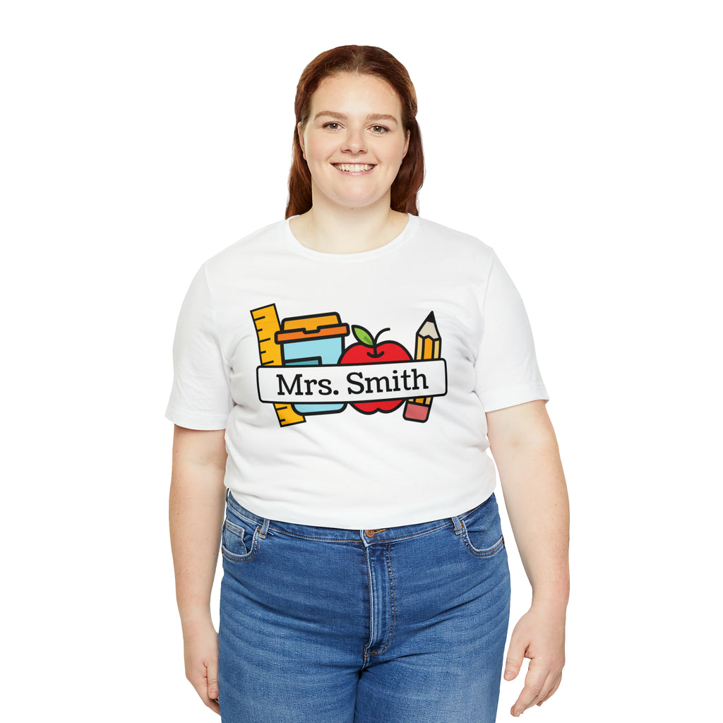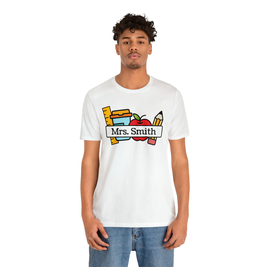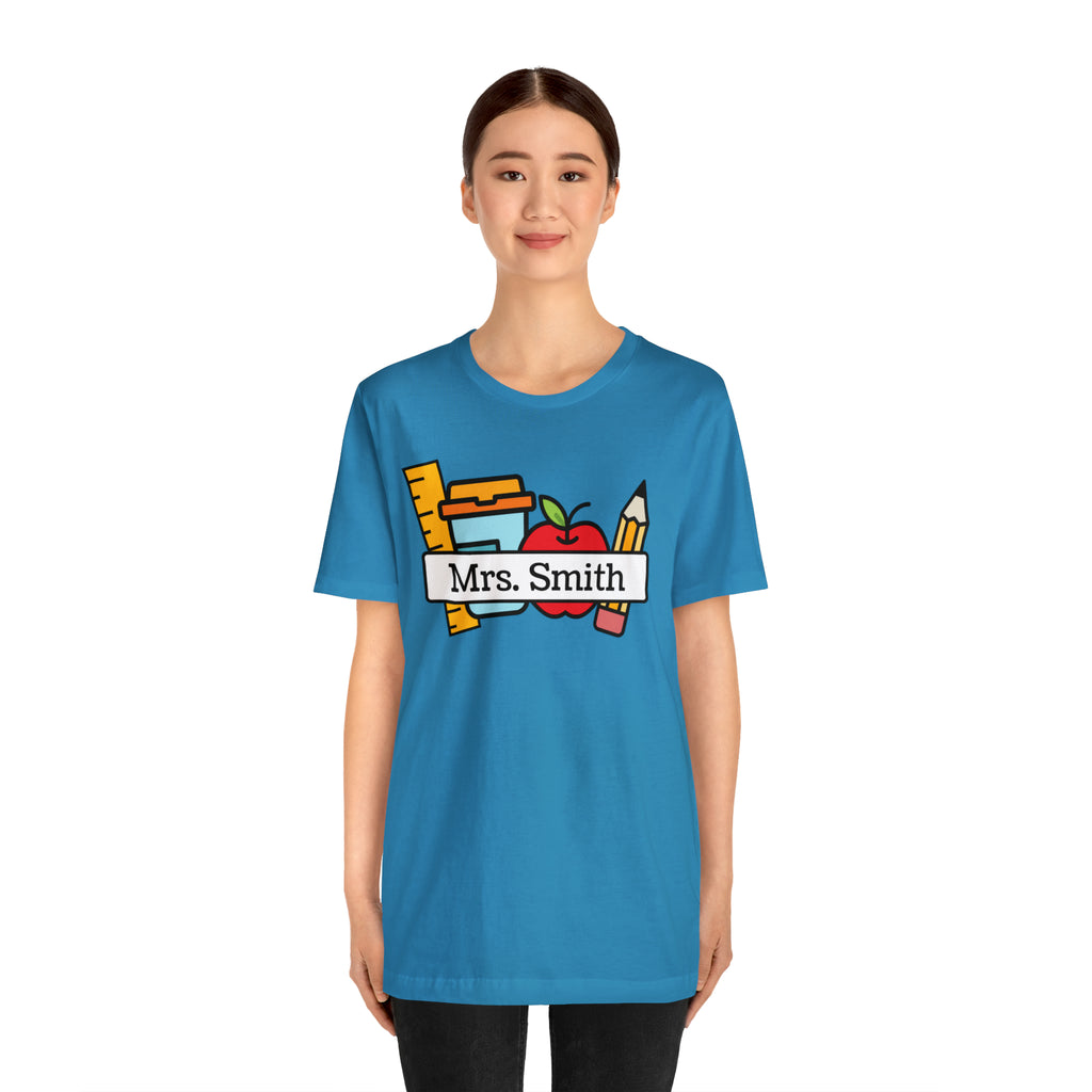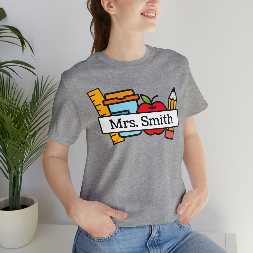 CUSTOM Teacher Personalized T-Shirt | Teacher's School Supplies Tee | Bella Canvas 3001 Unisex | School Days Short Sleeve Tshirt
