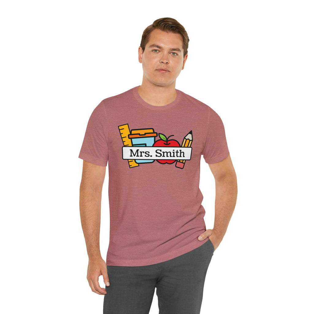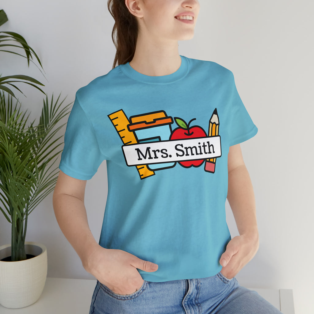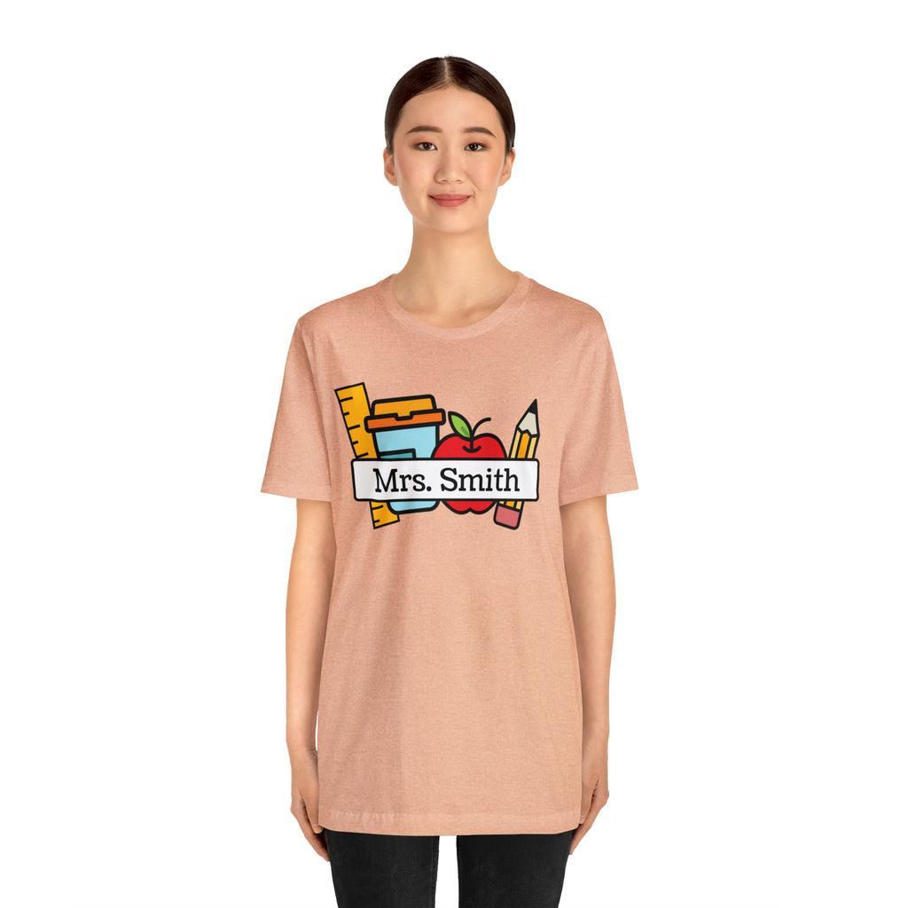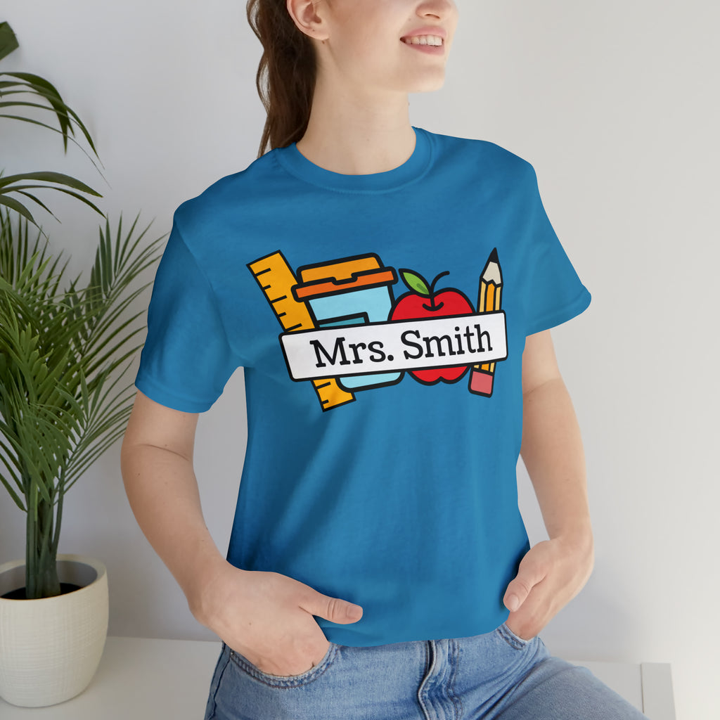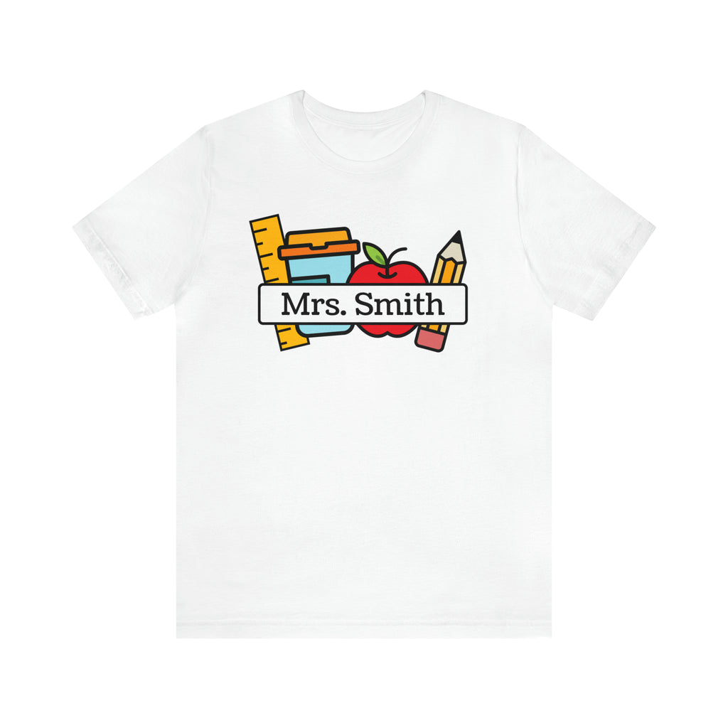 CUSTOM Teacher Personalized T-Shirt | Teacher's School Supplies Tee | Bella Canvas 3001 Unisex | School Days Short Sleeve Tshirt
