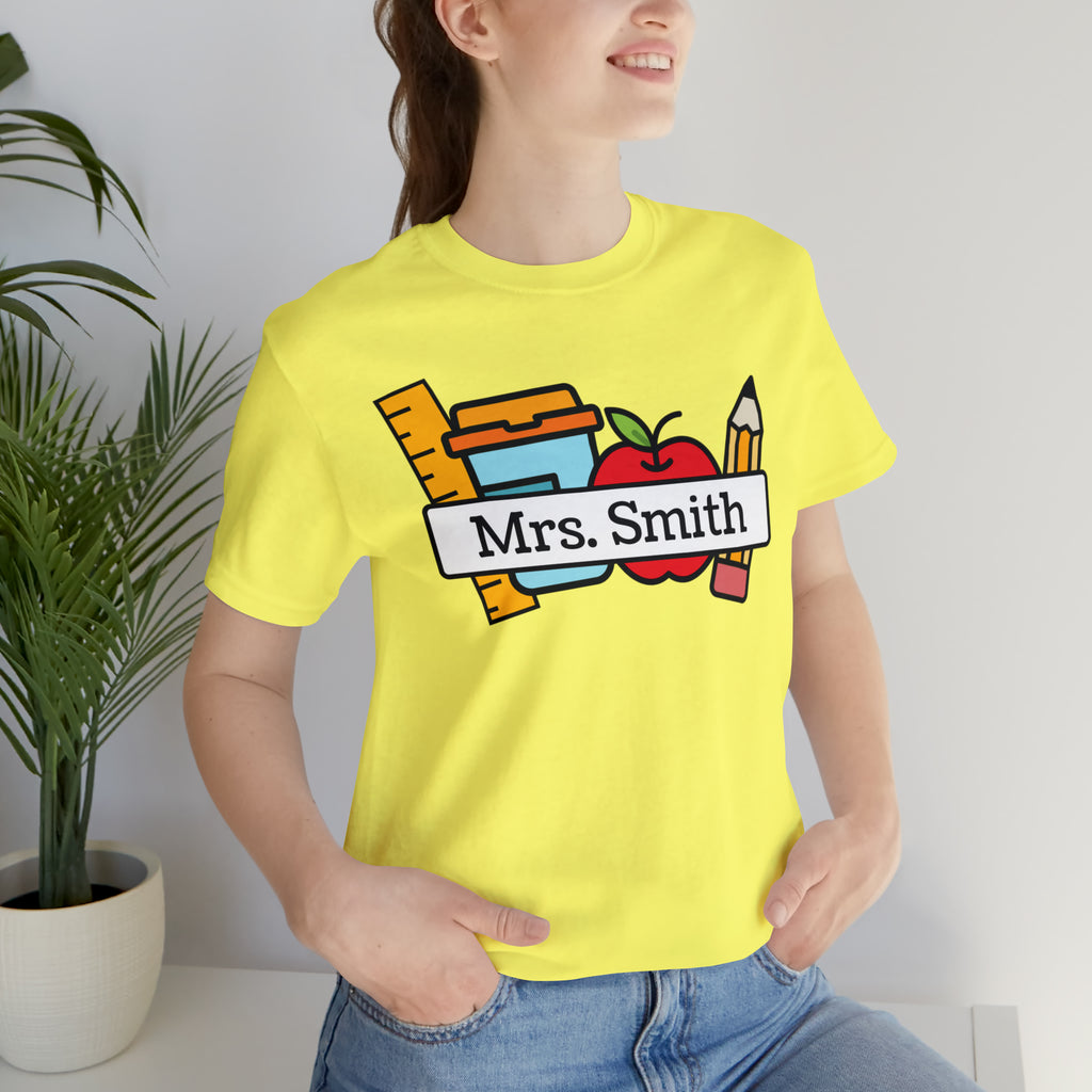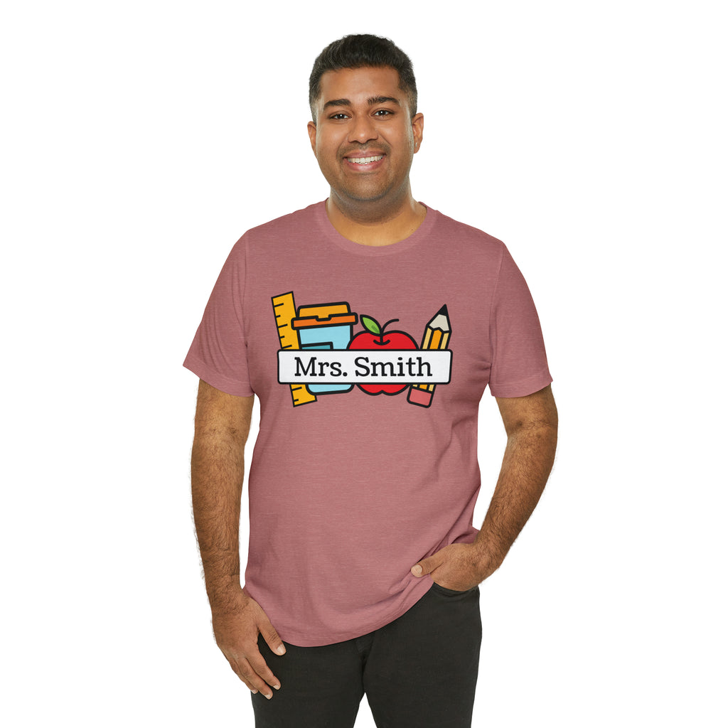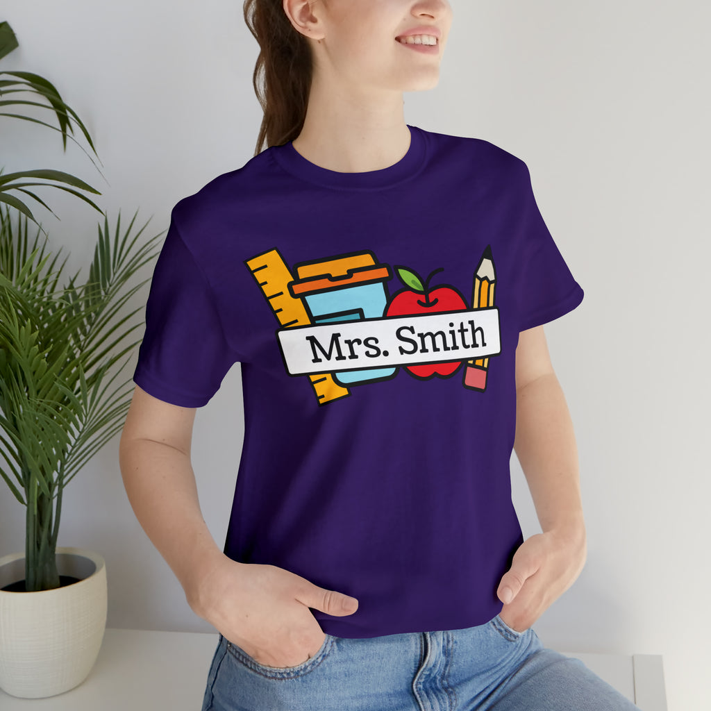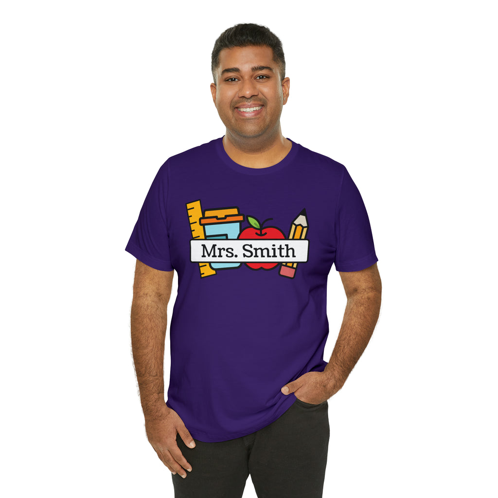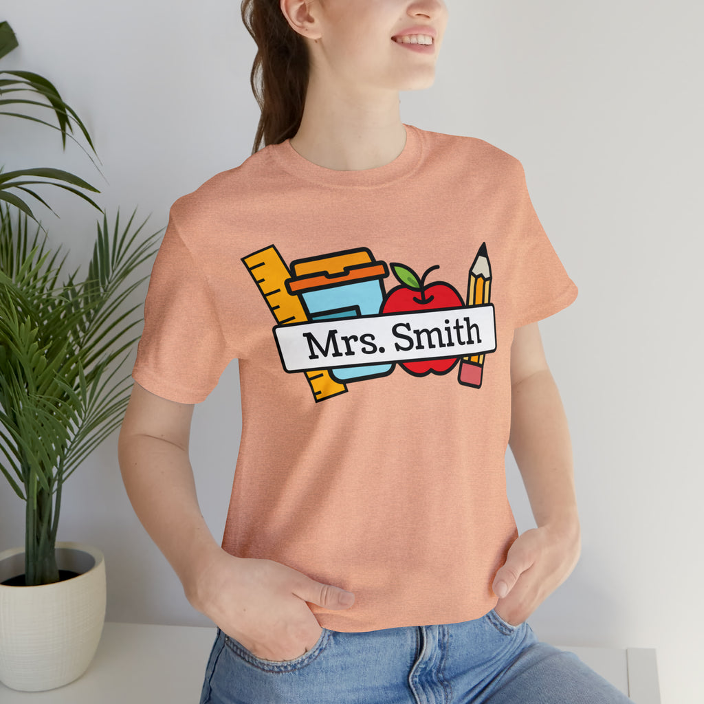 CUSTOM Teacher Personalized T-Shirt | Teacher's School Supplies Tee | Bella Canvas 3001 Unisex | School Days Short Sleeve Tshirt