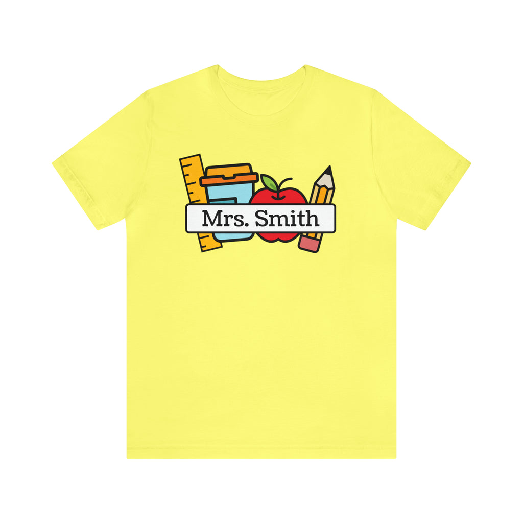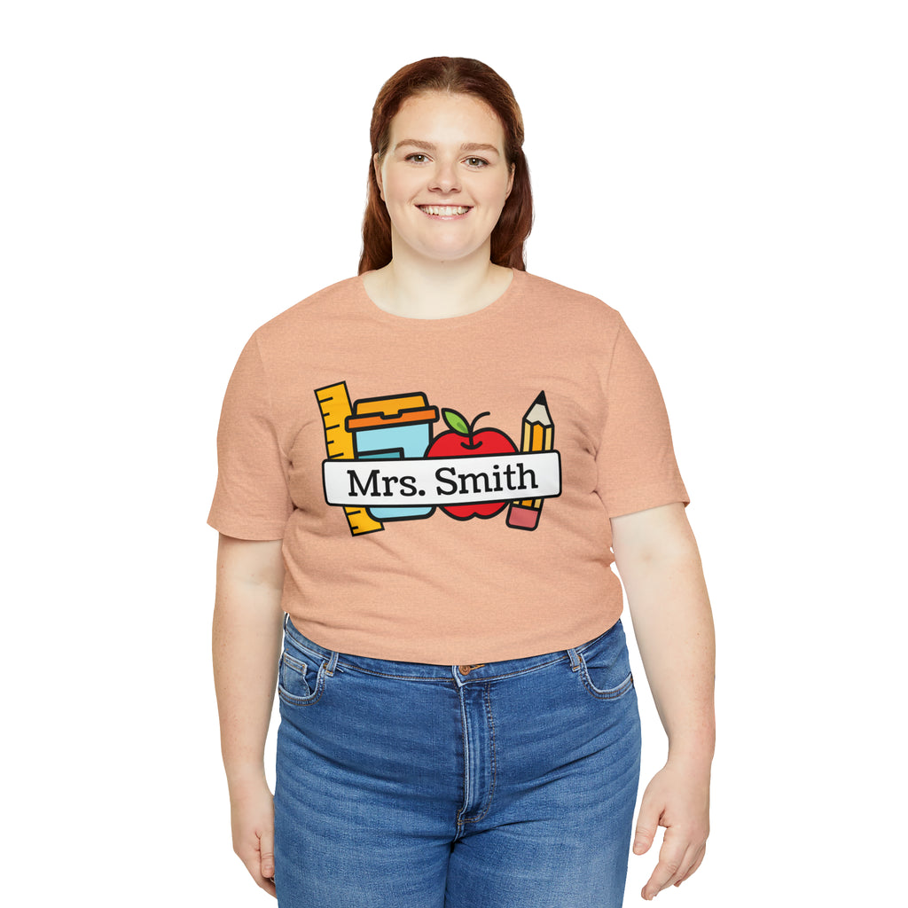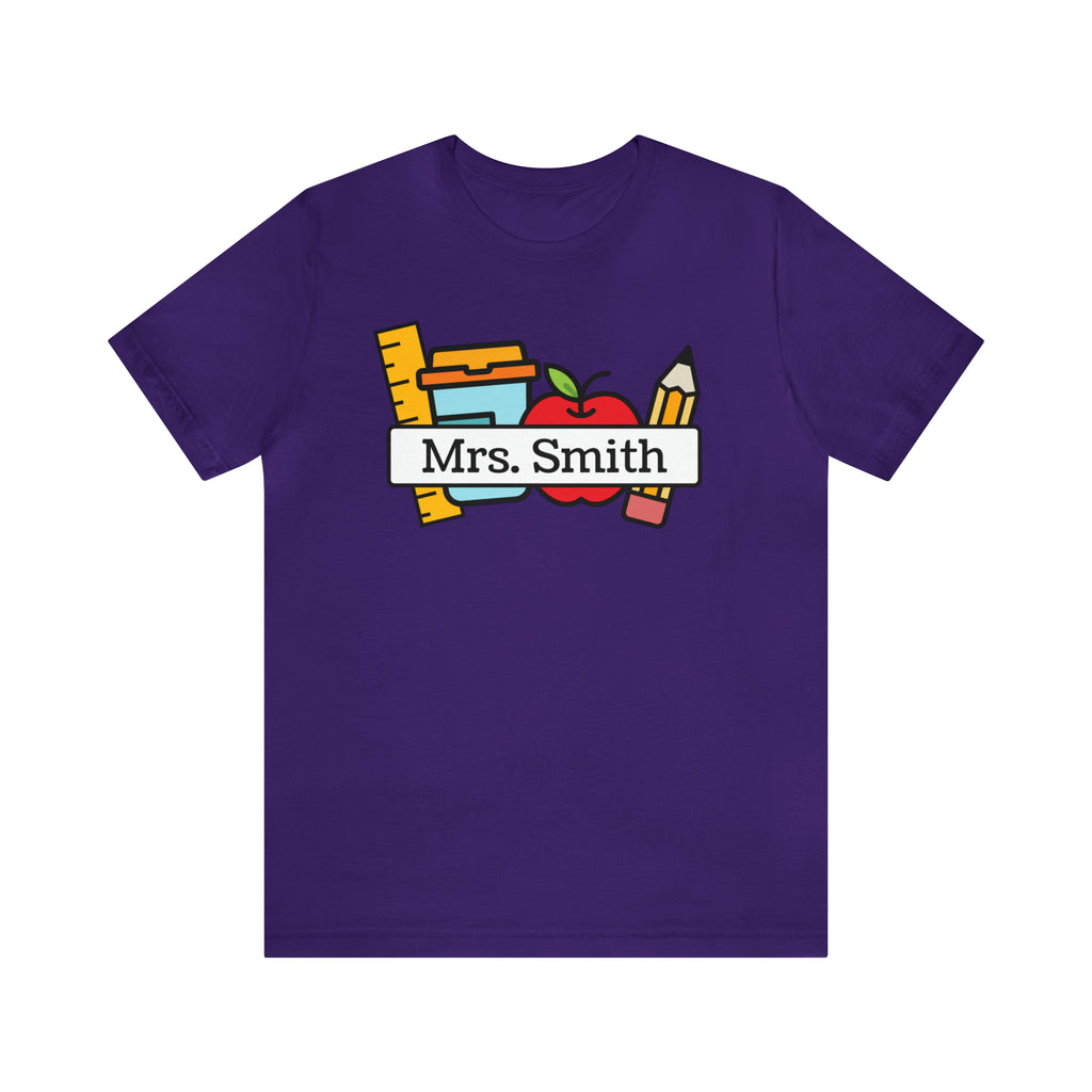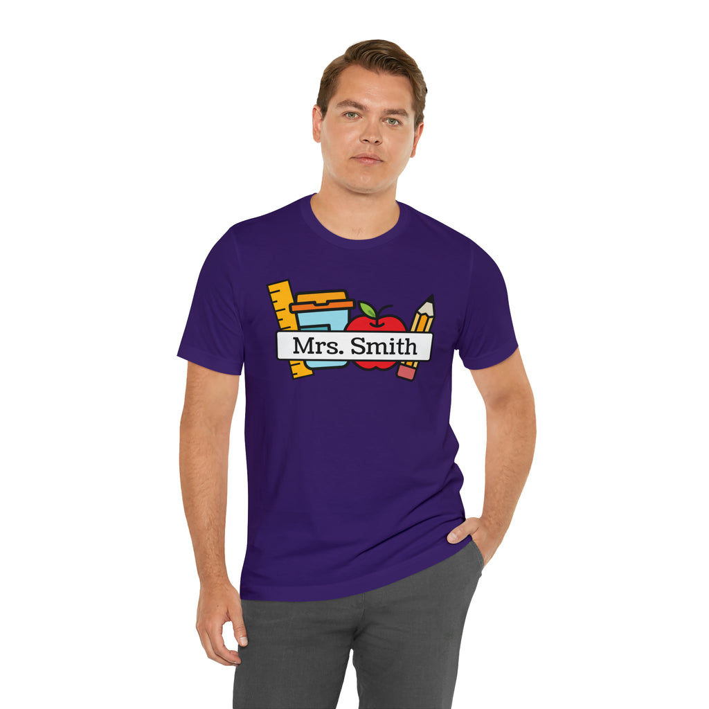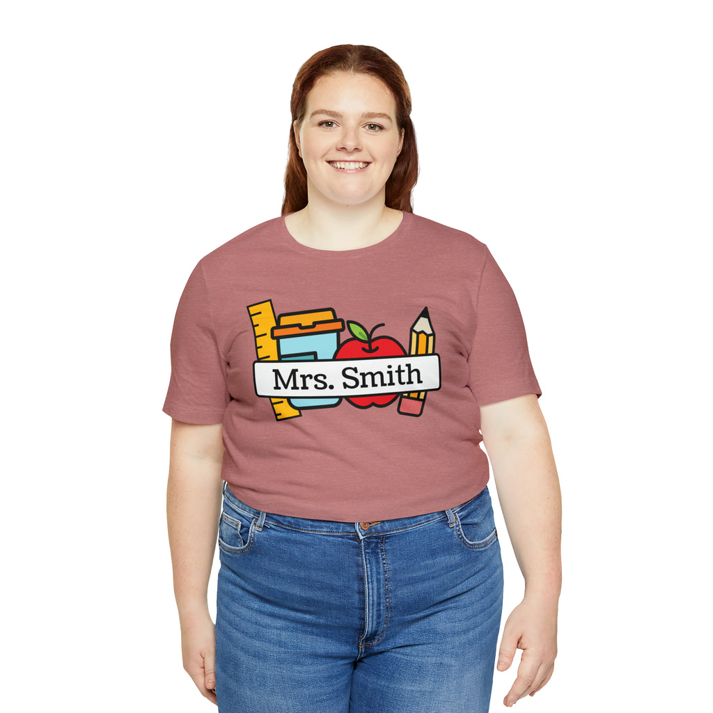 CUSTOM Teacher Personalized T-Shirt | Teacher's School Supplies Tee | Bella Canvas 3001 Unisex | School Days Short Sleeve Tshirt