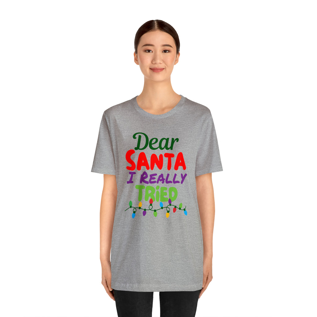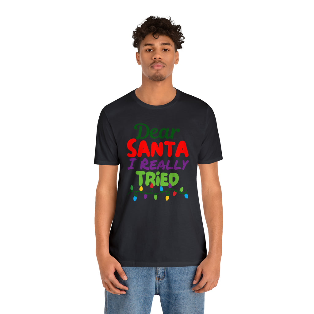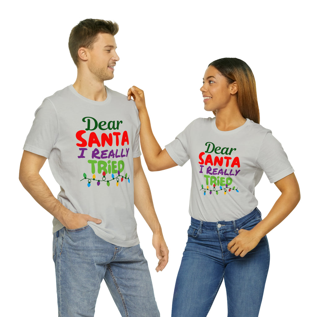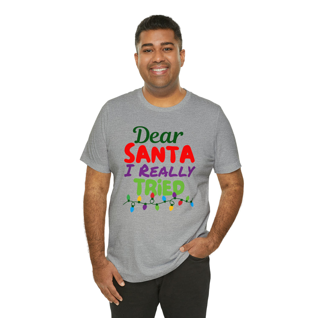 Dear Santa I Really Tried Christmas T-Shirt | Funny XMas Tee | Bella Canvas 3001 Unisex | Happy Holidays Short Sleeve T-shirt