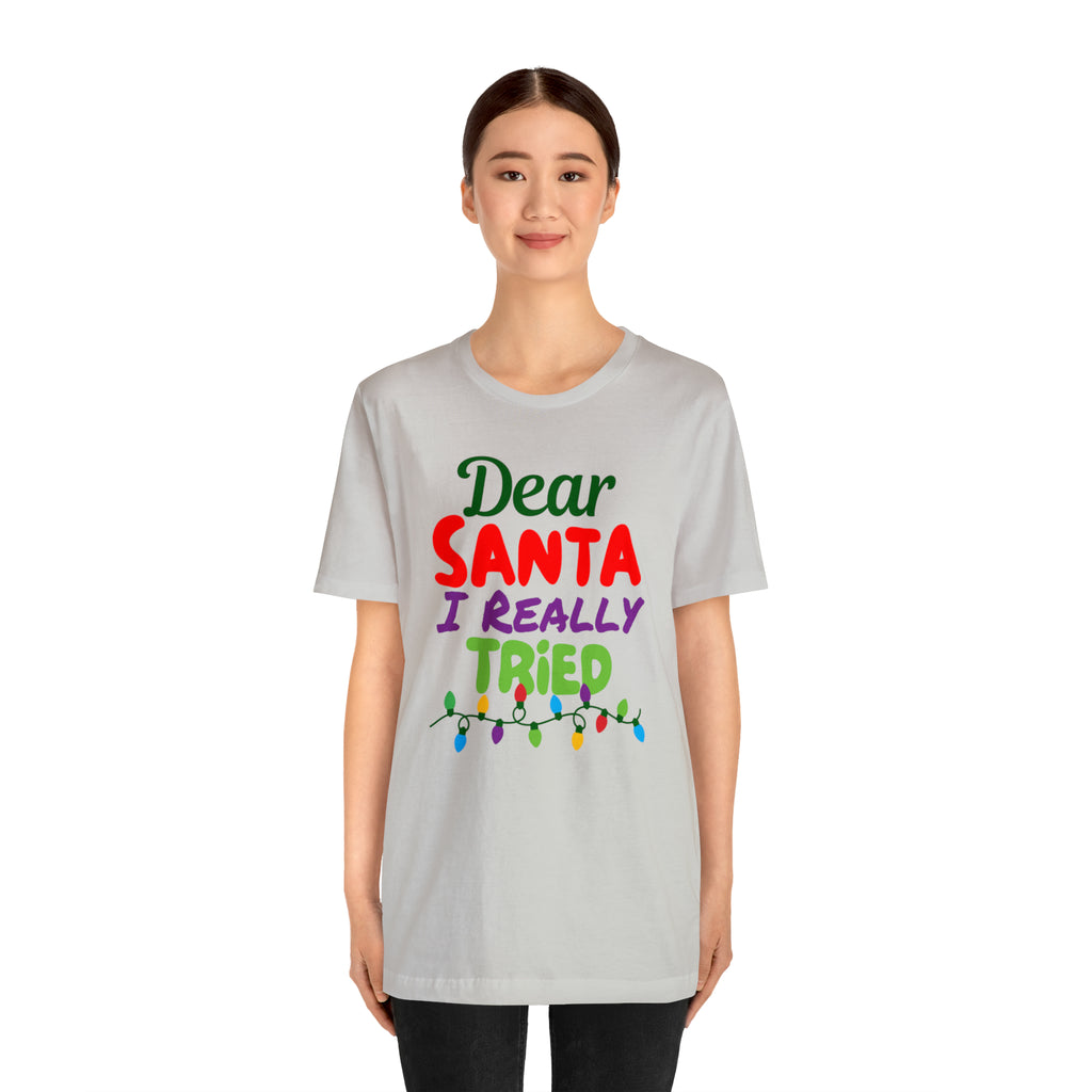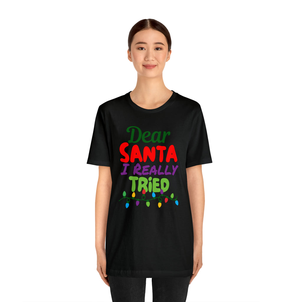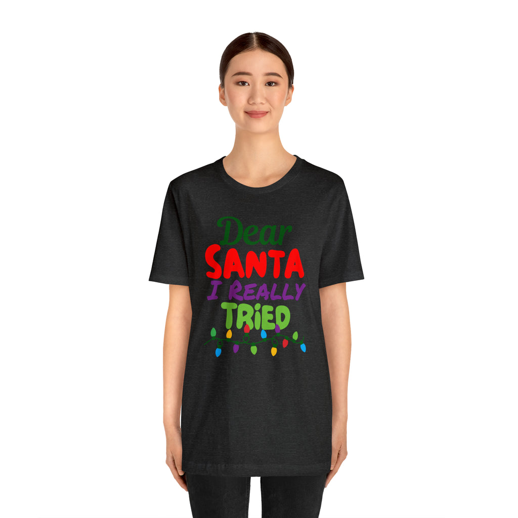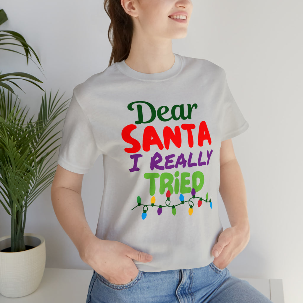 Dear Santa I Really Tried Christmas T-Shirt | Funny XMas Tee | Bella Canvas 3001 Unisex | Happy Holidays Short Sleeve T-shirt