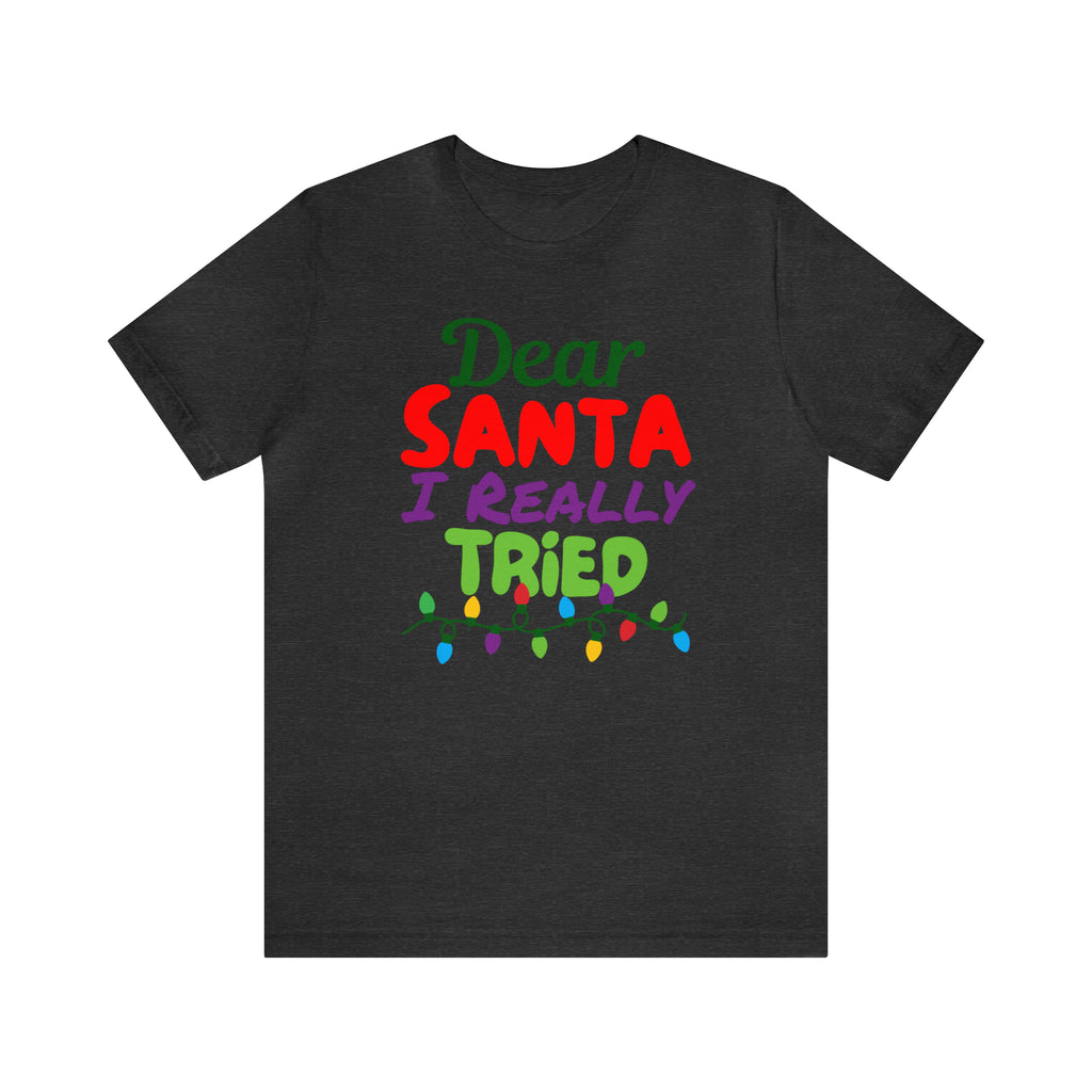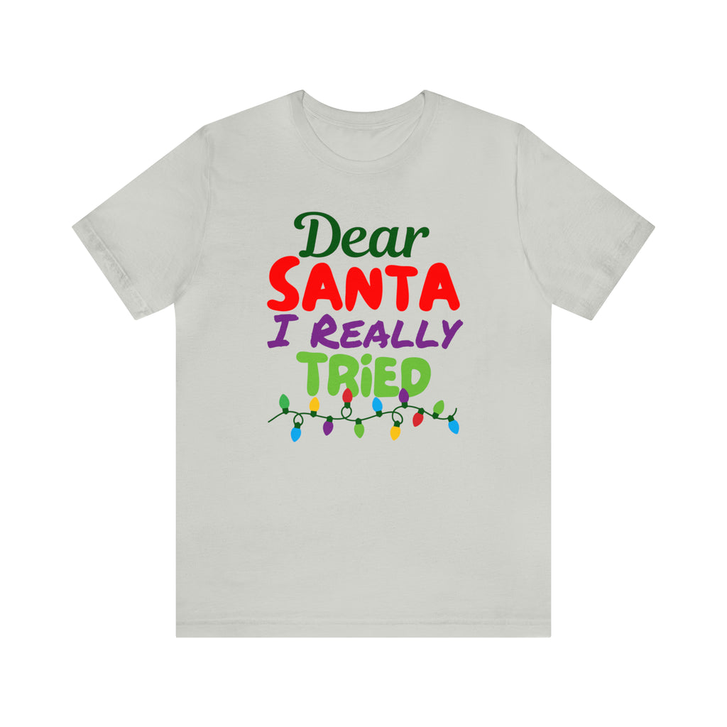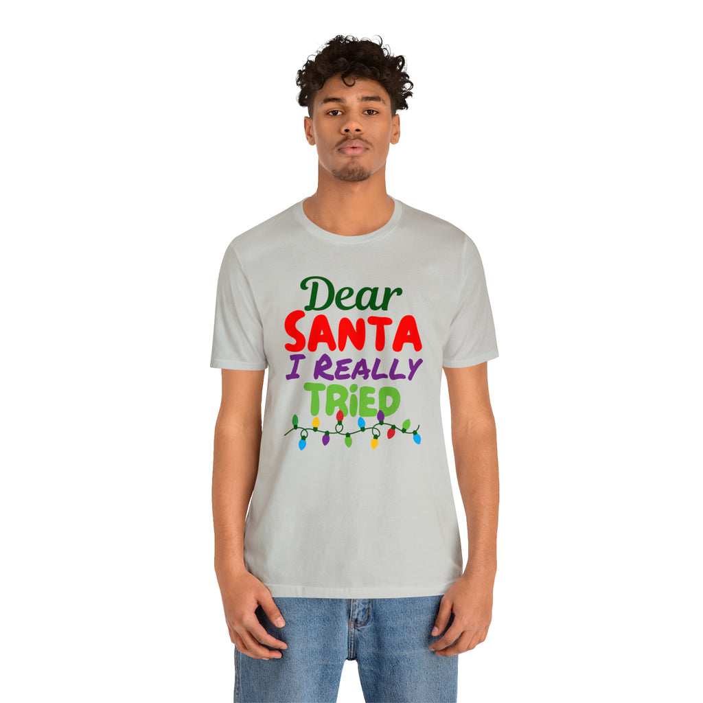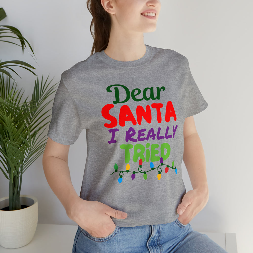 Dear Santa I Really Tried Christmas T-Shirt | Funny XMas Tee | Bella Canvas 3001 Unisex | Happy Holidays Short Sleeve T-shirt