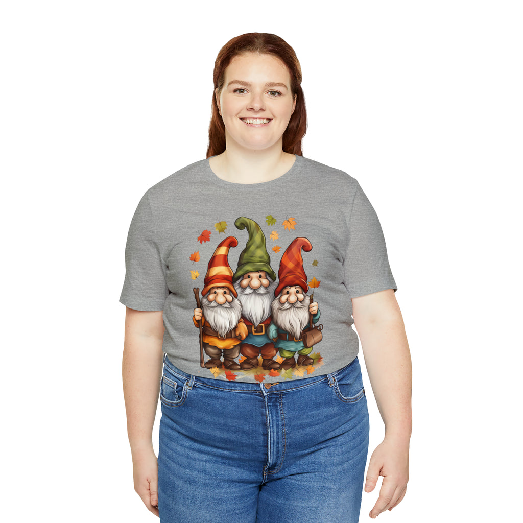 Show off your love for fall and these delightful gnomes with this cheerful T-shirt. It's also a thoughtful and stylish gift for friends and family, capturing the essence of gratitude and joy during this special time of year.