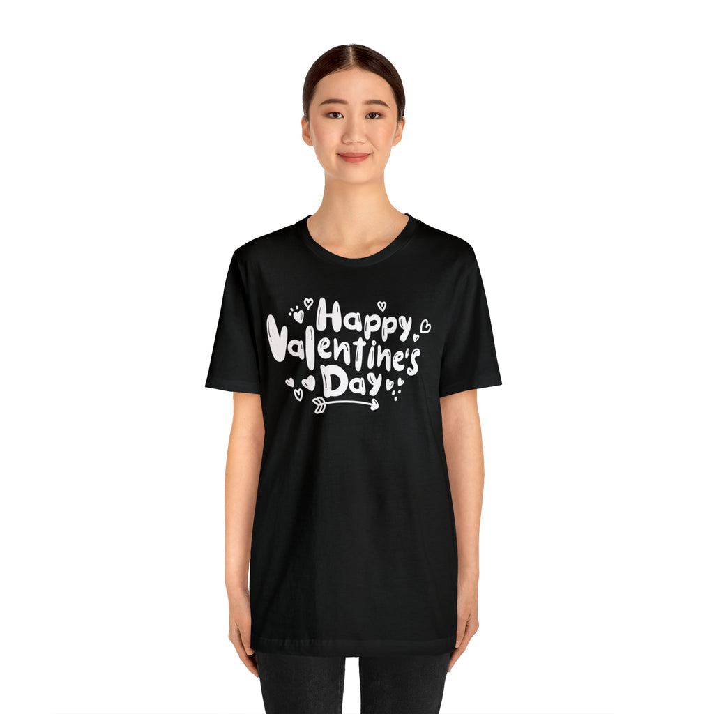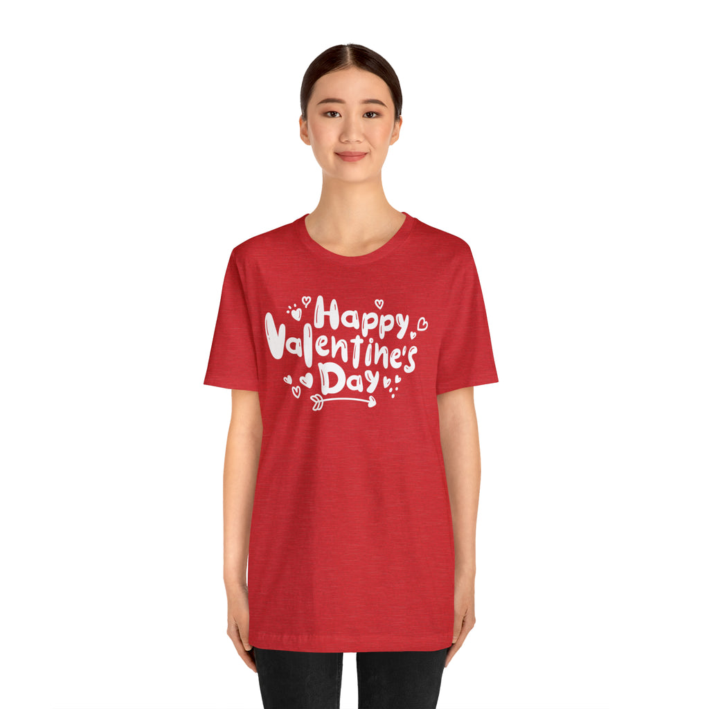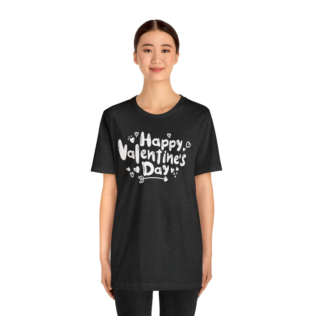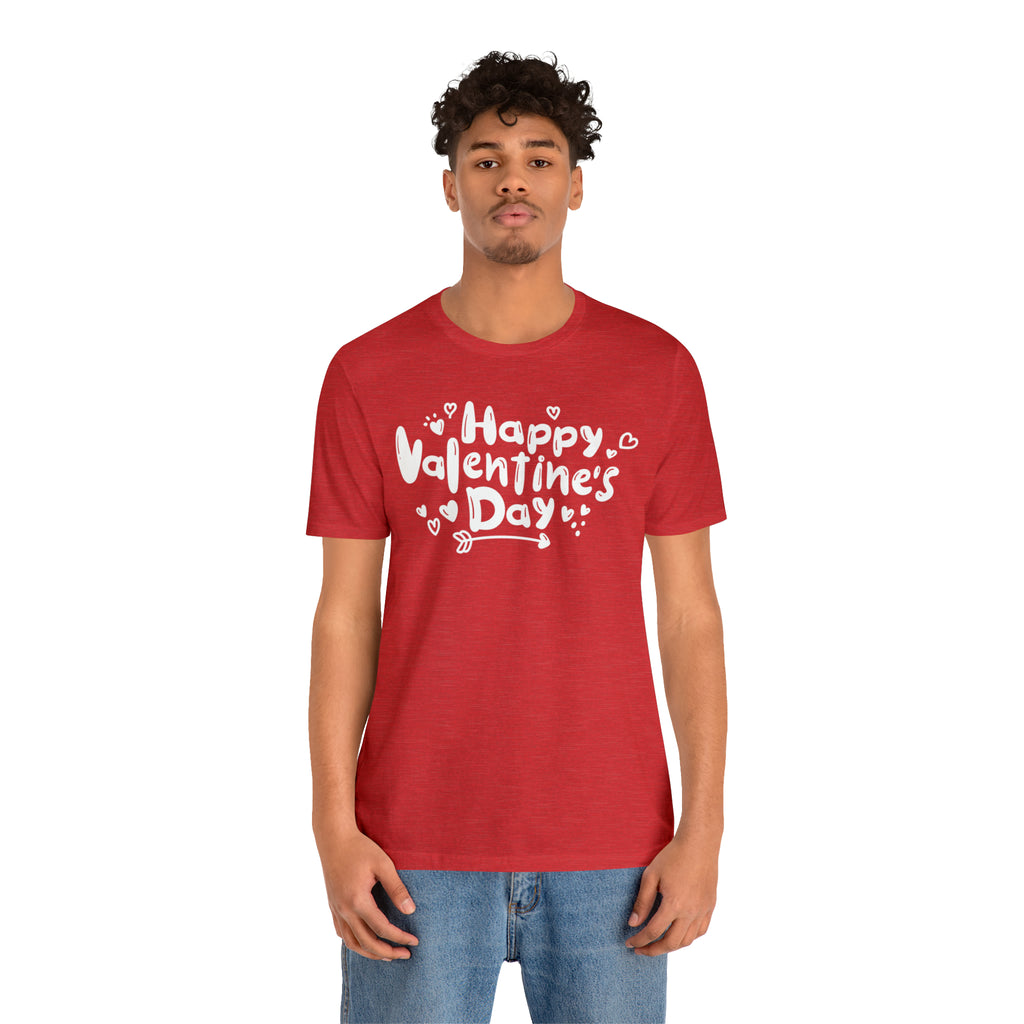 Happy Valentine's Day Script T-Shirt | Love You Tee | Bella Canvas 3001 Unisex | Hearts and Arrows Short Sleeve Tshirt