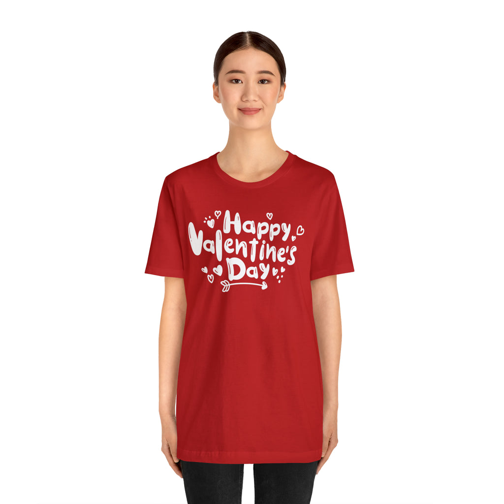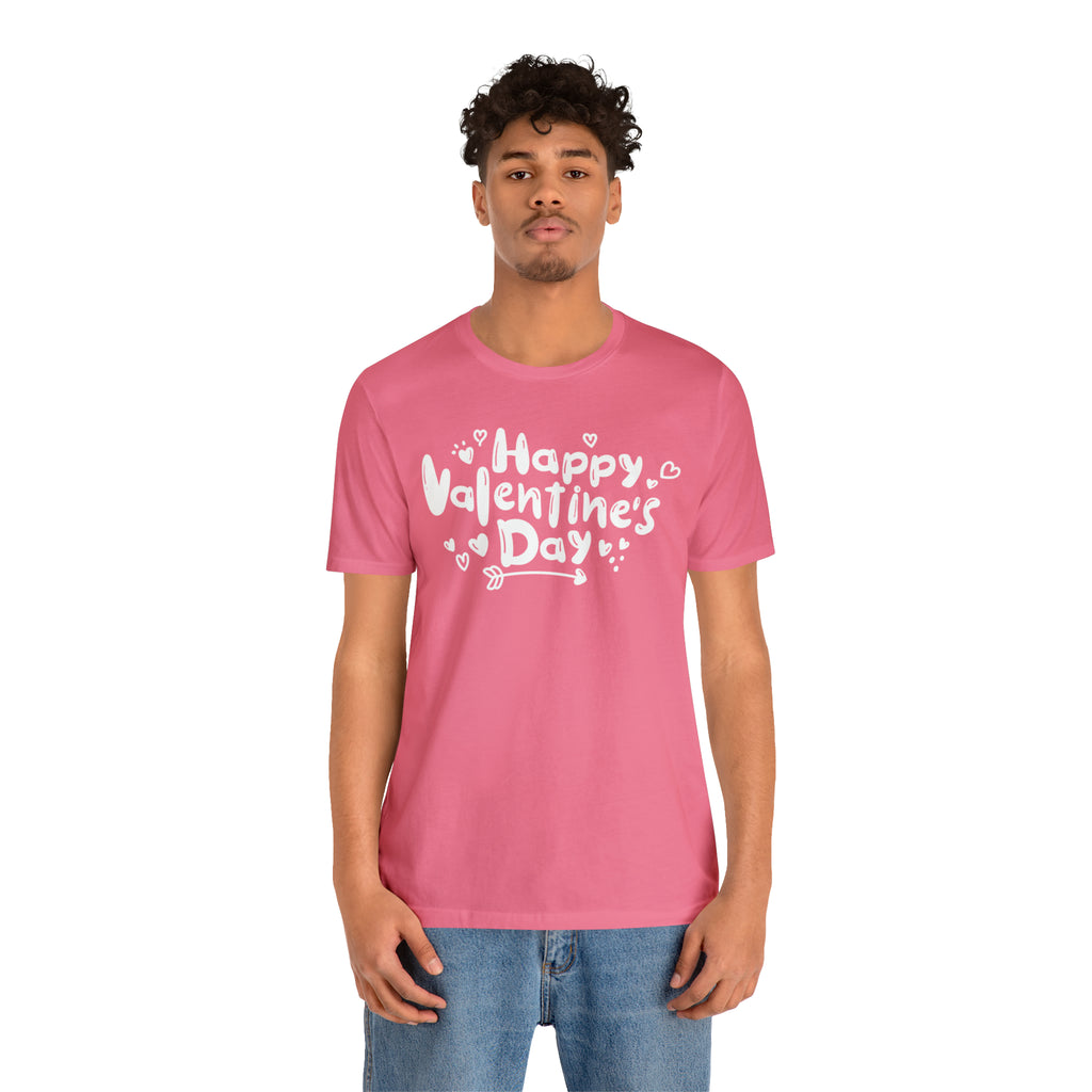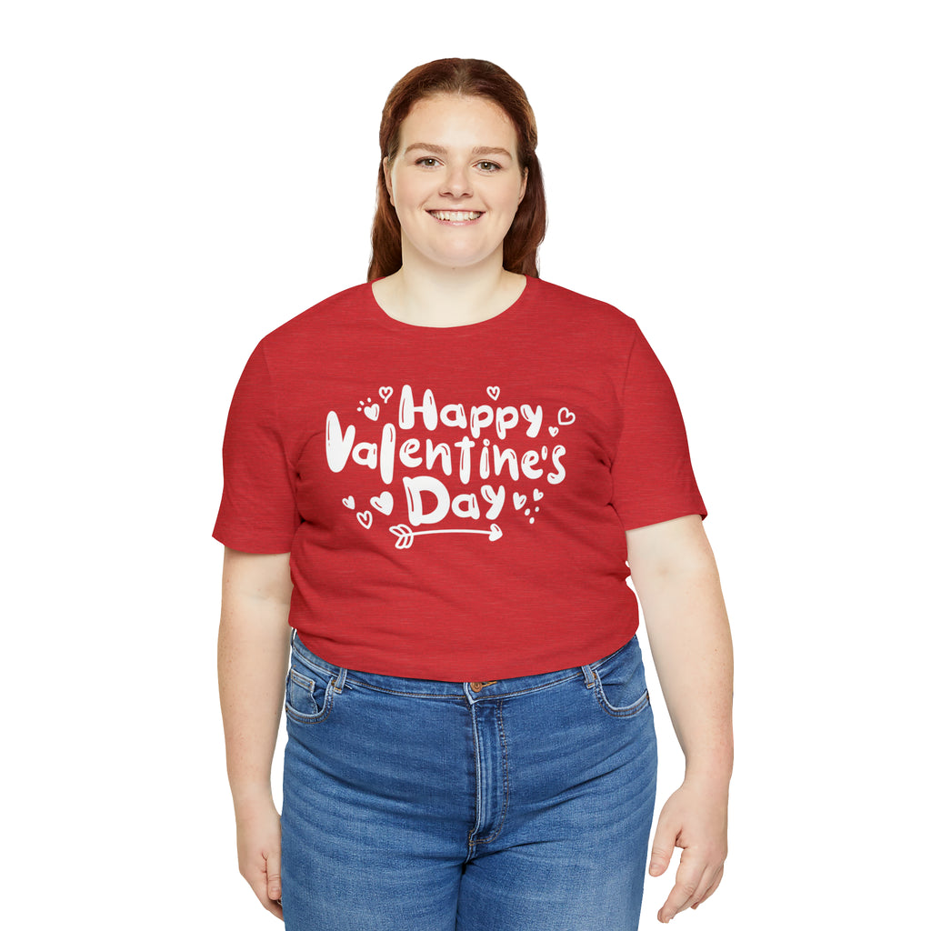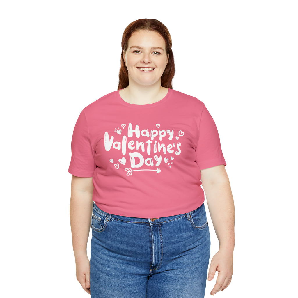 Happy Valentine's Day Script T-Shirt | Love You Tee | Bella Canvas 3001 Unisex | Hearts and Arrows Short Sleeve Tshirt
