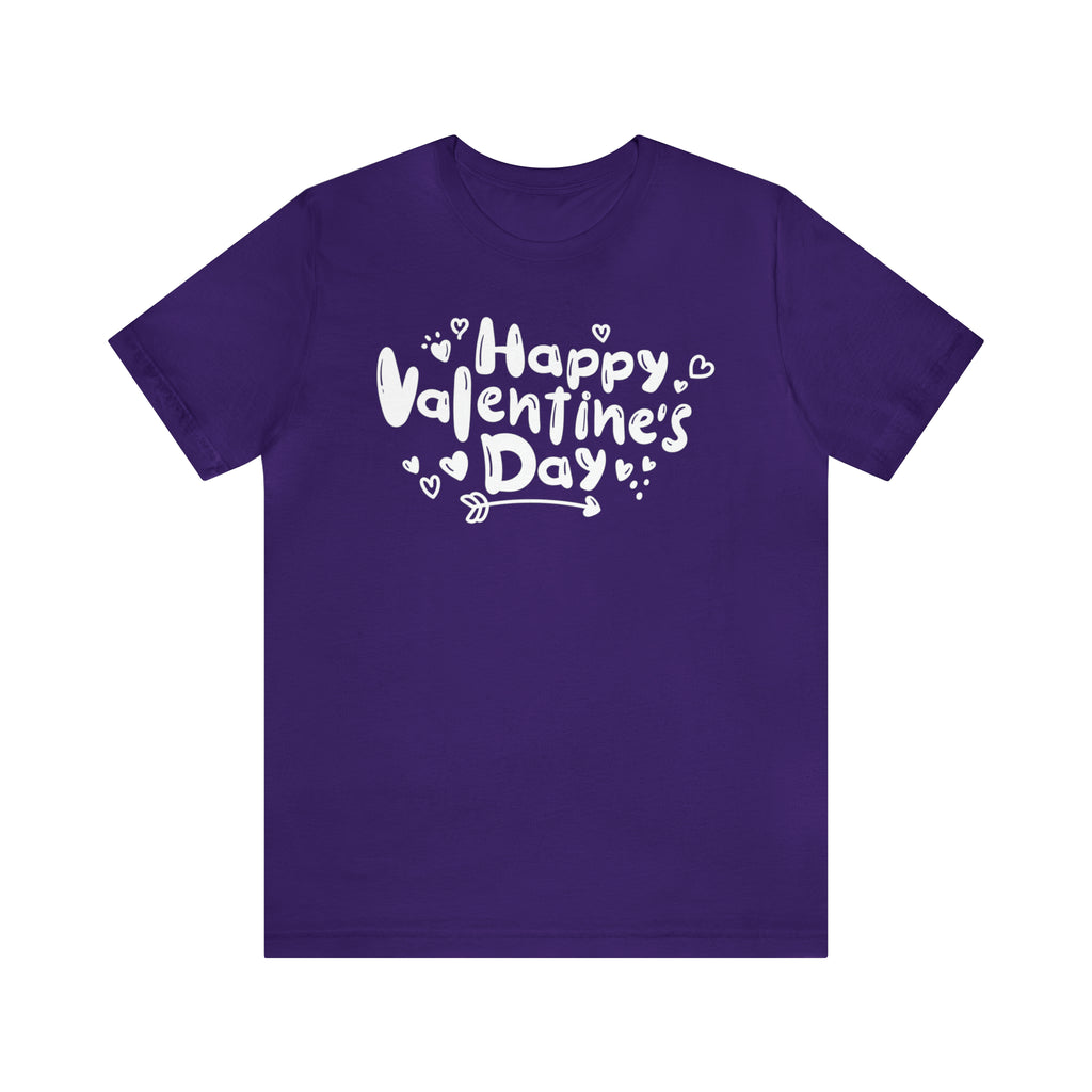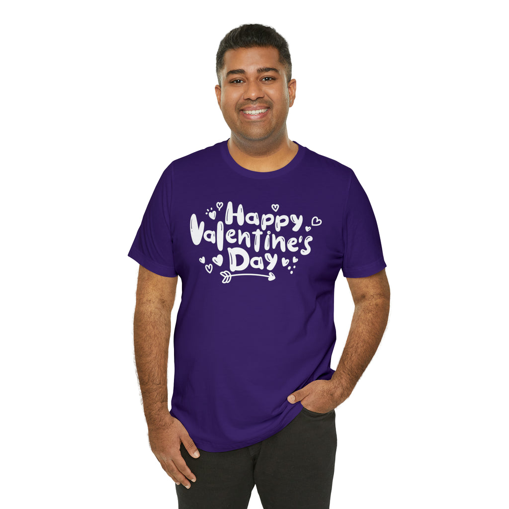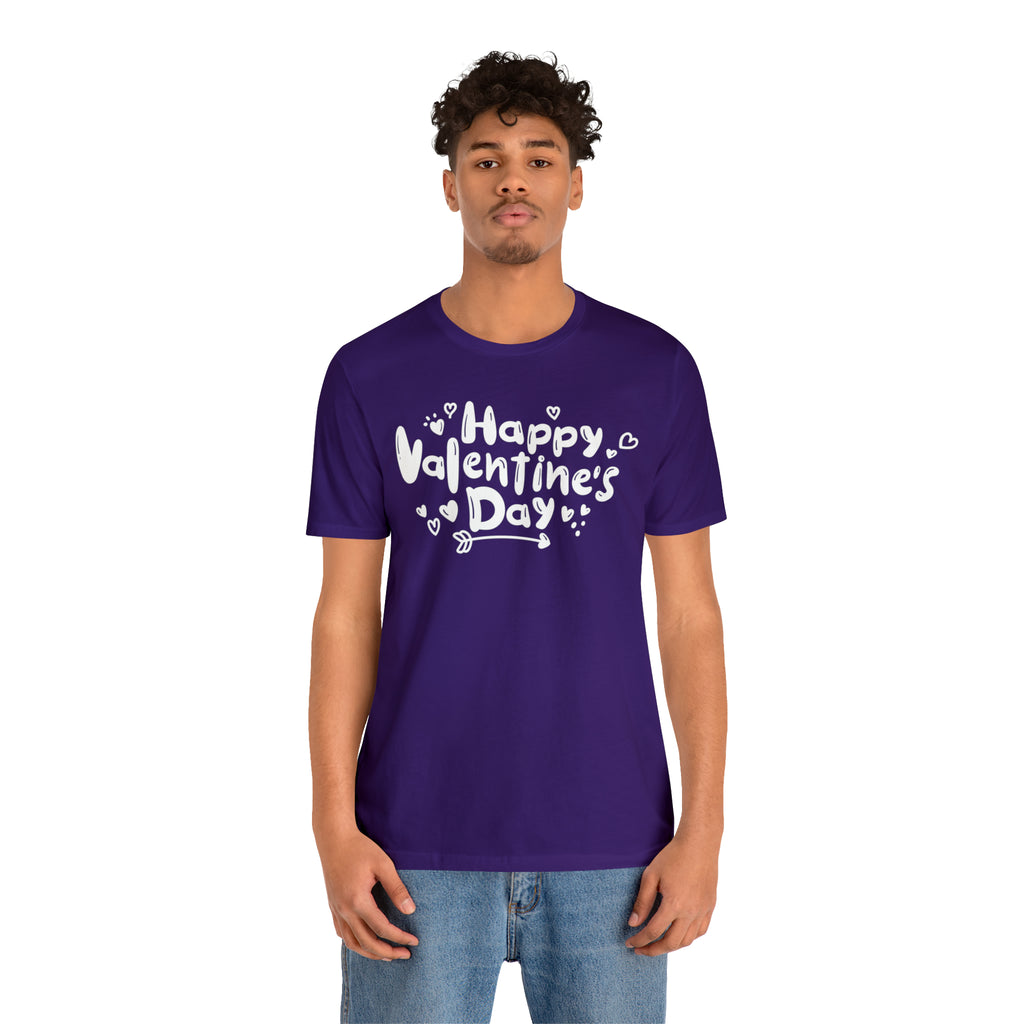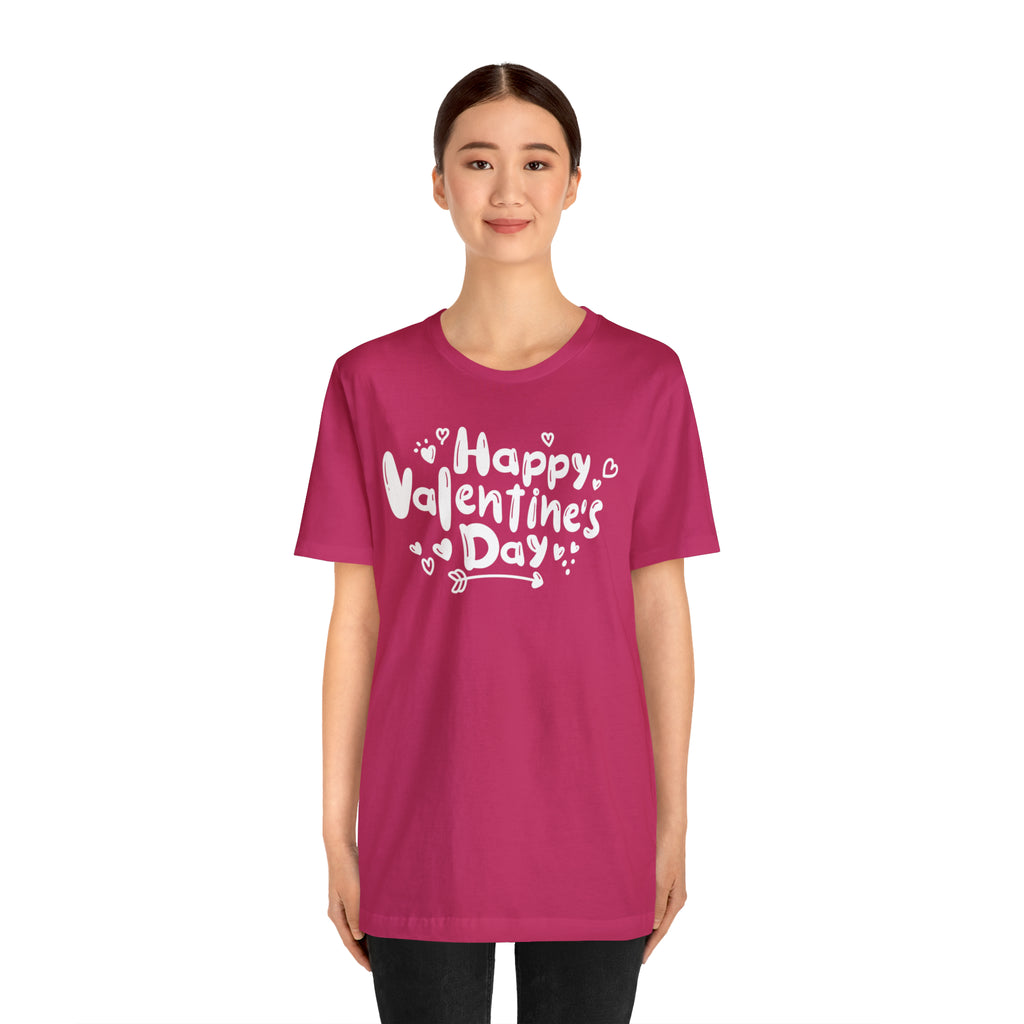 Happy Valentine's Day Script T-Shirt | Love You Tee | Bella Canvas 3001 Unisex | Hearts and Arrows Short Sleeve Tshirt