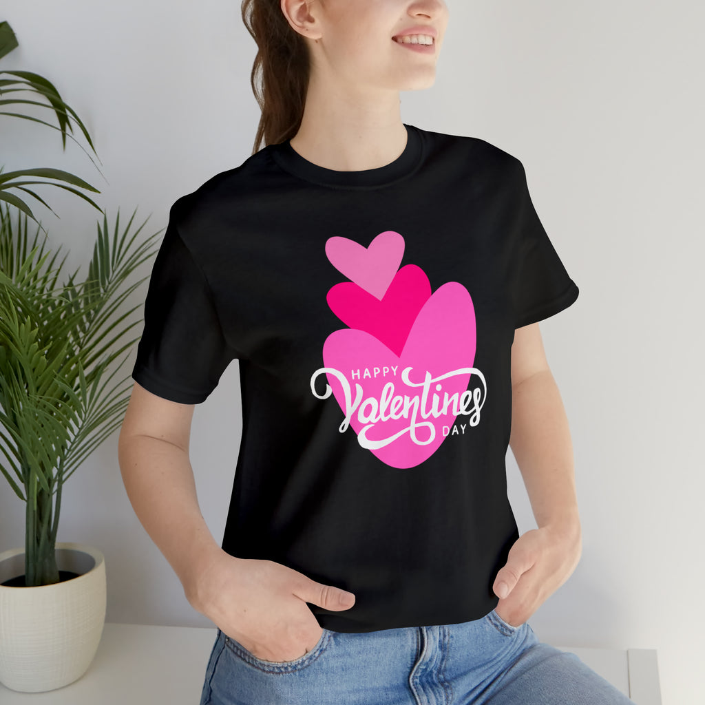 Designed with love, this T-shirt features a heartwarming and cheerful print, perfect for expressing your affection to your loved ones. Embrace the spirit of love on Love You Day and any other day of the year with our Happy Valentine's Heart T-Shirt, adding a touch of romance to your celebrations.