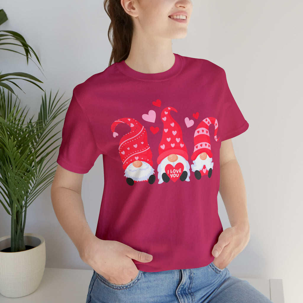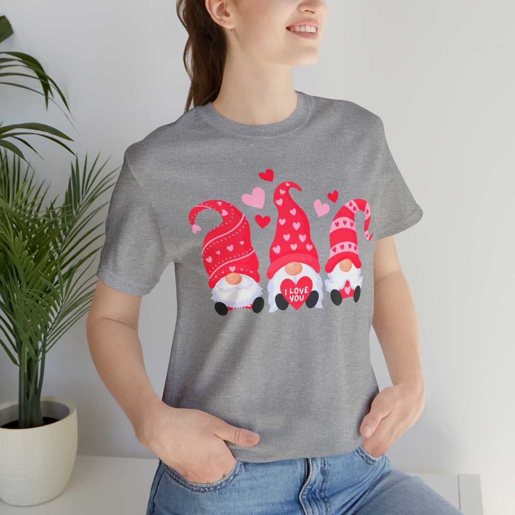 I Love You Gnomes T-Shirt | Heart Love Tee | Bella Canvas 3001 Unisex | Happy Valentine's Day Short Sleeve Tshirt