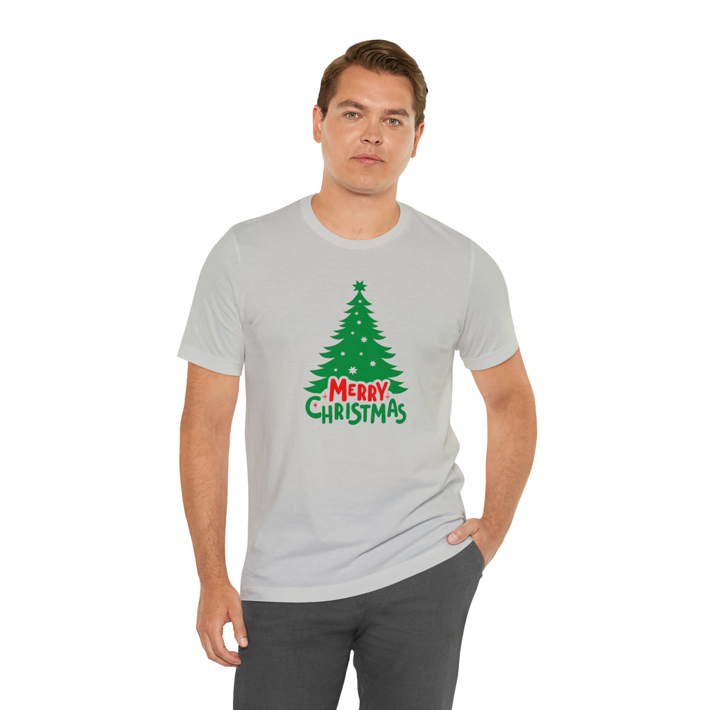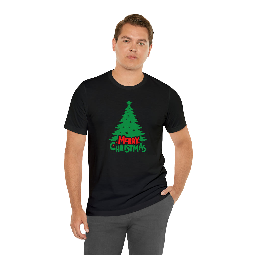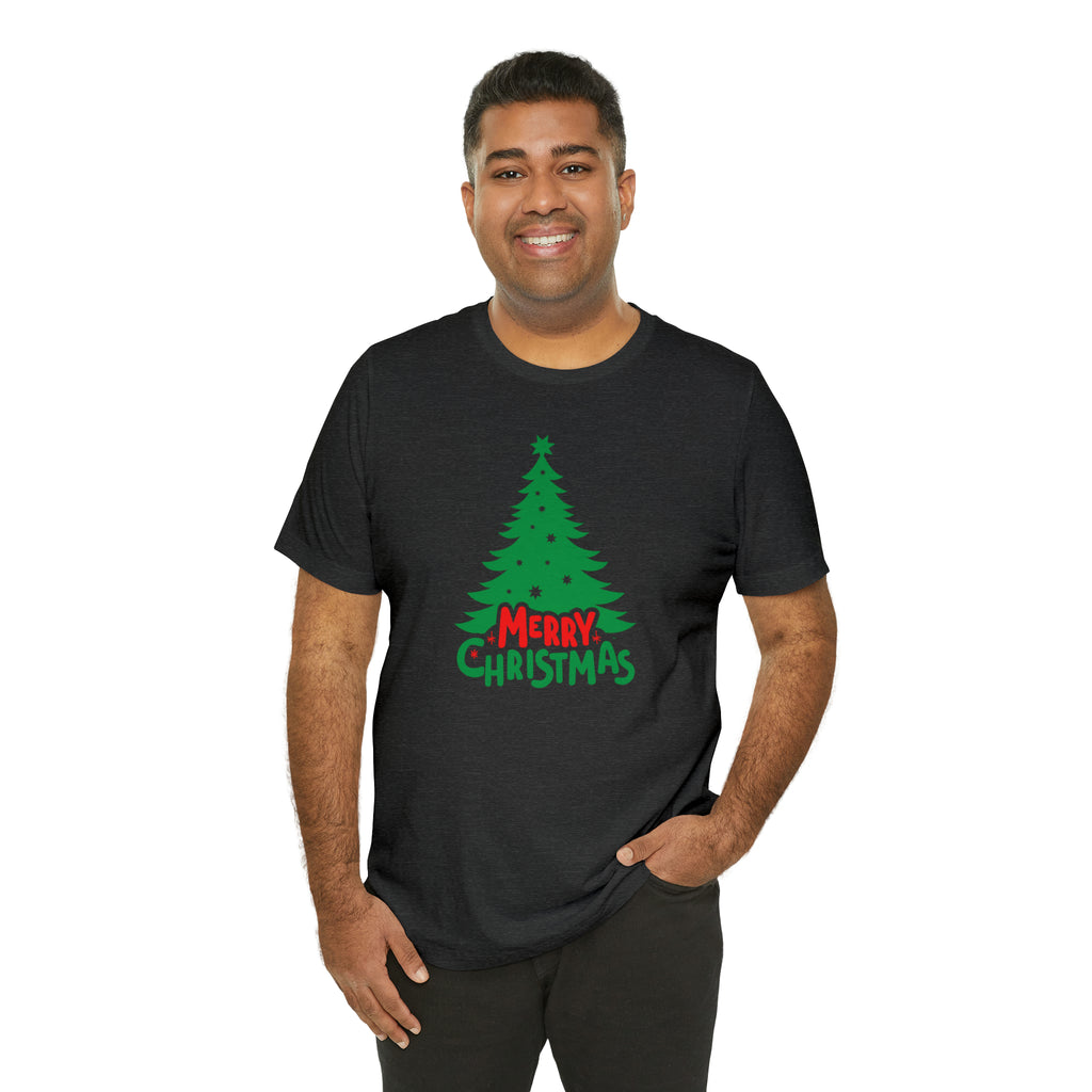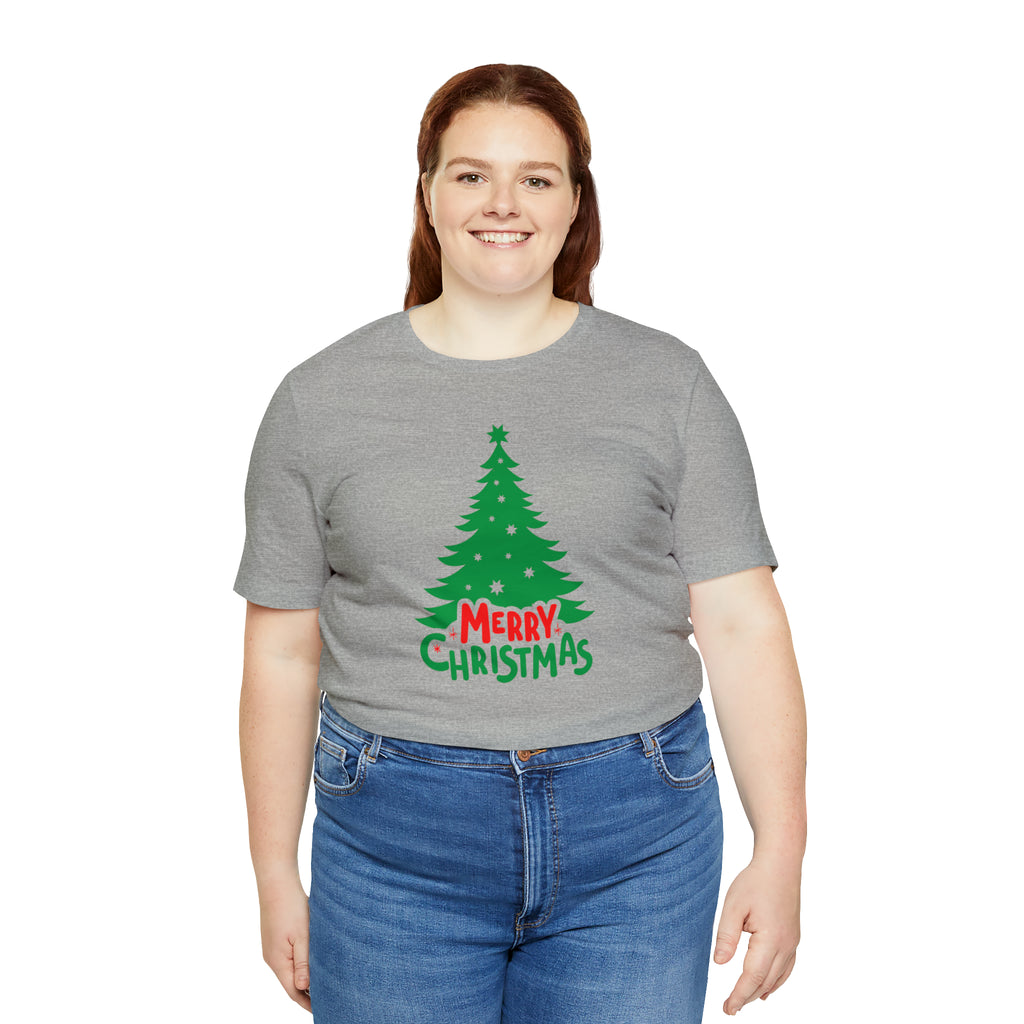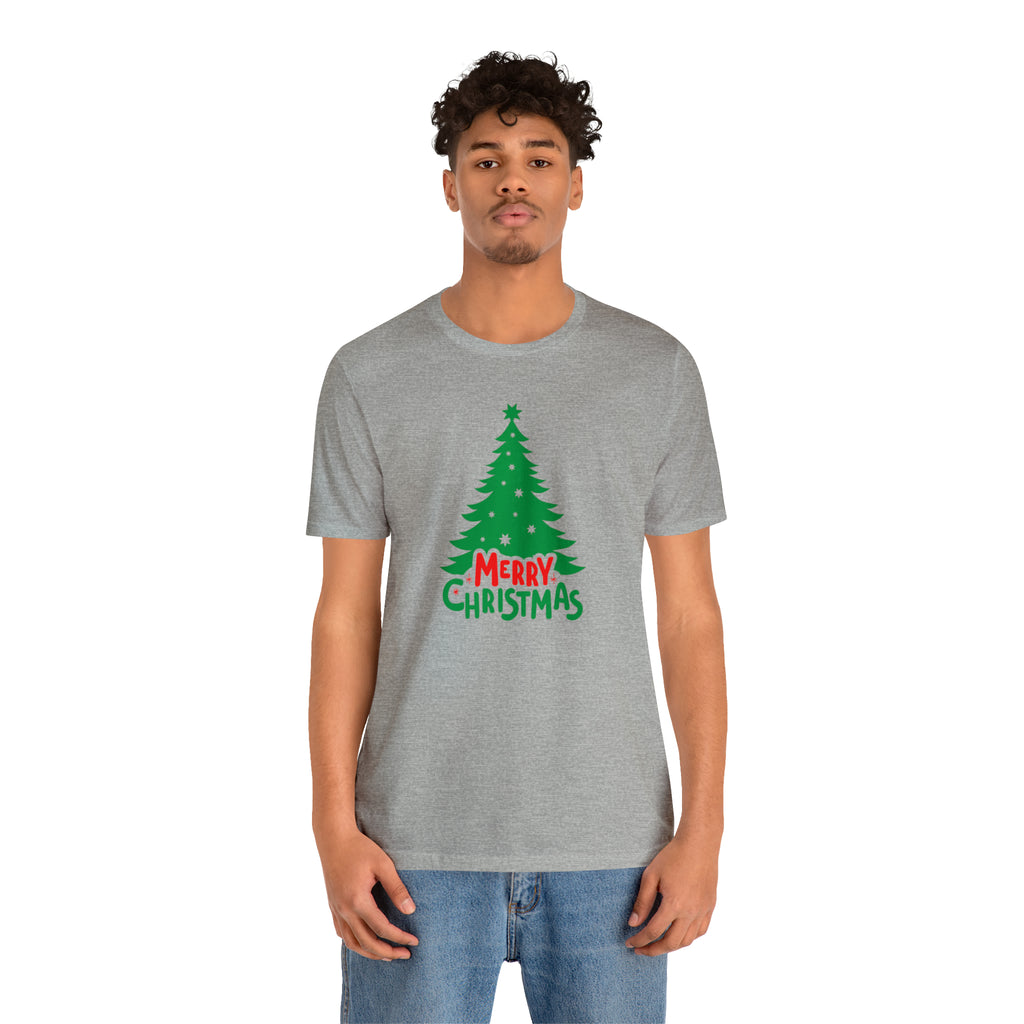 Merry Christmas Green Tree T-Shirt | Festive XMas Tee | Bella Canvas 3001 Unisex | Happy Holidays Short Sleeve T-shirt
