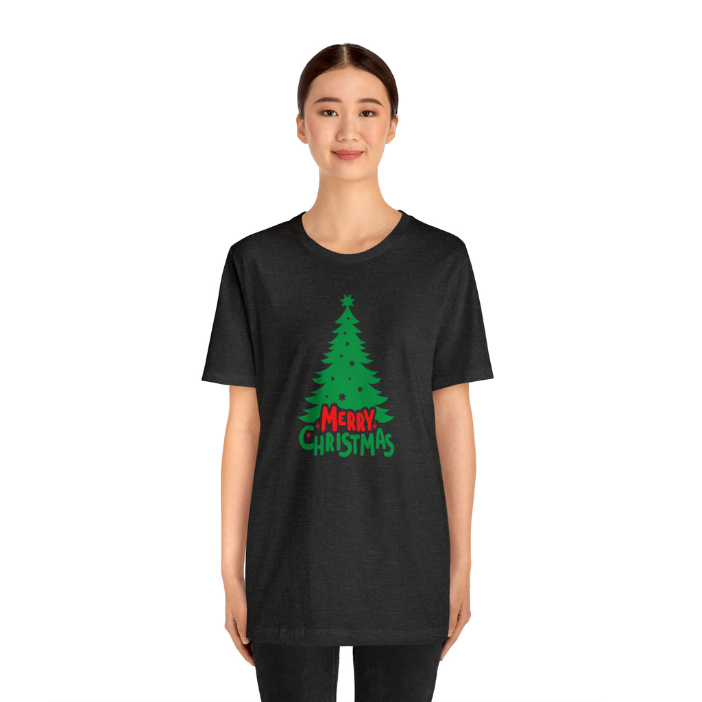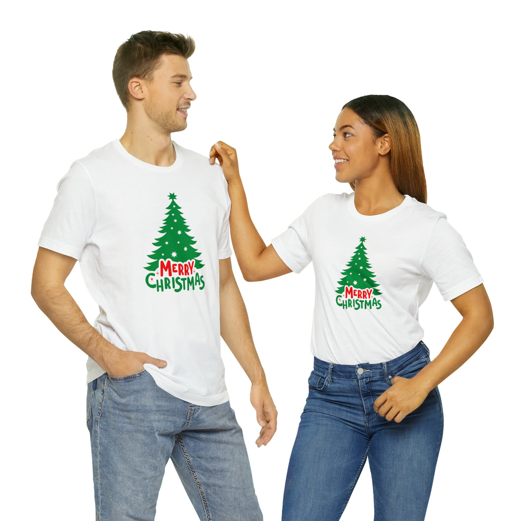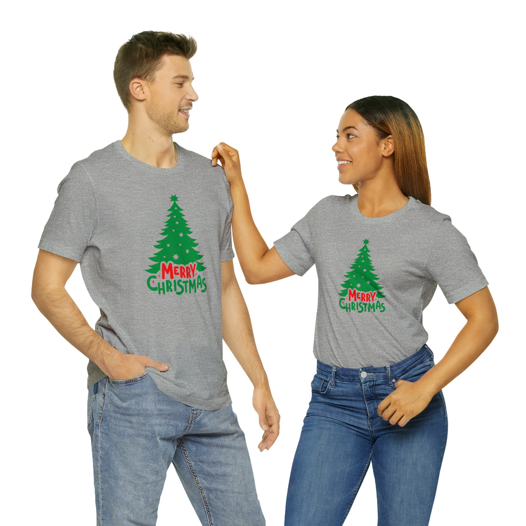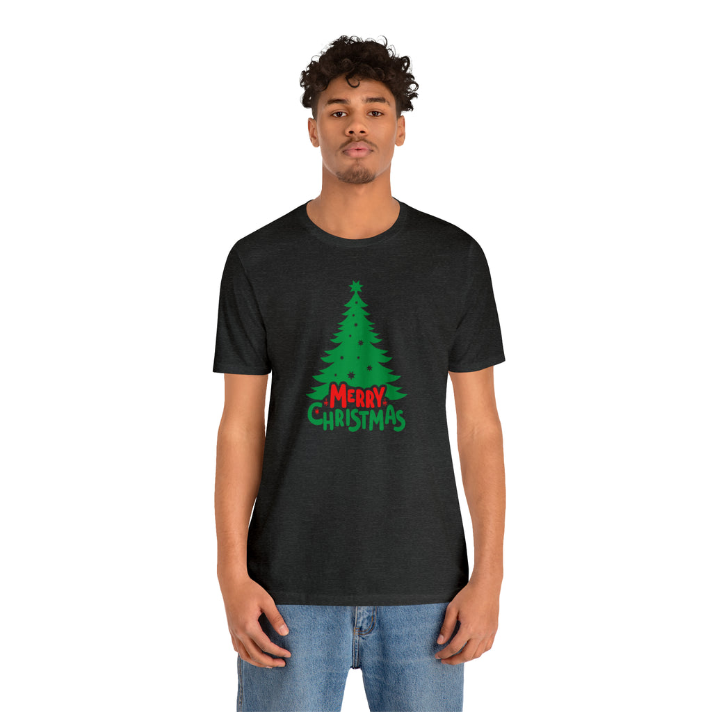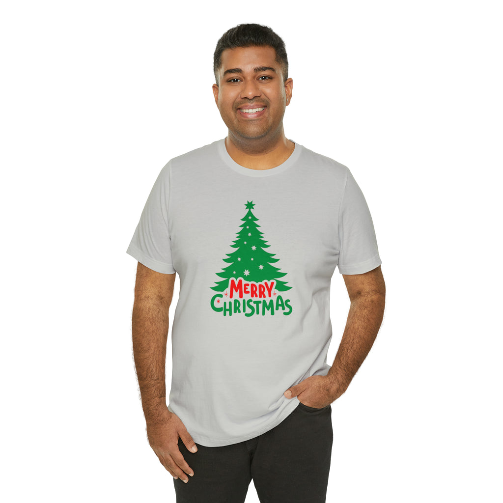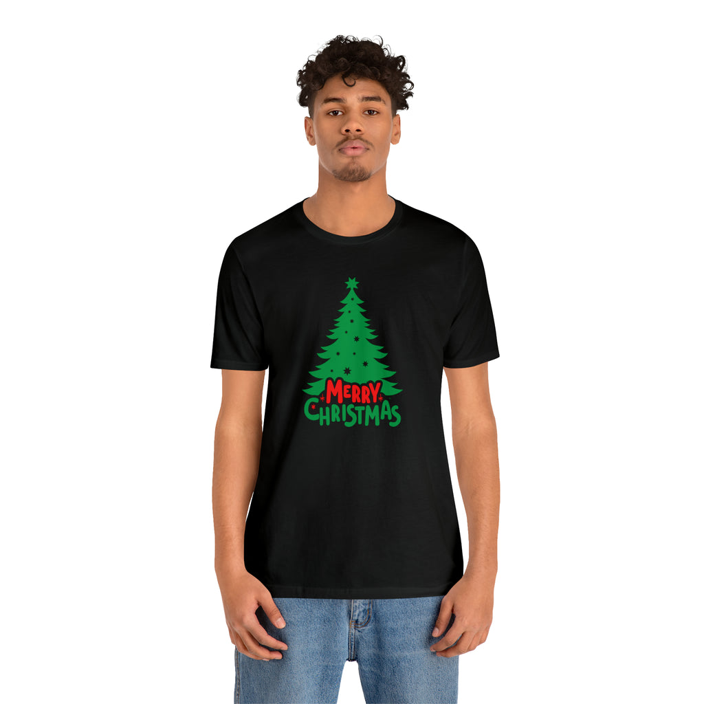 Merry Christmas Green Tree T-Shirt | Festive XMas Tee | Bella Canvas 3001 Unisex | Happy Holidays Short Sleeve T-shirt