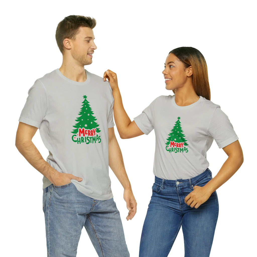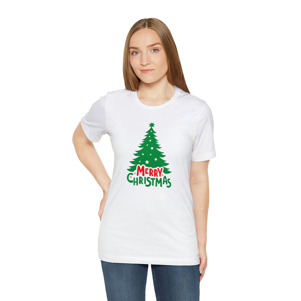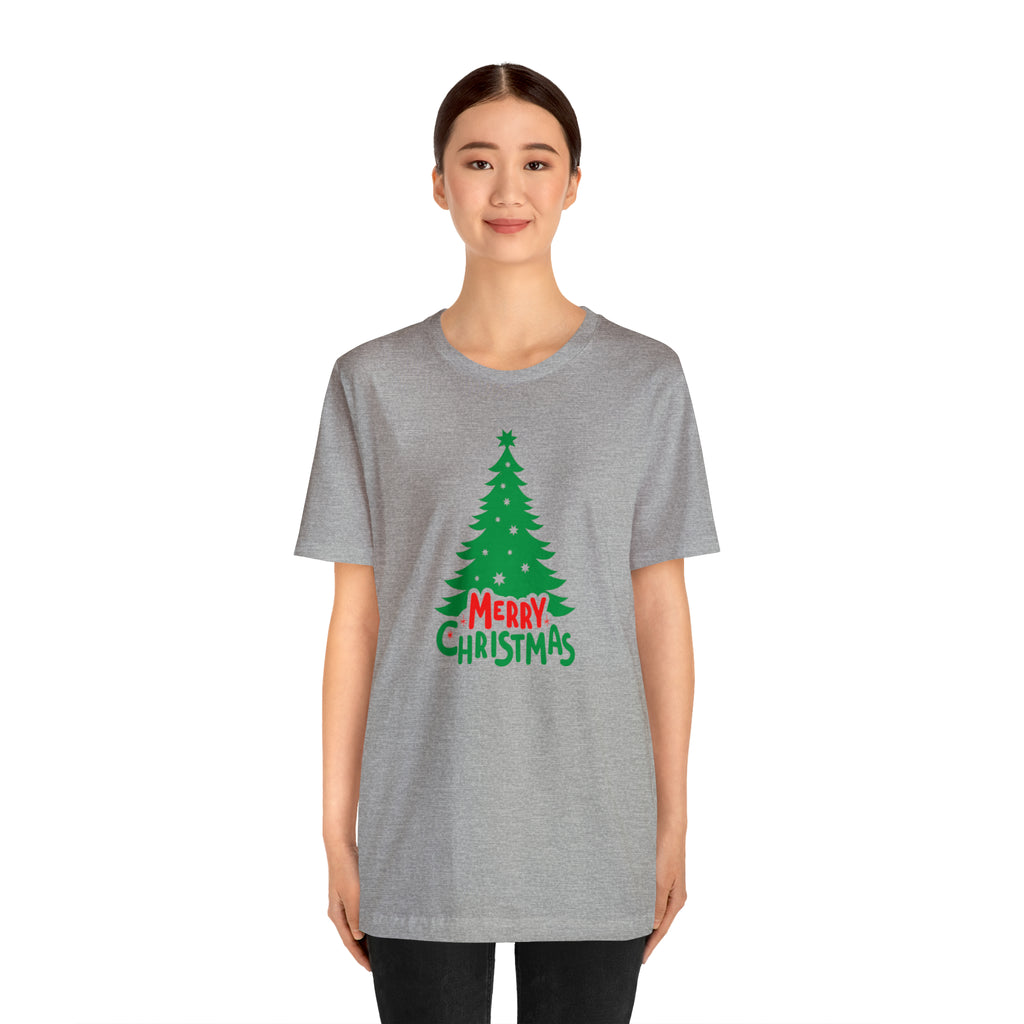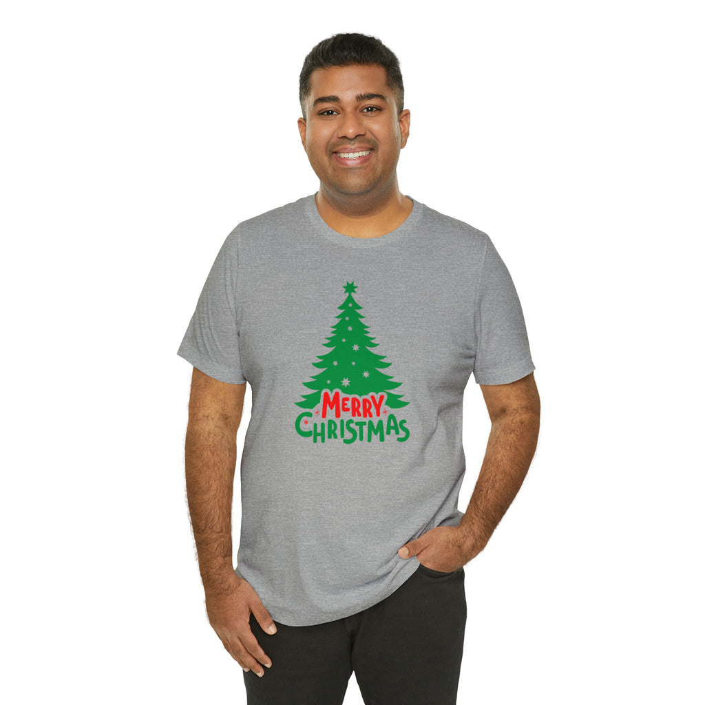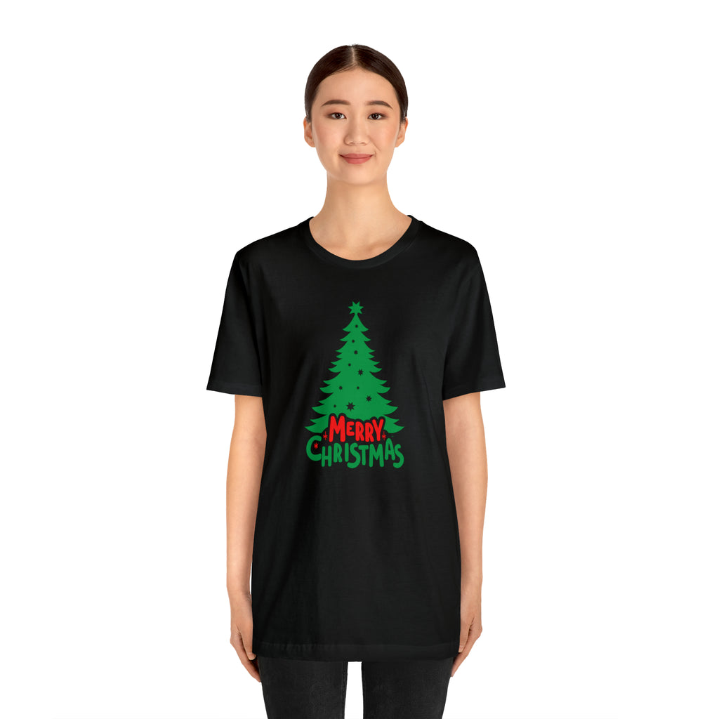Merry Christmas Green Tree T-Shirt | Festive XMas Tee | Bella Canvas 3001 Unisex | Happy Holidays Short Sleeve T-shirt